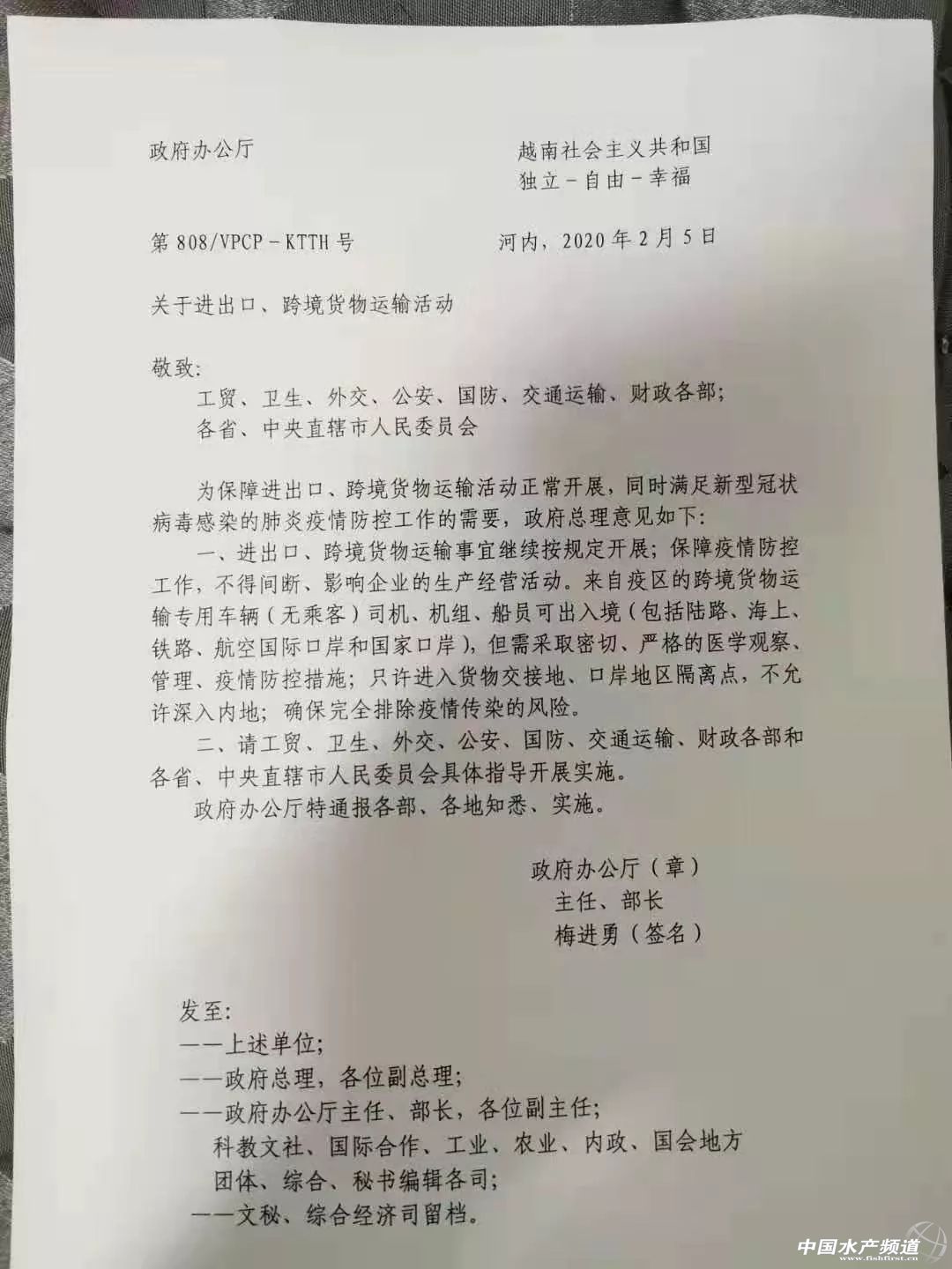| 中國水產頻道原創報道, 受新型冠狀病毒影響,廣西壯族自治區內已關閉9個邊境市場,并延長至2月10日,將會進一步影響邊民的生活和兩國貿易往來。 文/ 海鮮指南(seafood-guide) 編輯部 受中國新型冠狀病毒疫情發展的影響,從1月31日開始,越南和廣西壯族自治區之間的口岸全部關閉,中國已經全部關閉9個邊境交易市場。目前,位于廣西壯族自治區內的峒中、里火、憑祥和東興邊貿互市關口延長關閉時間至2月10日(正月十七)。 根據憑祥市對外經濟貿易協調委員會2月5日對外的公告顯示:“廣西壯族自治區邊民互市貿易區(點)關閉時間延長至2020年2月9日(正月十六)24時,至2月10日(正月十七)起通關運營。請各相關單位嚴格遵守貨物通關時間安排。” 峒中、里火、憑祥和東興邊貿互市關口在中越水產品貿易中占有重要的地位,是蝦產品、巴沙魚、魚粉、馬面魚、海捕魚類的重要集散口岸。除了水產品之外,這些口岸還通過水果,堅果、木材、大米等中越兩國頻繁貿易商品。關口的持續關閉,將會進一步影響邊民的生活和兩國的貿易往來。 同時,越南航空已經停飛自2020年2月4日至2020年2月29日期間暫停往返于中國大陸與越南之間的所有航班。越南暫停對中國人辦理旅游簽證,持有工作簽證或者暫住證的中國人從中國大陸起飛也會被拒絕入境,從第三方國家入境也需要接受嚴格的身體檢查,在符合標準后才可以入境。 受此影響,很多年后需要前往越南的中國貿易商全部在滯留在機場或者國內,無法到越南正常開始生產。“我們就算到了越南也會被隔離14天,檢查有沒有發熱等癥狀,還需要自己掏300美金的費用,吃飯等食宿費用也要自己出。”有前往越南的中國工廠代表表示。 目前,正在籌備中的越南中國商會水產協會的代表們在積極聯系中國駐越南大使館和越南政府相關官員,溝通中國籍人員返回越南開展生產和貿易等事宜。需要返回越南的人員信息已經在2月5日下午收集完成,承報給越南中國總商會,等待進一步通知。 有在越南從事水產品貿易的代表溫馨提示到:提醒各位已經入境同胞,在機場填寫的電話號碼保持暢通,方便社區醫務人員上門檢查體溫,如果聯系不上,社區醫務會報給公安,有可能會被公安調查住在哪里,公安會配合社區醫務人員一起上門,到時候萬一抽查簽證類型之類,惹不必要的麻煩。 越南政府辦公廳也出臺相應的政策來保障中越兩國的貿易往來,同時避免新型冠狀病毒的持續蔓延。 2月3日,在由越南農業與農村發展部舉辦的“在新型冠狀病毒疫情影響的背景下促進商貿投資、發展農業生產”會議上,越南諒山省人民委員副主席阮公長告知:到2月8日(正月十五),若中國確認在邊境地區沒有新型冠狀病毒疫情,越南農產品將繼續向中國出口。 |