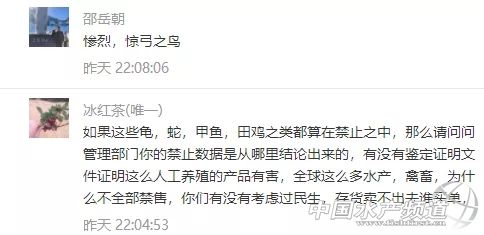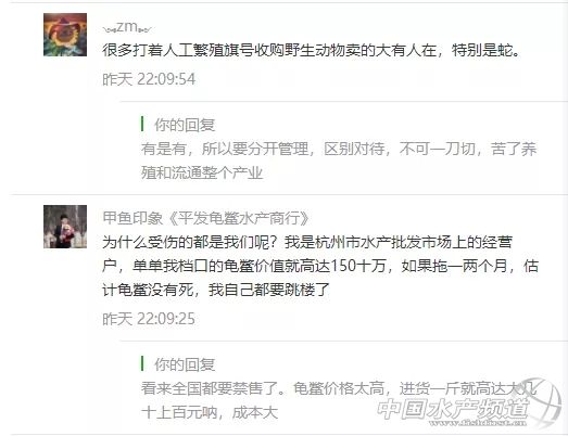 | 中國水產(chǎn)頻道報道, 急急急!鱷魚、龜、水魚、牛蛙、泥鰍、蟮、鴨嘴魚、鱘龍魚、娃娃魚等成了野生動物被禁止銷售食用?這對水產(chǎn)人來說,將是極其嚴厲的沉重打擊! 國家10部委聯(lián)合打擊野生動物違規(guī)交易 2月3日,10部委(局)聯(lián)合部署打擊野生動物違規(guī)交易專項執(zhí)法行動。各地積極行動起來,嚴查違法出售、購買、利用、運輸、攜帶、寄遞野生動物及其制品的行為以及相關(guān)的廣告。 面對疫情,專家提醒,公眾要堅決拒吃野味,注意個人衛(wèi)生。 嚴禁任何形式的野生動物交易 記者2月3日從國家市場監(jiān)管總局獲悉:市場監(jiān)管總局日前聯(lián)合中央網(wǎng)信辦、生態(tài)環(huán)境部、農(nóng)業(yè)農(nóng)村部、公安部、商務(wù)部、衛(wèi)生健康委、海關(guān)總署、林草局、藥監(jiān)局等部委(局)召開打擊野生動物違規(guī)交易專項執(zhí)法行動和打擊非法制售口罩等防護產(chǎn)品專項執(zhí)法行動(以下簡稱“聯(lián)合雙打行動”)部署會議。 會議強調(diào),疫情期間嚴禁任何形式的野生動物交易活動。嚴查違法出售、購買、利用、運輸、攜帶、寄遞野生動物及其制品的行為;不得為出售、購買野生動物及其制品發(fā)布廣告及提供交易服務(wù)等。 “病毒在變化、適應(yīng)人類,科學(xué)認識病毒會有一個過程。”國家衛(wèi)健委高級別專家組成員、中科院院士、中國疾控中心主任高福介紹,這次發(fā)現(xiàn)的新型冠狀病毒是第七個感染人類的冠狀病毒,“我們通過一些非常手段,已經(jīng)找到證據(jù)。我們在懷疑有野生動物銷售的環(huán)境中,檢測到有這種病毒,傳染源還不明確,找不到具體是哪個動物,還在不斷認識過程中。” 廣東省12部門聯(lián)合打擊野生動物違規(guī)交易 廣東省市場監(jiān)管局4日通報,該部門正聯(lián)合省委網(wǎng)信辦、生態(tài)環(huán)境廳、農(nóng)業(yè)農(nóng)村廳、工業(yè)和信息化廳、公安廳、住房城鄉(xiāng)建設(shè)廳、商務(wù)廳、衛(wèi)生健康委、林業(yè)局、藥監(jiān)局以及海關(guān)總署廣東分署等共12個部門,開展“廣東省聯(lián)合打擊野生動物違規(guī)交易專項執(zhí)法行動”。 廣東要求,各地各有關(guān)部門要迅速行動,組織動員最強力量,嚴查野生動物違規(guī)交易行為,全面禁絕違規(guī)交易。 廣東要求,對違規(guī)交易野生動物的經(jīng)營者一律停業(yè)整頓,經(jīng)營場所一律查封,涉嫌犯罪的一律移送公安機關(guān)。 無論是野生的還是人工馴養(yǎng)繁殖的 一律禁絕交易! 會議指出,各地各部門要堅決貫徹落實國家領(lǐng)導(dǎo)人的重要指示批示精神,落實黨中央、國務(wù)院關(guān)于應(yīng)對新型冠狀病毒感染的肺炎疫情的一系列決策部署,進一步提高政治站位,切實增強開展聯(lián)合雙打行動的政治自覺、思想自覺和行動自覺,以最嚴措施開展聯(lián)合雙打行動,從嚴從重從快查處違法違規(guī)行為。 嚴查野生動物違規(guī)交易行為 全面禁絕違規(guī)交易 各地各有關(guān)部門要迅速行動起來,按照最嚴格要求、組織動員最強力量、部署實施最有力措施。 根據(jù)《市場監(jiān)管總局農(nóng)業(yè)農(nóng)村部國家林草局關(guān)于禁止野生動物交易的公告》(2020年第4號)精神,在疫情防控的“戰(zhàn)時狀態(tài)”下,禁絕任何形式的野生動物交易活動,突出強調(diào)“七個一律禁絕交易”,即: ✍無論是野生的還是人工馴養(yǎng)繁殖的一律禁絕交易; ✍無論是陸生的還是水生的一律禁絕交易; ✍無論是農(nóng)貿(mào)市場還是農(nóng)村集(墟)市、餐飲單位一律禁絕交易; ✍無論是活體還是死體一律禁絕交易; ✍無論是市場內(nèi)還是市場外一律禁絕交易; ✍無論是野生動物制品還是其制作食品一律禁絕交易; ✍無論是否已取得野生動物經(jīng)營資質(zhì)一律禁絕交易。 同時提出“三個一律”明確要求,即對違規(guī)交易野生動物的經(jīng)營者一律停業(yè)整頓,經(jīng)營場所一律查封,涉嫌犯罪的一律移送公安機關(guān)。 除了廣東12部門聯(lián)合打擊交易水魚、龜、牛蛙外,在黃沙水產(chǎn)交易市場有限公司經(jīng)營部通告,還有蛇類、鱷魚、娃娃魚同樣不能擴散、轉(zhuǎn)運和銷售,廣東部分地區(qū)還把泥鰍、鱔等品種也列入禁售交易的范疇。 牛蛙賤賣到1元/斤、市場2000萬元龜鱉面臨死亡 據(jù)悉,自從牛蛙、甲魚、烏龜被一紙文件列入野生動物或飼養(yǎng)繁育的野生動物的范疇,20萬斤青蛙封存,單單澄海就有十幾萬噸牛蛙走投無路,牛蛙價格一泄千里,賤賣到1元/斤的絕境!昨天,水產(chǎn)前沿公眾號報道了以下兩篇文章,引發(fā)了行業(yè)引起了高度的關(guān)注和反響,眾多讀者爭相留言表達了對事件看法! 《人工養(yǎng)殖30年龜鱉一夜間變成野味?禁售、落封條,黃沙市場2千萬元龜鱉正在等死》 《20萬只青蛙被封!禁運禁售,十幾萬噸牛蛙無路可走!業(yè)界呼吁:分類管理不可一刀切》 部分網(wǎng)友留言 還有很多很多...... 震驚!泥鰍、蟮、鴨嘴魚、鱘龍魚都成了野生動物? 據(jù)悉,目前廣州黃沙水產(chǎn)市場發(fā)文嚴禁交易野生動物及其制品,包括人工飼養(yǎng)的野生動物,主要包括人工養(yǎng)殖的蛇類、鱷魚、娃娃魚、水魚、龜?shù)取5趶V東很多地區(qū),日前也紛紛發(fā)文一律停止