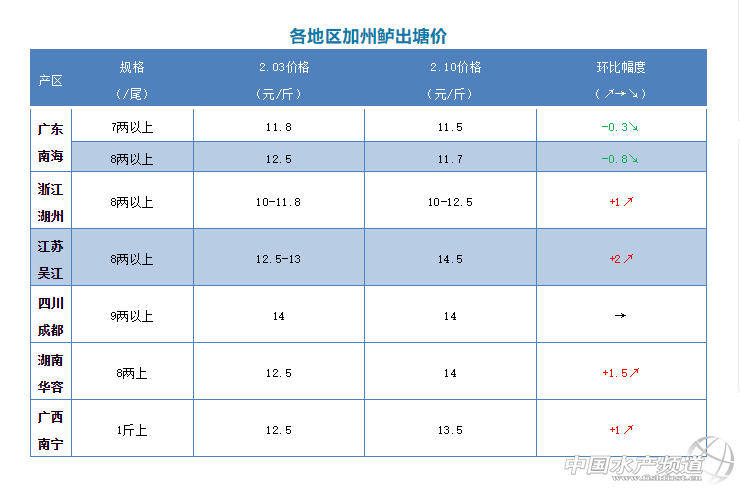 | 中國水產頻道原創報道, 加州鱸 1、受疫情持續影響,大部分市場還沒有開始營業,本周全國鱸魚銷量還沒有上升,與上周差不多。從上周末開始廣東鱸魚8兩上開塘價下跌了0.8元/斤,最高只有11.7元/斤,7兩以上價格在11.5元/斤;6兩以上11.0元/斤,大概也下跌了0.2-0.3元/斤,由于北線市場都沒有開業,暫時沒有什么人捉1斤以上的魚,實際塘頭價格根據魚頭大小和規格不同略有浮動。由于這半個月鱸魚出塘量都很少,各大主產區積壓了很多魚,現在大部分養戶的出魚積極性都很高,但由于市場銷量受限,很多魚都不能安排,特別是偏大的魚,更沒人要。這種情況或許還要持續一斷時間,等疫情有好轉,市場開通,餐飲業開始營業才能提升銷量。 2、浙江湖州同樣受到疫情的持續影響,外地車輛及人員禁入,導致出魚量很少,開工人不多,只是捉一部分貨量在當地賣,價格雖然上升了0.7元/斤,但是有價無市,統貨報價10-12.5元/斤,8兩以上大概14元/斤,具體價格要看魚頭大小和規格成數而定。 3、江蘇吳江情況與浙江湖州情況差不多,出塘量也不多,價格上升了1.5元/斤,8兩上報價14.5元/斤,價格會根據魚頭大小及規格比例多少略有調整。這種情況還會持續一斷時間,主要也是看疫情的發展來決定后面的行情。 4、四川成都9兩上報價還是14元/斤,魚價基本保持穩定,出魚量也是一點點,也是在當地賣給商超與電商為主,市場只有少數店面在營業。 |