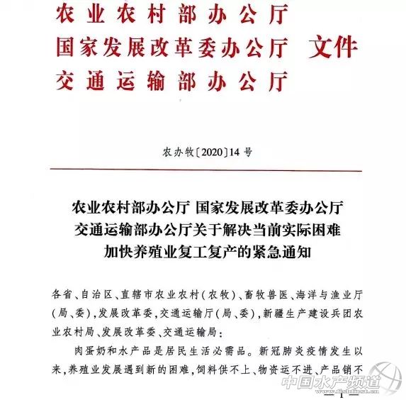 | 中國水產頻道綜合報道, 農業農村部辦公廳、國家發展改革委辦公廳、交通運輸部辦公廳關于解決當前實際困難加快養殖業復工復產的緊急通知 農業農村部辦公廳 國家發展改革委辦公廳 交通運輸部辦公廳 關于解決當前實際困難加快養殖業復工復產的緊急通知 各省、自治區、直轄市農業農村(農牧)、畜牧獸醫、海洋與漁業廳(局、委),發展改革委,交通運輸廳(局、委),新疆生產建設兵團農業農村局、發展改革委、交通運輸局: 肉蛋奶和水產品是居民生活必需品。新冠肺炎疫情發生以來,養殖業發展遇到新的困難,飼料供不上、物資運不進、產品銷不出、用工回不來等問題普遍存在,如不迅速妥善解決,不僅會影響產業穩定發展,而且很快會影響城鄉居民基本生活和新冠肺炎疫情防控大局。各地各部門要堅決貫徹習近平總書記重要指示批示精神和黨中央、國務院決策部署,針對養殖業面臨的特殊困難,采取特別的支持幫扶措施解決問題堵點,推動養殖業立即復工復產。現將有關事項通知如下。 一、加快飼料企業和畜禽屠宰加工企業復工復產 除武漢等疫情嚴重的城市外,各地都要允許飼料和畜禽屠宰加工企業復工,不得設置審查核準等限制條件。優先保障相關企業的人員防護物資需求和水、電、氣等供應。優先安排相關企業用工返程返崗,地方政府統一組織的返崗包車納入疫情防控應急運輸綠色通道政策范圍,免收高速公路通行費。建立飼料原料供需調度機制,推動當地糧庫與飼料企業緊密對接,增加政策性玉米投放供應,適時調配投放庫存稻谷、小麥等替代原料。加快豆粕等上游原料生產企業開工,充分調動相關行業協會力量,促進豆粕等飼料原料產銷對接。各地對湖北等疫情嚴重地區提出的飼料原料采購需求,要采取特別保障措施實施“點對點”支持。 二、確保物資和產品運輸暢通 將飼料產品及玉米、豆粕等飼料原料、種畜禽、仔豬禽苗、水產苗種、出欄畜禽、生鮮乳、乳制品、鮮活水產品、冷鮮豬肉、轉場蜜蜂等納入生活必需品應急運輸保障范圍,切實落實綠色通道政策,除必要的對司機快速體溫檢測外,確保“三不一優先”,便捷快速通行。盡快打通養殖業所需物資下鄉和產品進城進廠的運輸通道,不得攔截仔畜、雛禽及種畜禽、飼料原料及產品、畜禽水產品運輸車輛。對一些縣、鄉、村封村封路、一概勸返等不恰當做法,要堅決予以糾正。各地有關部門要公布聯系電話,安排專人接聽群眾來電【文章留言處已公布各地24小時值班電話】,及時解決所反映的具體問題。 三、千方百計推進當前養殖業解困 家禽業要突出解決好養殖缺飼料、禽苗運不出和禽肉禽蛋賣難問題,幫助重點養殖場(戶)和飼料企業、屠宰企業建立對接機制,協調金融機構解決家禽養殖企業流動資金貸款,落實活禽交易市場分類管理、不搞一刀切,確保飼料不斷供、產品不滯壓、資金不斷流,必要時地方政府要采取禽肉、禽蛋產品臨時收儲措施。生豬要合力抓好生產恢復發展,“點對點”協調解決好建筑用工問題,加大建筑材料供應和保障力度,確保各地新建和改擴建生豬養殖項目盡快開工復工、投產達產。奶業要防止出現生鮮乳限收拒收特別是倒奶現象,督促收購生鮮乳的乳品加工企業用好用足產能,嚴格履行生鮮乳購銷合同,敞開收購生鮮乳,支持采取生鮮乳噴粉等應急措施。水產養殖要解決好對蝦、羅非魚、小龍蝦等產品壓塘嚴重問題,協調主產區和大中城市構建銷售流通對接關系,充分發揮電商等渠道優勢,幫助重點水產加工企業盡快復工復產。 四、促進畜禽水產品產銷銜接 加強畜禽水產品產銷調度分析,充分發揮行業協會等作用,建立產銷銜接平臺,收集發布產銷信息,引導及時精準對接,解決產品“賣不出”和“買不到”的問題。重點解決貧困地區特色養殖產品銷路問題,組織開展多種形式的產銷對接活動,確保貧困群眾的養殖產品有銷路、賣得出。加強對家禽產品消費的科學宣傳和正確引導,促進市場消費恢復正常。 五、把復工復產支持政策落實到企業 各地要組織飼料、養殖、屠宰加工和水產品加工等骨干企業按要求積極申報,納入疫情防控重點保障企業名單,組織開展銀企對接,將國家專項再貸款和貼息政策落實到位,爭取享受稅收減免等政策。疫情防控期間,對相關企業用電、用水、用氣實施階段性緩繳費用。對因疫情影響導致生產經營困難的企業給予穩崗補貼,實施“五險一金”費用緩繳和階段性減免。 各地要高度重視養殖業當前面臨的困難,接到本通知后立即落實政策措施。相關部門要各司其職,強化協作,形成工作合力。省級農業農村部門要會同有關部門建立重點企業特別是龍頭企業聯系平臺,縣級農業農村部門要對轄區內所有規模生豬和家禽養殖場、飼料、屠宰加工和水產品加工企業指定聯絡員,及時掌握生產經營情況,協調解決面臨的困難,推動本通知各項支持政策落實落地,確保養殖業基礎生產能力不受損失,確保養殖業穩定發展,確保肉蛋奶和水產品有效供給,為打贏新冠肺炎疫情防控的總體戰、阻擊戰作出貢獻。 農業農村部辦公廳 國家發展改革委辦公廳 交通運輸部辦公廳 2020年2月15日 |