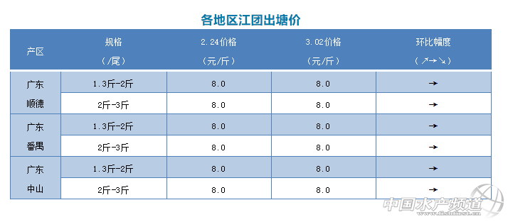 | 中國水產(chǎn)頻道原創(chuàng)報(bào)道, 文/圖 何氏水產(chǎn)、水產(chǎn)前沿 李靜 江團(tuán) 1、廣東江團(tuán)市場(chǎng)行情還沒有好轉(zhuǎn),目前開工抓魚量還是不大,也是抓大魚為主,滿足本地市場(chǎng)銷量,外地發(fā)貨不多。現(xiàn)在開塘價(jià)保持穩(wěn)定,中小魚價(jià)格有8.0元/斤,大魚價(jià)格7元/斤,銷量不大,江團(tuán)銷量暫時(shí)不會(huì)有太大改變,等外省市場(chǎng)開通后情況有所好轉(zhuǎn)。 2、四川江團(tuán)疫情有所好轉(zhuǎn),開工量相對(duì)比之前多一些,但也只是本地賣一點(diǎn)點(diǎn)。現(xiàn)在當(dāng)?shù)卮嫣亮窟是有一部分,現(xiàn)在都只能積壓在塘頭,這種情況本月或會(huì)有緩和。 |