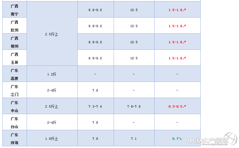 文/ 水產前沿 葉豐齊 2020鮰魚行情走勢 一周要聞 中國水產頻道原創報道,習近平總書記在考察湖北時強調:“密切監測市場供需和價格動態,保障米面糧油、肉禽蛋奶等生活必需品供應,暢通‘最后一公里’。武漢人喜歡吃活魚,在條件允許的情況下應多組織供應……” 習總書記的講話無疑給我國水產從業者極大的鼓舞。因為活鮮水產品供應目前正面臨著一些新冠疫情所帶來的難題。從疫期開始,湖北境內水產品流通基本停滯,省外流通也遲遲難以恢復順暢,即便成功申請通行證,省外水車在主觀上也不會進入湖北采購水產品。當地魚販反映,湖北本地水車把魚拉到其他省份水產批發市場銷售時,基本沒有人愿意購買,要把魚轉移到當地的魚車后才能順利售出。據悉,湖北養殖水產品存塘量仍有將近50%。 除湖北外,全國其他省份面臨更多的是消費不足的問題。餐飲消費仍未復蘇,水產品消費需求低,水產交易市場與食品加工企業難以從養殖戶手中大量收購壓塘已久的水產品。有業者告知筆者,在這個“后疫情影響”的大環境下,流通不暢,成魚壓塘難出,若時間久了,不但病害風險會越來越大,養殖戶也得持續投入成本苦苦維持。“目前我們養殖戶最需要的,或許是電費和塘租補貼。” 某鮰魚養殖戶如是表示。 整體行情綜述 本周鮰魚出魚量仍然很少,大部分產區行情與上周持平,少數地區魚價波動;江蘇鹽城3.2-3.8斤(平均3.5-3.6斤)規格較上周下調0.2元/斤;廣西2.5斤以上規格較上周上漲1.5-1.6元/斤;廣東中山2.5斤上規格較上周上調0.3-0.5元/斤,1.3斤上統貨較上周下調0.1元/斤;江門、臺山暫缺數據;珠海出1.8斤以上規格,較上周下跌0.7元/斤。 各產地行情分析 河南地區:當地酒店,餐飲都未正式營業,需求量少,養殖戶期望值較高,惜售走量甚少,2斤左右規格紅鮰9.2元/斤,黑鮰9.4元/斤,與上周行情一致。 湖北地區:仙桃市水產市場一直沒有人賣鮰魚,省外水車也不來抓魚,存塘量還有將近50%,1.5斤以上規格紅鮰本周塘頭價7.8元/斤,1.8斤以上規格黑鮰8元/斤,價格保持;荊州市黑鮰1.2-1.8斤規格塘頭價6.3-6.5元/斤,1.8斤以上規格8.5元/斤,同上周行情;業者反映市場上僅有少量四大家魚銷售,鮰魚養殖戶普遍沒有出魚;某魚販告知筆者,有湖北水車拉魚到陜西水產批發市場,但當地魚販都不買魚,把魚過車到當地魚車后才能出掉。 安徽地區:巢湖地區加工企業產能恢復到40000斤/天,1-2斤規格到廠收購價7元/斤,2-3斤規格8.7元/斤,與上周價格持平(到廠價較當地塘頭價高0.2元/斤,較外地塘頭價高0.5-0.7元/斤);鮰魚加工品以北京、上海和廣州為主要終端市場,已有更多餐飲陸續恢復堂食。 江蘇地區:根據消費市場,鹽城黑鮰有3種規格:走成都市場的0.8-1.3斤規格今年基本沒有出貨;走北京、山東市場的2.2-3.2斤(平均2.5-2.6斤)規格鮰魚約8.9元/斤,環比上周下調0.3元/斤;走甘肅、新疆、西藏、廣西的3.2-3.8斤(平均3.5-3.6斤)規格8.7元/斤,保持上周價格;有業者表示,當地養殖戶希望出魚,但終端消費地區餐飲還沒完全恢復,水產市場對鮰魚的需求量極少,許多客戶下了訂單但還沒有出水車拉魚;估計近期行情不會有太大波動,大家都對4月中下旬餐飲全面復蘇有所期待。 四川地區:四川本地養殖的鮰魚主要在成都和周邊一些城市銷售,主要是烤魚、火鍋和宴席等餐飲,目前部分恢復營業,少量鮰魚消費主要由廣東魚供應;樂山1.5斤以上規格黑鮰9元/斤,同上周價格。 廣西地區:本地存塘大量0.8-1斤鮰魚,因未到上市規格,整體出魚量極少;2.5斤以上較大規格本地鮰魚塘頭價10.5元/斤,環比上周上調1.5-1.6元/斤,基本都是走貴州地區烤魚店,當地偏好體色較深的鮰魚;廣西本地消費對體色無要求,需求2斤以下規格,約8.6元/斤,環比上周上調0.1元/斤。 廣東地區:本地加工廠產能仍未恢復,收購量較少,1-1.5斤統貨約6.1元/斤,養殖戶普遍惜售;廠價不佳,市場價也并非太好,中山地區有四川和山東水車抓2.5斤以上規格鮰魚,約7.6-7.9元/斤,環比上周上調0.3-0.5元/斤;出本地大魚則價格不佳,統貨1.3斤起6.3-6.4元/斤,環比上周下調0.1元/斤,業者表示有零星散戶出魚,但養殖規模較大的養殖戶不愿賣魚;江門和臺山本周數據暫缺;據珠海養殖戶反映,許多魚中表示爛市壓價,本周魚價下跌,1.8斤以上規格鮰魚7.1元/斤,環比上周暴跌0.7元/斤;有業者告知筆者,在整個疫情后遺癥影響的大環境下,成魚持續壓塘流通不暢之際,廣大養殖戶最需要的或許是電費和塘租補貼。 鮰魚報價 說明:塘頭價指從池塘抓魚價格,紅鮰指紅色斑點叉尾鮰,黑鮰指黑色斑點叉尾鮰 編號:hybj2020-3-13 |