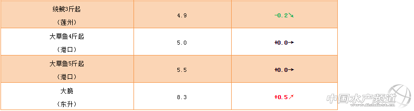 脆肉鯇:脆肉鯇漲價0.5元/斤,達到8.3元/斤,給養殖戶提升信心,期待流通恢復速度加快。脆肉鯇魚塘需要做好改底消毒,避免鯽魚和土鯪出現大量死亡。