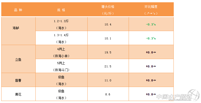海水特種魚:立魚存塘量大,流通量少,后市穩定