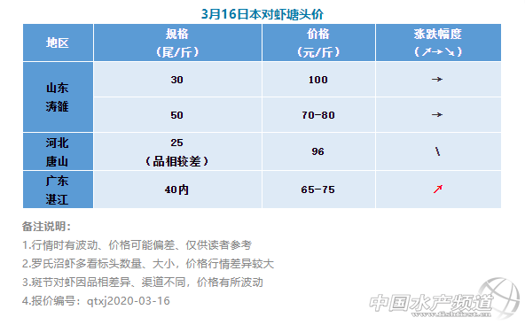 | 中國水產頻道原創報道, 本周蝦價穩中帶漲,羅氏沼蝦、斑節對蝦再漲1元/斤,日本對蝦暫無變動 文/ 水產前沿 何鴻浩 一周要聞 1、本周蝦價仍然略微增長 本周,羅氏沼蝦、斑節對蝦、日本對蝦價格仍然平穩,其中羅氏沼蝦已經連續兩周小幅度價格上升,增長幅度為1元/斤;斑節對蝦方面則同樣略微增長,增長幅度同為1元/斤。顯然,價格已經穩定且出現了回升跡象。近來南美白對蝦價格連連增長,增幅喜人,羅氏沼蝦、斑節對蝦、日本對蝦幾個品種則暫時沒有該現象出現。這點當然與市場消費有關,畢竟南美白對蝦是市場消費的主要品類之一,市場反饋也更為迅速一些。 2、羅氏沼蝦價格微升 本周羅氏沼蝦價格繼續增長,增幅約1元/斤。從業者表示,近來羅氏沼蝦的總體交易量偏少,還未恢復到往年正常情況,但這段時間的趨勢一直是增長的,說明市場的需求正在一步步復蘇,同時也希望大家積極應對。 3、斑節對蝦仍然維穩 目前斑節對蝦價格波動不大,整體情況一如上周,但30頭大規格斑節對蝦價格稍漲,增幅為1元/斤。近期,海外疫情加劇,海產品交易受阻,斑節對蝦作為可交易凍品之一也受到影響。目前看來,海外的斑節對蝦及其他水產品進入國內市場將有一定難度,對國內養蝦人是一個利好消息。 4、日本對蝦價格暫無變動 本周日本對蝦價格暫無波動,仍與上周持平。山東業者表示,這一造日本對蝦的成績很不理想,都沒有達到養殖戶的預期。大部分養殖戶可能處于小賺或平賬的情況,而囤貨的人基本都不掙錢甚至虧錢。顯然,身為小眾品種的日本對蝦在這導致次餐飲休業的疫情下,損失慘重。 5、海外對蝦貿易形勢復雜 目前,海外疫情加劇,各國都采取了相應措施,影響了國際對蝦市場貿易,主要影響對蝦品種為南美白對蝦和斑節對蝦。而且,有消息表示越南斑節對蝦出口被中國進口商叫停,且邊境貿易海鮮產品也出現滯銷情況。顯然,這是因為國內凍蝦庫存積壓較大,屆時可能會沖擊餐飲消費市場。 |
