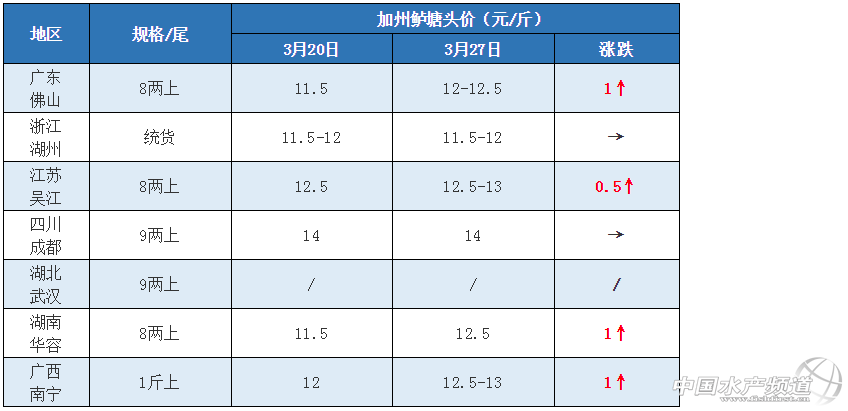 文/圖 鱖鱸前沿 賀志義 一周整體行情綜述 中國水產(chǎn)頻道原創(chuàng)報道,本周加州鱸市場行情回暖明顯,廣東魚價上周漲價之后,又連漲兩次,最高漲幅超1.5元/斤,目前8兩上魚價可達(dá)12.5元/斤,而且這次漲價帶動江蘇、廣西、湖南等地的魚價,出現(xiàn)不同程度的上漲,引發(fā)全國新一輪的漲價潮。整體來說目前行情不錯,而且次漲價非常迅速,預(yù)計后期價格或?qū)⒎(wěn)定一段時間,建議養(yǎng)戶朋友關(guān)注行情走勢,合理選擇出魚時機(jī),確保收益。 各地行情簡析 廣東佛山:今天報價8兩上12-12.5元/斤左右,同比上周最高上漲1元/斤,廣大魚價上漲勢頭十分迅猛,一周之內(nèi)連漲三次,外省來廣東的魚車數(shù)量增加明顯,甚至個別魚車抓不夠魚。目前挑魚要求也開始放松,大規(guī)格魚相比之前好賣,1斤8兩以上算超大,超大3成左右,可能會被壓價5毛左右。 浙江湖州:今天統(tǒng)貨(七成八兩上的)報價為11.5-12元/斤,本周價格平穩(wěn),此前浙江魚價兩周連漲三次,市場回暖十分明顯,目前當(dāng)?shù)夭惋嫸说南M(fèi)需求已恢復(fù)到去年的8成左右。當(dāng)?shù)貥I(yè)內(nèi)人士預(yù)計加州鱸產(chǎn)卵后,浙江魚價可能會再次漲價。 江蘇吳江:今天8兩上報價為12.5-13元/斤左右,同比上周最高上漲0.5元/斤。但吳江地區(qū)養(yǎng)殖戶的出魚積極性不高,只有部分清塘放苗的養(yǎng)殖戶選擇賣魚,當(dāng)?shù)亓?xí)慣養(yǎng)老口魚,大部分養(yǎng)戶還是計劃等5月份魚價開始回升再賣魚。 四川成都:今天報價1斤上14元/斤,四川的魚價一直比較穩(wěn)定,廣東魚價上漲,導(dǎo)致發(fā)往四川的魚數(shù)量減少,當(dāng)?shù)佤~價雖沒有上漲,但是銷量上漲十分明顯,爽市。 湖北武漢:情況特殊,暫無塘頭報價。 湖南華容:今天8兩上報價為12.5元/斤左右,在廣東魚價帶動下,比上周上漲1元/斤左右。據(jù)當(dāng)?shù)亓魍ㄉ谭从,目前走貨量恢?fù)到去年同期的5成左右,餐飲業(yè)也在恢復(fù)當(dāng)中,市場行情好轉(zhuǎn)較多。 廣西南寧:今天1斤上報價為12.5-13元/斤左右,比上周上漲1元/斤左右。同樣是受到廣東魚價上漲影響,廣西魚價也開始恢復(fù)。 7大產(chǎn)區(qū)加州鱸塘頭價對比 注:上述價格及行情分析僅供參考,市場有風(fēng)險,入市需謹(jǐn)慎。 編號:jzlbj2020-10/03-20 最新加州鱸苗種報價:目前廣東佛山市面水花價格:40-45/萬,價格稍跌;朝苗價格:8朝苗價格為0.4元/尾,8朝半為0.55-0.6元/尾,9朝為0.7元/尾,價格同比上周稍漲,具體價格根據(jù)苗種品質(zhì)有所浮動。(上述價格僅供參考) |