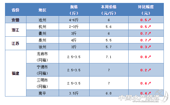 | 中國水產(chǎn)頻道原創(chuàng)報道, 草魚行情繼續(xù)全線飄紅,福建3斤規(guī)格賣到7.6元/斤,湖北突破6元/斤,廣東中山6.2元/斤,甘肅蘭州市場7.5元/斤,云南8元/斤 文/ 水產(chǎn)前沿 鄭鵬飛 一周要聞 云南草魚突破8元/斤 隨著存塘魚的進一步減少,本周全國草魚行情繼續(xù)全線飄紅,多地一周內(nèi)暴漲1元/斤以上。據(jù)了解,目前福建閩江地區(qū)3斤的草魚塘頭最高賣到7.6元/斤,漲幅達到1.1元/斤;湖北洪湖地區(qū)3斤的草魚最新塘頭價賣6元/斤,暴漲1元/斤;廣東中山地區(qū)3斤的草魚最高也已賣到6.2元/斤,上漲1元/斤;甘肅蘭州市場3斤的草魚最新報價7.2-7.5元/斤,一周內(nèi)最高暴漲1元/斤;云南地區(qū)3斤的草魚塘頭最高已經(jīng)賣到8元/斤以上。 福建閩江地區(qū)3斤的草魚賣到7.5元/斤,漲幅超1元/斤 甘肅蘭州草魚一周最高暴漲1元/斤 廣東中山3斤草魚最高賣到6.2元/斤 從養(yǎng)殖戶了解到,目前華中地區(qū)存塘草魚非常缺,流通商四處“搶魚”,有的養(yǎng)殖戶甚至把小魚苗都拉起來賣。目前湖北仙桃地區(qū)花鰱、白鰱和鯽魚三種魚苗混著賣都可以賣到12元/斤。 遼寧沈陽草魚塘頭價突破6.5元/斤 本周全國很多地區(qū)的草魚塘頭價漲幅都在0.5元/斤以上。目前,廣西桂林地區(qū)3斤的草魚最新塘頭價賣6元/斤,上漲0.5元/斤;江西南昌地區(qū)3斤的草魚塘頭賣6.2元/斤,上漲0.8元/斤;湖北武漢地區(qū)3斤的草魚塘頭價在5.5-6.2元/斤,上漲0.7元/斤以上;湖南長沙地區(qū)3斤以上的草魚塘頭賣5.6-6元/斤,最高上漲0.7元/斤;遼寧沈陽地區(qū)3斤的草魚從上周的5.8元/斤漲到6-6.5元/斤,最高上漲0.7元/斤。河北唐山、保定、天津等地區(qū)3斤的草魚塘頭價已經(jīng)突破6元/斤,上漲0.8元/斤。 四川成都淡水魚行情再次大漲,3斤草魚突破6.5元/斤,上漲0.4元/斤 江西南昌3斤草魚一周暴漲0.8元/斤 四川成都地區(qū)3斤的草魚塘頭賣6.5元/斤,上漲0.4元斤;江蘇淮安地區(qū)3斤的草魚最新塘頭價賣5.5元/斤,上漲0.5元/斤;漲衢州地區(qū)3斤的草魚塘頭價在6.2元/斤左右,上漲0.9元/斤,養(yǎng)殖戶表示突破7元/斤應該不是問題。目前全國各地的草魚行情繼續(xù)保持強勢上漲,預計接下來的行情仍然有較大上漲空間。 行情分析 華南地區(qū) 本周華南地區(qū)的草魚行情繼續(xù)保持上漲勢頭,最大漲幅達到0.5元/斤。隨著存塘魚的進一步減少,接下來的行情仍有較大上漲空間。 中山:從最新了解到的情況來看,目前廣東中山地區(qū)的草魚整體行情繼續(xù)保持強勢上升的勢頭。目前,黃圃地區(qū)草魚苗種再次上漲0.1-0.2元/斤,1-3兩的草魚苗塘頭價已突破6元/斤。據(jù)流通商介紹,目前3斤的草魚最新塘頭價賣5.5元/斤,較上周上漲0.3元/斤。從養(yǎng)殖戶了解到,有部分塘口3斤的草魚甚至已經(jīng)賣到6.1-6.2元/斤。 梅州:據(jù)業(yè)內(nèi)人士介紹,目前廣東梅州地區(qū)2-3斤的草魚塘頭賣6.2元/斤,3.5斤以上的賣到6.5元/斤,較之前上漲0.1-0.2元/斤。 廣西:本周廣西地區(qū)的草魚行情終于也開始動起來了。據(jù)養(yǎng)殖戶介紹,目前桂林地區(qū)3斤的草魚最新塘頭價賣6元/斤,較上周上漲0.5元/斤。 華中地區(qū) 目前華中地區(qū)存塘草魚非常缺,流通商四處“搶魚”,本周華中地區(qū)的草魚行情繼續(xù)保持強勢上漲,部分地區(qū)一周內(nèi)暴漲1元/斤以上。 江西:本周江西地區(qū)的草魚行情再次出現(xiàn)大幅上漲。從養(yǎng)殖戶了解到,目前南昌地區(qū)1.3斤的草魚塘頭賣5.1元/斤,上漲0.5元/斤;3斤的草魚塘頭賣6.2元/斤,較上周上漲0.8元/斤。 湖北:最近湖北地區(qū)的淡水魚行情終于也是開始強力反彈了。據(jù)養(yǎng)殖戶介紹,目前武漢地區(qū)3斤的草魚塘頭價在5.5-6.2元/斤,武昌魚賣到6.8-7元/斤,鯽魚最高賣到8.5元/斤。鄂州地區(qū)3斤的草魚塘頭賣5.3元/斤。仙桃地區(qū)3斤的草魚塘頭賣到5.3元/斤。洪湖地區(qū)3斤的草魚最新塘頭價賣6元/斤,較上周暴漲1元/斤。由于基本沒有存塘的成魚,有的養(yǎng)殖戶甚至把小魚苗都拉起來賣,了解到目前仙桃部分地區(qū)花鰱、白鰱和鯽魚三種魚苗混著賣,塘頭都賣到12元/斤。不過也有地區(qū)買時還是很困難,目前隨州地區(qū)因消費市場尚未恢復,3斤的草魚塘頭價繼續(xù)維持在4.5元/斤左右。 湖南:本周湖南地區(qū)的草魚塘頭價再次出現(xiàn)大幅上漲。從養(yǎng)殖戶了解到,婁底地區(qū)3斤的草魚批發(fā)市場賣6.2元/斤,而且目前繼續(xù)保持上漲勢頭;長沙地區(qū)3斤以上的草魚塘頭賣5.6-6元/斤,較上周最高上漲0.7元/斤,半斤以上的草魚賣到5元/斤,7兩的鯽魚賣6元/斤;常德地區(qū)3斤的草魚塘頭賣5.5-6元/斤,最高漲幅達到0.7元/斤;目前永州地區(qū)3斤的草魚最新塘頭價賣6元/斤,基本維持上周水平;邵陽地區(qū)3斤的草魚塘頭賣5.5元/斤,上漲0.2元/斤。 華東地區(qū) 福建:本周福建地區(qū)的草魚繼續(xù)引領這波上漲行情。據(jù)養(yǎng)殖戶介紹,目前閩江地區(qū)3斤的草魚塘頭最高賣到7.6元/斤,較上周漲幅達到1.1元/斤;南平地區(qū)3斤的草魚塘頭賣6.8元/斤,較上周上漲0.6元/斤;三明地區(qū)3斤以上的草魚塘頭賣6.8-7元/斤,較上周上漲0.4-0.6元/斤。 江蘇:本周江蘇地區(qū)的草魚行情也是出現(xiàn)大幅上漲,大部分地區(qū)3斤的草魚塘頭價已突破5.5元/斤。據(jù)養(yǎng)殖戶介紹,目前淮安地區(qū)3斤的草魚最新塘頭價賣5.5元/斤,較上周上