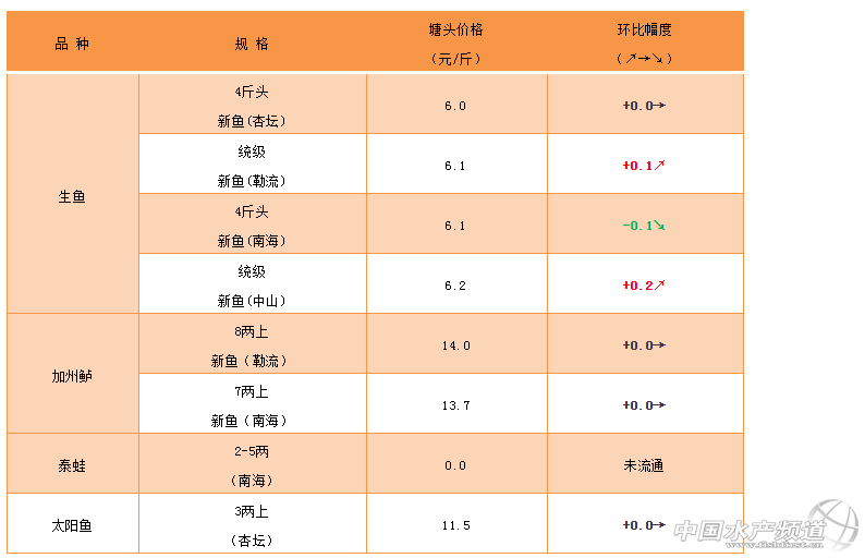文/ 珠海海龍、水產前沿 何鴻浩 生魚 中國水產頻道原創報道,順德杏壇:魚價波動不大,但基本上去年5月份的黑芝麻開始散春,料比增大。目前仍有較多爛身魚,建議處理好再出售,否則價格會低于市場價1元左右。 勒流區域:近期魚價波動不大。目前多數魚塘或多或少都有爛身問題,建議養殖戶妥善處理后,再考慮賣魚,否則可能會被壓價。 南海西樵九江:目前新舊魚價格差別不大,統級6~8成大魚開價5.9~6.3元,魚中主要看重身材以及是否有爛身。另外,今年頭批苗的價格將會導致許多養殖戶棄養、轉養其他品種。 中山區域:本周生魚價格趨于穩定,舊魚8成大魚統貨6.4-6.7元,新魚7成左右統級6.1-6.4元,天氣越來越熱,流通損耗增大,好身材的魚容易拿到高價。 |