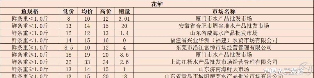摘要: 中國水產頻道報道,2020年5月20日多品種魚各地批發市場報價