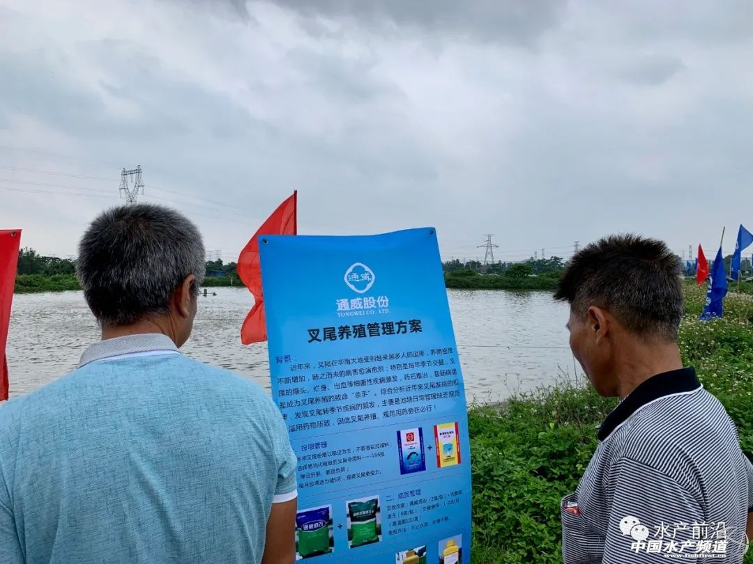 | 中國水產頻道原創報道, 江門最會養叉尾鮰的黎老板塘頭分享養殖心得,干貨滿滿,100多位鮰魚養殖戶組團“取經” 文/圖水產前沿葉豐齊 斑點叉尾鮰是今年比較熱門的水產養殖品種之一,眾多業者與養殖戶對其非?春,希望能了解更多關于鮰魚的養殖資訊,特別是由其他品種轉養,入局試水的養殖者們。 “江門棠下的黎老板被魚中稱為‘江門最會養叉尾鮰的養殖戶’。20多年養殖經驗的他2018年底開始育苗養鮰魚,憑借單畝放苗1.2萬尾,畝產2萬多斤,畝效益3萬余元,在當地一炮而紅,周邊的養殖戶聞訊開著馬薩拉蒂來求學!” 江門市棠下鎮叉尾鮰養殖戶黎老板(左)和廣東通威服務部經理曾波(右) 5月20日廣東通威飼料有限公司(下文簡稱“廣東通威”)特別邀請了100余位養殖戶到棠下鎮黎老板的魚塘參觀交流,周邊養殖戶也紛紛前來觀摩學習。 大家一大早造訪黎老板魚塘參觀學習交流 低調但樂于分享的黎老板專門安排了四口塘現場投料的展示!每當飼料一接觸水面,瞬間激起叉尾鮰搶食,水花濺到岸邊的圍觀者身上,大家驚叫連連,紛紛拿起手機拍攝并分享給親朋好友!很多養殖戶看到這一幕不禁表示:見所未見,聞所未聞!我的養殖方法確實要改進了! 黎老板共有水面100余畝,其中4口塘28畝養殖叉尾鮰,放苗40萬尾,放苗密度高達1.2萬尾/畝。據他介紹,養殖叉尾鮰的成功要素在于分級精養,病害很少,養殖成本低至4.5元/斤。 黎老板投放40萬尾200尾/斤的叉尾鮰苗,他采用分級過塘養殖,這40萬尾下塘養殖2個月后,黎老板從中篩出12朝上大約29尾/斤左右規格的17萬尾分塘養殖(2號塘,1號母塘余下23萬尾),養殖2個半月后,再從2號塘的17萬尾中分出8萬到3號塘,同時1號塘分8萬尾到4號塘。 目前,4口魚塘每口已上市2斤以上規格商品魚6萬余斤,每口魚塘存塘8萬多斤,達到畝產2萬多斤,畝效益高達3萬多的養殖效果。 黎老板分享養殖心得(通威股份供圖) 據悉,魚塘日常管理黎老板都親力親為。根據自身經驗之談,黎老板使用通威無鱗魚膨化配合飼料,并建議苗期投喂率保持1.7-1.8%,而成魚階段保持在1.2-1.3%,若天氣不好則最好是1.0%!安嫖蝉t貪吃,一旦持續投喂,吃食過多會讓其消化不良,容易引發腸炎、套腸等疾病,免疫力下降后還會引起其他并發癥。”他告知筆者。 黎老板給鮰魚喂料 黎老板養殖全程使用飼料 “另外,定期使用底改、調水產品也很重要!崩枥习鍙娬{。的確,養殖密度如此之大,維持水質,讓鮰魚生活在相對健康的環境下,避免病害侵擾,是頗費功夫的事!岸ㄆ7-10天進行一次改底。第一天使用通威底改,第二天使用通威活菌底改王!彼f:“因為我凡事親力親為,每天都能觀察到池塘狀況。一旦發現鮰魚吃食不好,或者水色有變化,我就使用一次調水底改。” 叉尾鮰搶著吃料 與大家分享個人心得之余,黎老板也謙虛地表示,希望通過此次交流向業界同仁多多學習,借鑒取經,尤其是廣東通威目前正在推廣的“鮰魚精養231”和“鮰魚混養671”兩種養殖模式。 據廣東通威服務部經理曾波介紹,所謂“231”精養模式,2表示一年養兩批,3代表每批次放苗3000尾/畝,養成后畝產可以達到1萬斤以上,包括1千斤混養的鯪魚、大頭魚和鯽魚。 廣東通威服務部經理曾波為大家介紹“鮰魚231精養模式” 在這種模式下,在6月份投放水花(卵黃苗)15萬尾/畝,到7月初挑出600-800尾/斤規格炮頭苗分塘養殖,約8萬/畝;15天后,再挑出200-300尾/斤炮頭苗分塘,約4萬尾/畝;30天后挑出20-30尾/斤炮頭苗過篩,約2萬尾/畝,再過45天就能達到2-3兩/尾的規格。 從10月初投放2-3兩苗養到翌年1-2月,第一批炮頭魚規格可達到1.5斤/尾上市。“第一批魚為苗種頭魚,生長速度快,料比低,并能趕上高魚價!痹ń忉尩。 出掉炮頭魚后,其余的也能在5-6月分批干塘出魚,并在7月初進行第二批魚的投苗,由2-3兩/尾規格養到11月達到1.5斤/尾陸續上市,僅需短短5個月。曾波表示,第二批魚趕上了9-11月叉尾鮰最佳生長期。 “鮰魚精養231”模式 除此之外,“671”模式混養了6種魚,分別是鯪魚、鯽魚、大頭魚(2批)、草魚、羅非魚以及叉尾鮰;其中叉尾鮰年產量可達7000斤/畝,草魚和羅非魚達到2000斤/畝,雜魚1000斤以上,畝總產量達到1萬斤以上。 “鮰魚混養671”模式 不過曾波認為,從放苗到出魚的養殖周期畢竟很長,新養殖戶較難把控其中風險,所以最佳方案還是由“專人”進行叉尾鮰水花苗標粗工作來助力養殖。“參照中山草魚分級養殖的模式,篩選部分優質養殖戶標大規格苗種(2-3兩/尾)”曾波如是表示。如此一來,養殖戶可以直接拿2-3兩/尾的大苗投放,大幅縮短養殖周期,既降低了養殖風險,也能提早上市,避開年底出魚高峰。 活動花絮 |