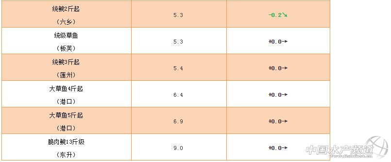 文/ 珠海海龍、水產前沿 何鴻浩 中國水產頻道原創報道,草魚種:本周草魚種價格繼續微跌。現階段還有一定利潤空間,出魚集中,需求穩定,考慮到短期內市場草魚種容量還是相對較少,后續預測價格會較為穩定。此外,近期高溫低壓多雨,天氣極其不穩定,出魚、過塘需注意做好魚體內服保健及防應激處理,減少抽筋、硬骨死魚損耗。 統鯇:行情較上周維持穩定,1.5斤上保持在5.5元/斤;2斤上維持在5.3元/斤;3斤上維持在5.4元/斤。 大草魚:價格保持利好,較上周整體不變,4斤上保持6.4元/斤;5斤上保持6.9元/斤。 脆肉鯇:本周脆肉鯇價格穩定,目前市場存塘主要集中在魚中及大渠道手上,需求及存塘比較穩定,因此近期魚價較為穩定。此外,由于高溫天氣、市場需求量不大,目前預計后市依舊會較為低迷。 |