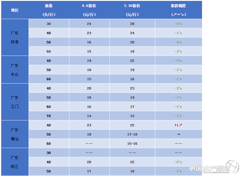 文/圖 水產前沿 植銀素 本周要聞及行情 中國水產頻道原創報道,本周珠三角白蝦價格持續下滑,中山地區有養殖戶表示:“今天成交價40頭僅18-19元/斤!別說賣蝦積極性,養蝦積極性都下滑了不少。”而有同時養殖白蝦和泥鰍的部分養殖戶說今年已經注定虧本!最近一段時間,龍舟水頻繁“寵幸”珠三角,多地降水量已破記錄,天氣原因導致白水蝦長速慢,發病多,綜合之下今年白蝦養殖“叫苦連連”,預計后期價格還會繼續下滑。本周福建龍海蝦價跌幅最大也達到了6元/斤,當地養殖戶表示近期蝦子發病嚴重,加上斑節蝦也上市了,部分蝦車拉白蝦不賺錢就轉向斑節蝦市場,但是同樣的斑節蝦也因消費需求不強,上市增多就引起了價格下滑。 江浙一帶跌價也遠遠未結束。有流通商告訴筆者,五一假期之后全國消費市場又重新降溫,批發市場蝦一多就會造成爛市,量又重新下去,造成短期的惡循環。但是談到端午假期會不會拉升蝦價,眾人則表示不好說。“端午節漲價和需求量關系很大,但是節前、節后兩次掉價也是大概率事間,尤其是節后掉價往往更快。”有資深養殖戶說起自己的經驗。 天氣方面,6月6-9日,廣東、廣西的龍舟水將重啟,且強度比上一階段更大。官方預報顯示,這幾天,兩廣大雨暴雨將不斷重演。在此也要提醒養殖戶時刻提高警惕,除了魚蝦安全也要保護自身安全! 各地白對蝦價格一覽 說明:上述報價可能會因區域、規格、品質和時間等因素的不同而會產生差異,在此僅供參考。 編號:dxbj2020-6-6 |