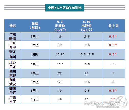| 中國水產頻道原創報道, 文/水產前沿賀志義 圖/杰大飼料 一周行情綜述 本周加州鱸整體行情是穩中有升,兩大主產區廣東佛山和江蘇吳江加州鱸價格稍有上漲,但漲幅不大,兩地均以出統貨居多,同比上周都上漲0.5元/斤左右。其它主產區整體漲幅不大或是沒有上漲,筆者通過幾家水產市場檔口的老板了解到,現在魚價雖高,但是每天的走貨量不多,大部分都認為可能正是由于魚價過高,而目前的消費水平有限,導致走貨量較少,價格漲幅不大。 主產區行情簡析、報價 廣東佛山:目前佛山養殖戶多是6兩上統貨清塘,今天6兩上報價為19.5元/斤左右,比上周上漲0.5元/斤,具體價格會根據大魚的成數稍有浮動。據悉目前沙頭和勒流江義地區存塘量稍多,其它區域僅剩個別零散存塘,本地舊魚的存塘量已經不多。但本周明顯感覺外地流通商過來廣東收魚減少,受此影響,商品魚銷量比上周有所減少,市場消費需求不及預期。 浙江湖州:今天統貨報價為16.5-17.5元/斤,同比上周漲0.5元/斤,跟隨吳江地區漲價趨勢,但湖州老口魚存塘量極少,魚價要比吳江地區低0.5元/斤。當地流通商周老板反映最近多在吳江抓魚,菱湖地區魚少,如有魚車前往的話,放空的風險比較大。 江蘇吳江:今天8兩上報價為18.5元/斤左右,9兩上報價為19元/斤左右,價格同比上周沒有變動,但是統貨價格上漲0.5元/斤左右,目前17.7-18.2元/斤左右,而且當地養殖戶也是以出統貨居多,所以整體行情還是略有上漲。 四川成都:今天報價9兩上22元/斤左右,魚價保持穩定,據悉當地已經沒有多少存塘量,流通商找魚困難,但四川魚價高,從外地抓魚也有一定的利潤,部分流通商前往湖南、廣西等地抓魚。 湖北武漢:今天8兩上報價為19.5元/斤左右,同比上周價格穩定,但武漢市場對鱸魚消費需求量同比上周有所增加,但本地魚并不多,部分武漢流通商前往吳江地區拉魚供應本地市場。 湖南華容:今天8兩上報價為19.5元/斤左右,9兩上報價為20元/斤左右,同比上周上漲0.5元/斤。但據當地水產市場檔口一老板反映,這段時間每天的走貨量明顯下降,目前只有2萬斤,去年同期有6萬斤左右,他認為現在魚價過高,大家兜里又“沒錢”,他認為現在魚價偏高,由于今年疫情的影響,居民收入有所下降,商品魚消費量當然也有所下降。 廣西南寧:今天1斤上報價為20元/斤左右,同比上周上漲1元/斤。據當地流通商李老板反映現在南寧市場銷量同比去年減少很多,而且往年基本不賣小規格魚,現在大部分都是賣8兩左右的魚,小規格魚價格便宜賣得快。 |