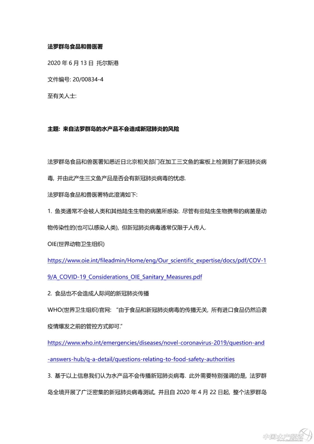 | 中國水產頻道原創(chuàng)報道, 國家官方辟謠“海鮮帶毒”還三文魚清白 文/海鮮指南(seafood-guide)編輯部 國家官方辟謠“海鮮帶毒”,還三文魚清白 6月14日,在北京市新型冠狀病毒肺炎疫情防控工作第116場新聞發(fā)布會上,唯一的一次點名提問,給了央視記者。豐臺區(qū)副區(qū)長張婕回應了“三文魚帶毒”的傳聞。 豐臺區(qū)副區(qū)長張婕介紹,昨天(6月13日)豐臺區(qū)疾控中心對岳各莊市場采取了環(huán)境樣本155件,檢測結果均為陰性。 北京市疾控中心和豐臺區(qū)疾控中心聯(lián)合對京深海鮮市場海鮮區(qū),特別是三文魚的交易攤位以及公共區(qū)域進行了抽樣檢測,合計采集的樣本一共是469件,其中有人員咽拭子樣本186件,環(huán)境樣本283件,目前結果都是陰性。 全國多地海鮮水產市場核酸檢測結果為陰性 6月13日起,全國多地市場進行了核酸檢測,截至海鮮指南6月15日發(fā)稿,官方發(fā)布的最新檢測結果如下: 北京多區(qū)緊急采樣均為核酸陰性 本周末西城區(qū)市場監(jiān)管局全員在崗,對轄區(qū)食品市場、食品流通、餐飲業(yè)態(tài)開展食品安全和疫情防控大檢查。目前,已對西直門盒馬鮮生、物美新街口店、沃爾瑪宣武門店、牛街清真超市、萬發(fā)恒順菜市場開展食用農產品的核酸檢測,共110件樣本,核酸檢測結果均為陰性。 此次檢查以生鮮、冷凍豬肉、牛肉、羊肉、雞鴨肉等畜禽肉類、水產品及其制品為重點品種,以各類經營生鮮、冷凍肉品及水產品的食品集中交易市場、專業(yè)冷凍冷藏庫房、超市、便利店、食雜店以及肉類和水產品使用量大的餐飲服務單位等經營者為重點,全面排查食品銷售領域生鮮類食用農產品來源信息,重點對供貨渠道、商戶信息、攤位號、采購方式、采購數(shù)量等信息進行排查。 截至昨日(6月13日)12時,平谷對區(qū)內東寺渠市場、西寺渠市場、千喜鶴肉類加工廠、鑫海韻通大賣場、華聯(lián)超市、物美超市共6家單位進行新冠病毒采樣監(jiān)測,共采集外環(huán)境監(jiān)測標本236件,進行新冠病毒核酸檢測,結果均為陰性。 6月12日,朝陽區(qū)疾控中心對重點場所和人群進行檢測。截至昨日12時,朝陽區(qū)對松榆東里市場、大洋路農副產品市場、農展北路集貿市場、天豐利生活用品市場、亞星香園農副產品市場、道爾泰農貿市場、金瀛農貿市場、盛華宏林糧油批發(fā)市場、四海官鑫海鮮市場、朝京金旭菜市場、農光里農貿市場等11家農貿市場進行新冠病毒采樣監(jiān)測,共采集外環(huán)境監(jiān)測標本393件、人員標本114件,進行新冠病毒核酸檢測,結果均為陰性。 廣州:黃沙水產市場抽檢進口三文魚等71個樣品核酸檢測結果均為陰性 6月13日,廣州市、荔灣區(qū)兩級疾控中心突擊抽檢廣州黃沙片區(qū)各水產批發(fā)市場30多個批發(fā)零售檔銷售的進口三文魚等食品樣、環(huán)境樣共計71個樣品。根據(jù)荔灣區(qū)疾控中心的反饋,全部樣品核酸檢測結果均為陰性。目前黃沙水產市場三文魚處于正常交易狀態(tài),主要包括原條三文魚批發(fā)和分解后的三文魚批發(fā)兩種銷售方式,貨源以進口為主。 武漢:連續(xù)兩日累計檢測3342個環(huán)境及海鮮樣本,結果均為陰性 6月13日,武漢市、區(qū)疾控中心對13個區(qū)的14個農貿市場、13個超市進行抽檢,對畜、禽類,淡水產品和海鮮產品攤位的案板、刀具、排水溝,以及其他環(huán)境共1590個位點進行采樣檢測,其中包括進口三文魚攤位的樣本155個。省、市疾控部門對樣本進行平行檢測,所有樣本的新冠病毒核酸檢測結果均為陰性。 6月14日,武漢繼續(xù)對全市各超市、農貿市場等環(huán)境進行采樣檢測,同時抽檢部分海鮮產品。市、區(qū)疾控中心對15個區(qū)的20個農貿市場、25個超市、5個水產品進出口貿易公司進行抽檢。抽檢對象為海鮮產品、淡水產品和畜禽類攤位的案板、刀具、排水溝及冷庫等環(huán)境,共采集1752個樣本,其中包括來自南美的三文魚、對蝦、白蝦等海產品54件,所有樣本的新冠病毒核酸檢測結果均為陰性。 湖北:1590個位點均為核酸陰性 6月14日,記者從湖北省衛(wèi)健委獲悉,13日湖北省和武漢市疾控中心對武漢市13個區(qū)的14個農貿市場,以及13個超市的畜、禽類、淡水產品和海鮮產品攤位,共1590個位點采樣進行平行檢測,新型冠狀病毒核酸均為陰性。 天津:抽樣檢測海鮮批發(fā)市場未發(fā)現(xiàn)核酸陽性 天津市疾病預防控制機構對全市海鮮批發(fā)市場,針對有可能存在感染隱患的市場外環(huán)境和水產海鮮、牛羊肉等進行抽樣檢測;針對市場所有從事海產品銷售、儲存、運輸、加工等從業(yè)人員進行核酸檢測;通過流行病學調查發(fā)現(xiàn)與周邊疫區(qū)有關聯(lián)的人員和產品立即進行隔離管控。截至13日下午16時,全市已排查出830名疫情地區(qū)暴露人員及其密切接觸者并實施相關管控措施,對246份海鮮批發(fā)市場等外環(huán)境標本和329名從業(yè)人員呼吸道標本進行了核酸檢測,目前尚未發(fā)現(xiàn)有關人員和環(huán)境樣本核酸檢測陽性情況。 成都:共采集從業(yè)人員153人、環(huán)境樣品等161件,新冠病毒核酸檢測結果均為陰性 據(jù)成都市衛(wèi)健委14日消息,為加強風險排查,成都市、區(qū)疾控中心于13日起對銷售、加工海鮮和進口凍肉的批發(fā)市場、大型超市的從業(y