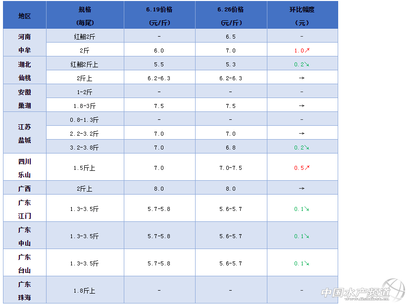 文/ 水產前沿 葉豐齊 2020年鮰魚行情走勢 整體行情綜述 中國水產頻道原創(chuàng)報道,本周鮰魚行情出現波動,數產區(qū)魚價稍為下行,部分地區(qū)回暖;河南2斤規(guī)格黑鮰上調1元/斤,同規(guī)格紅鮰6.5元/斤;湖北仙桃2斤上紅鮰下調0.2元/斤,同規(guī)格黑鮰價格持平;安徽地區(qū)2-3斤規(guī)格到廠收購價保持;江蘇鹽城2.2-3.2斤(平均2.5-2.6斤)規(guī)格價格不變,3.2-3.8斤(平均3.5-3.6斤)規(guī)格下調0.2元/斤;四川樂山1.5斤上規(guī)格鮰魚價格上調0.5元/斤;廣西1.5斤上規(guī)格池塘魚和網箱魚、2斤上網箱魚及池塘魚價格皆與上周一致;廣東加工廠0.8-3斤規(guī)格切片魚和開背魚價格保持,1.55-2.75斤入廠規(guī)格下調0.2元/斤,中山、江門、臺山1.3-3.5斤規(guī)格走市場統(tǒng)貨皆下調0.1元/斤,而珠海暫無相關價格信息。 各產地行情分析 河南地區(qū):2斤上規(guī)格黑鮰7元/斤,環(huán)比上周回升1元/斤,同規(guī)格紅鮰6.5元/斤;因為成魚量暫且不算很大,養(yǎng)戶一般挑大留小陸續(xù)出魚,但近期價格過低普遍惜售,即使目前行情稍稍回升,養(yǎng)戶也并不積極,出魚的少了,價格也慢慢回暖;作為全國活魚運輸中轉站,河南地區(qū)鮰魚流通量大,一天能走20萬斤以上,主要外銷,可以說全國鮰魚行情基本要看河南,一漲一跌會影響全國其他產區(qū)的價格。 湖北地區(qū):仙桃市2-4斤走市場黑鮰塘頭價6.2-6.3元/斤,同上周,同規(guī)格紅鮰5.3元/斤,環(huán)比上周下調0.2元/斤,價低養(yǎng)戶普遍惜售,業(yè)者認為當河南和江蘇魚減少后,湖北魚價才可能回升;目前四川車不過來拉魚,西南主要由貴州市場消化,對顏色和質量普遍要求較高,湖北池塘魚顏色達不到要求,出價不高;業(yè)者表示,到8月份左右外省魚減少,湖北魚行情估計會回暖,這是往年的規(guī)律。 安徽地區(qū):巢湖地區(qū)每天收購大約15萬噸斑點叉尾鮰原料魚,2-3斤規(guī)格到廠價7.5元/斤,暫同上周價格,目前主要收購本地老口魚,并停止從廣東產區(qū)收魚,而改由江蘇產區(qū)。 江蘇地區(qū):走北京、山東市場的2.2-3.2斤(平均2.5-2.6斤)規(guī)格鮰魚約7元/斤,同上周價格;走西南西北地區(qū)的3.2-3.8斤(平均3.5-3.6斤)規(guī)格6.8元/斤,環(huán)比上周下調0.2元/斤;北京市場仍然走不了,基本在走山東,西北還有西南市場,由于擔心疫情影響下一批生產,養(yǎng)戶繼續(xù)積極出魚,希望趕在7月底把老口魚出完;以目前情況來看,希望不是很大,雖然安徽加工企業(yè)開始從江蘇收購原料魚,但當地養(yǎng)戶普遍不太愿意走廠,還是以走市場優(yōu)先,這可能會造成后市魚價繼續(xù)波動。 四川地區(qū):樂山1.5斤以上規(guī)格黑鮰塘頭價7-7.5元/斤,環(huán)比上周上調0.5元/斤;處于養(yǎng)殖大戶出魚期,市場需求量不大,散戶一般都惜售;現在外圍市場魚價暫時穩(wěn)住了,進入川渝的外省魚較少,不會影響當地行情,后市應能保持穩(wěn)定。 廣西地區(qū):2.5-3斤上網箱魚10.2元/斤,1.5斤上規(guī)格網箱魚7.8元/斤,2斤上8.8元/斤,1.5斤上池塘魚7元/斤,2斤上8元/斤,皆保持上周價格;高溫少有外省魚入桂競爭,總存塘量隨本地網箱減少,新魚暫時只有0.5-0.8斤,貴州和云南水車也不時來拉魚,所以供求相對穩(wěn)定,后市行情可能保持到11月,間中或有微小波動,理應不影響大局。 廣東地區(qū):加工廠分兩種規(guī)格收購0.8-3斤統(tǒng)貨,收得較多的切片魚5.7元/斤,最近基本很少收的開背魚6-6.1元/斤,皆保持上周價格;市場方面,1.3-3.5斤統(tǒng)貨5.6-5.7元/斤,環(huán)比上周下調0.1元/斤,本地批發(fā)市場對大規(guī)格魚成數沒多大要求,建議養(yǎng)戶盡快出掉老口魚,目前還有一定盈利空間,再往后拖新魚開始陸續(xù)上市就會比較麻煩;個別地區(qū)方面,中山1.3斤上統(tǒng)貨5.6元/斤,環(huán)比上周下調0.1-0.2元/斤,江門1.3-3.5斤市場規(guī)格5.6-5.7元/斤,環(huán)比上周下調0.1元/斤,另有工廠收1.55-2.75斤規(guī)格6.1元/斤,環(huán)比上周下調0.2元/斤,但要排隊等待檢測;臺山1.3-3.5斤規(guī)格塘頭價5.6-5.7元/斤,環(huán)比上周下調0.1元/斤。 鮰魚報價 說明:1.上述價格及行情分析僅供參考,市場有風險,入市需謹慎 2.塘頭價指從池塘抓魚價格,紅鮰指紅色斑點叉尾鮰,黑鮰指黑色斑點叉尾鮰 編號:hybj2020-6-26 特別感謝龔旺先生對本文的支持! |