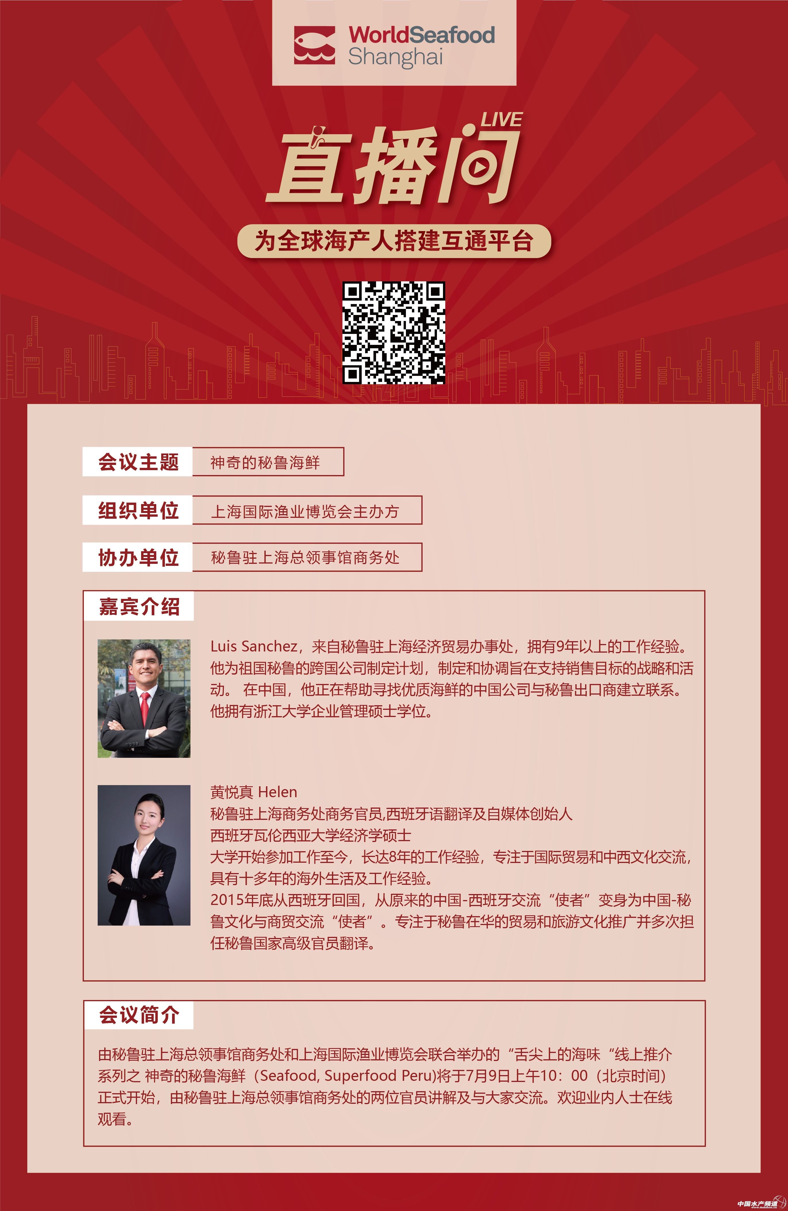 | 中國水產頻道報道, 首場“舌尖上的海味”系列全球海鮮線上推介會重磅開啟! 作為第15屆上海國際漁業博覽會的重要主題活動之一,第五屆舌尖上的海味·進口海鮮推介品鑒會將繼續甄選全球新鮮的海鮮食材,佐以最健康、前沿的料理方式,在資深大廚的精心烹飪及專業講解中,在展會現場為來賓奉上一場舌尖上的海鮮饕餮。 今年上海國際漁業博覽會主辦方特別策劃了“舌尖上的海味”系列全球海鮮線上推介會,旨在為全球海產進出口貿易商、連鎖酒店海鮮供應及所有行業內人士搭建分享、交流云平臺,讓各位參與者直觀了解產品,分析市場變化,在線提問、交流,促成采買及合作機會。 本次線上直播推介活動將邀請各國優質海產相關協會、企業代表,推薦介紹全球各地特色海產品,并特別關注在2020年疫情的大背景下,健康、新鮮的海產品是如何從源頭被放心端上餐桌,引發對全球海鮮營銷渠道及終端消費者新需求的深度思考,并為貿易雙方匹配供需,達成有效交流與合作。 7月9日(周四)上午10:00,上海國際漁業博覽會主辦方邀請到秘魯駐上總領事館商務處做客直播間分享秘魯的大魷魚、南美白對蝦、扇貝等秘魯當地特色海產對中國的出口情況,歡迎各位業內人士鎖定上海國際漁業博覽會直播間參與互動交流! 探尋舌尖上的秘魯 秘魯,位于南美洲西部,西瀕太平洋,擁有豐富的海洋資源以及世界上最大的漁場之一,為生產出優質多樣的海產品提供了良好的環境。其中,南美白對蝦、秘魯扇貝、大魷魚、鯖魚等秘魯當地特色海產品,在國內外市場都備受歡迎。 目前,中國已成為秘魯最重要的出口市場之一。據秘魯生產部統計,2019全年對華出口占比22%,其中前5個月秘魯海產品對華出口額達到15.63億美元(約為人民幣107.51億元),同比增漲24%。2020年,秘魯將計劃進一步增加海產品出口,開拓中國市場,未來把更多優質多元的秘魯海鮮出口到中國,將秘魯美食的非凡魅力呈現給更多中國消費者。 7月9日(周四)上午10:00 首場“舌尖上的海味線上推介系列” 之神奇的秘魯海鮮 歡迎業內人士在線觀看 |