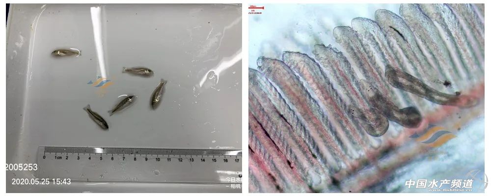 | 中國水產(chǎn)頻道原創(chuàng)報道, 據(jù)鱖鱸前沿最新報道,加州鱸又全線上漲,存塘量日益減少,最高再漲0.8元/斤,后市可能還要漲,但如果你的池塘有了這個“它”... 文/圖活寶源魚病室梁芝源、胡飛、楊紫晴、胡雄 指環(huán)蟲,隸屬于扁形動物門、單殖吸蟲綱,是加州鱸常見的一種寄生蟲,主要寄生于鰓部,在4~6月份感染率很高,但由于其感染數(shù)量不多,或常與其他病原如柱狀黃桿菌、虹彩病毒等混合感染而呈現(xiàn)復(fù)雜的病癥,很多養(yǎng)殖戶和技術(shù)員輕視了該蟲的危害,導(dǎo)致治療被耽誤、病情進(jìn)一步惡化。那么,指環(huán)蟲對加州鱸有何危害,如何診治呢?我們整理分析了今年接檢的與指環(huán)蟲感染有關(guān)的典型診治病例,以供大家參考。 一、指環(huán)蟲的直接危害 1.1刺激魚體,影響攝食,導(dǎo)致縮料。 2020年6月,廣東肇慶孔老板,使用水槽養(yǎng)殖加州鱸,3條210m3的水槽共計放養(yǎng)了8萬尾加州鱸,全長已達(dá)20cm。6月10日開始發(fā)病,攝食變差,死魚日漸增多至兩三百尾/天,遂于6月20日采樣送檢。經(jīng)全面檢測,該加州鱸感染了指環(huán)蟲和柱狀黃桿菌,虹彩病毒呈陰性。綜合考慮,建議其先殺指環(huán)蟲,再拌喂敏感抗菌藥。據(jù)后續(xù)反饋,其6月20號中午使用甲苯咪唑驅(qū)殺指環(huán)蟲,6月21號加州鱸攝食明顯改善,游邊病魚也有所減少。 左:P01,示病魚癥狀;右:P02,示指環(huán)蟲(4*10倍) 1.2損傷鰓絲,阻礙呼吸,直接致死。 2020年4月,廣東順德,網(wǎng)箱養(yǎng)殖加州鱸,2個8m3的網(wǎng)箱共計放養(yǎng)了3000尾全長為3~6cm加州鱸朝苗。4月16日,開始出現(xiàn)零星死魚,并逐漸增多至十幾尾/天,并偶見個別病魚黑身、游邊。4月19日,檢測發(fā)現(xiàn)病魚鰓部有大量指環(huán)蟲,遂使用甲苯咪唑進(jìn)行驅(qū)殺。據(jù)后續(xù)反饋,4月20日,死魚仍有十幾尾,但攝食明顯好轉(zhuǎn),未觀察到游邊病魚;4月21日,死魚迅速減少,僅發(fā)現(xiàn)幾尾;4月22日,死魚現(xiàn)象消失,攝食恢復(fù)正常。 這主要見于全長8cm以下的朝苗階段,如感染了較多的指環(huán)蟲,魚苗呼吸受阻,又遇上惡劣天氣水體溶氧含量低,就很容易出現(xiàn)死魚。 左:P03,示病魚黑身;右:P04,示鰓部大量指環(huán)蟲。 二、指環(huán)蟲的間接危害 2.1誘發(fā)爛嘴、爛鰓病。 2020年5月,佛山順德,池塘水面3畝,水深2米,有全長3cm左右的加州苗6萬尾。5月19日,分篩;5月20日,水體使用復(fù)合碘+五黃類中草藥進(jìn)行消毒;5月22日,開始出現(xiàn)爛嘴、爛尾病,死魚達(dá)200多尾;5月23日,使用所謂特效藥“紅粉”進(jìn)行消毒,效果不理想;遂于5月25日送檢。經(jīng)檢測,該加州鱸苗感染了大量指環(huán)蟲,病灶有少量柱狀黃桿菌。綜合分析,建議其使用甲苯咪唑類殺蟲藥驅(qū)殺指環(huán)蟲,并拌喂適量敏感抗菌藥。據(jù)后續(xù)反饋,殺蟲后死魚迅速減少,死魚現(xiàn)象在內(nèi)服敏感抗菌藥后完全消失,療效顯著。 對于小規(guī)格加州鱸苗種,感染指環(huán)蟲后很容易繼發(fā)感染柱狀黃桿菌而出現(xiàn)爛嘴;對于大規(guī)格加州鱸苗種和中成魚,感染指環(huán)蟲后則容易繼發(fā)感染柱狀黃桿菌而出現(xiàn)爛鰓。當(dāng)指環(huán)蟲與柱狀黃桿菌混合感染時,不殺蟲則使治療難度大大增加,即使治愈后也很容易復(fù)發(fā)。 左:P03,示病魚;右:P04,示鰓部指環(huán)蟲。 2.2誘發(fā)花身、鰓蓋潰爛等。 2020年5月,佛山順德,池塘水面5畝,水深2.5米,有全長15~20cm左右的加州苗4.5萬尾。5月25日送檢,經(jīng)交流,該塘已發(fā)病近一個星期,死魚癥狀以花身、爛身、鰓蓋潰爛為主,用過硫酸銅+碘、拌喂過治療爛身的專用藥,但效果都不理想。經(jīng)檢測,該加州鱸感染了指環(huán)蟲,內(nèi)臟未分離培養(yǎng)到疑似致病菌,蛙屬虹彩病毒呈弱陽性。綜合分析,建議其使用甲苯咪唑類殺蟲藥驅(qū)殺指環(huán)蟲,以減小刺激,并拌喂膽汁酸、五黃類中草藥等。據(jù)后續(xù)反饋,該塘主于25號傍晚潑灑高錳酸鉀+碘,但病情未見明顯好轉(zhuǎn),5月29號,殺蟲,31號,再次殺蟲,病情逐漸好轉(zhuǎn),至6月4日,死魚減至二三十尾/天。(編號:2005257) 對于加州鱸中成魚,雖然不易出現(xiàn)爛嘴、爛鰓病,但感染指環(huán)蟲后,魚體不舒服而摩擦塘基、底泥等,繼而感染細(xì)菌出現(xiàn)鰓蓋潰爛或花身、爛身,導(dǎo)致死魚。 2.3造成刺激,降低免疫力,加重病毒病的病情。 2020年6月,佛山順德,池塘水面12畝,水深1.7米,有全長10cm左右的加州鱸12萬尾。該塘原有加州鱸苗約8萬尾,于5月31日補(bǔ)投4萬余尾,次日開始發(fā)病,死魚逐漸增多,至6月11日達(dá)3000余尾/天,采樣送檢。經(jīng)檢測,該加州鱸苗感染了指環(huán)蟲,未檢出疑似致病菌,蛙屬虹彩病毒呈強(qiáng)烈陽性。綜合近期類似病例的診治經(jīng)驗,我們建議其使用甲苯咪唑類殺蟲藥驅(qū)殺指環(huán)蟲,解除寄生蟲對魚體的刺激,同時控料投喂,并拌膽汁酸、五黃類中草藥、多維等,促進(jìn)體質(zhì)恢復(fù)。據(jù)后續(xù)反饋,6月12日殺蟲(甲苯咪唑),6月13日死魚略有增多,達(dá)4000余,但游邊魚明顯減少;6月14日,死魚約1200條;6月15日,死魚400余條;6月16日,死魚100余條,病情基本得到控制。 蛙屬虹彩病毒病是加州鱸常見的一種病毒病,在3~5月發(fā)病率很高;該病毒的毒力相對較弱,其致死率與水質(zhì)、寄生蟲等關(guān)系較大。如有指環(huán)