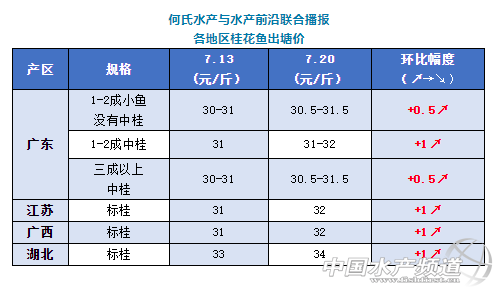 | 中國水產頻道原創報道, 文/圖何氏水產、水產前沿李靜 桂花魚 本周廣東鱖魚價格穩中有升,1-2成小魚沒有中桂開塘30.5-31.5元/斤,比上周升了0.5元/斤;1-2成中桂開塘價31-32元/斤,比上周漲了1元/斤;三成以上中桂30.5-31.5元/斤,比上周升了0.5元/斤。現在存塘的鱖魚有不少是去年7月份左右下的苗,受疫情和行情低迷影響中間有停喂,所以整體餌料系數偏高,養殖成本多在35元/斤以上,甚至超過40元/斤,所以沒有發病的鱖魚養殖戶一般都不賣,這兩天市場好市,塘頭漂亮的魚也能開到32元/斤,也有個別流通商開33元/斤,訂到月底抓的有人開35元/斤。 目前來看各地市場行情都差不多,價格也都有不同幅度的上漲,江蘇地區標桂價格上漲了1元/斤,報價32元/斤。湖北產區價格也上漲了1元/斤,報價34元/斤。廣西桂魚價格本周也上漲了1元/斤,報價32元/斤,整體市場銷量不大。 |