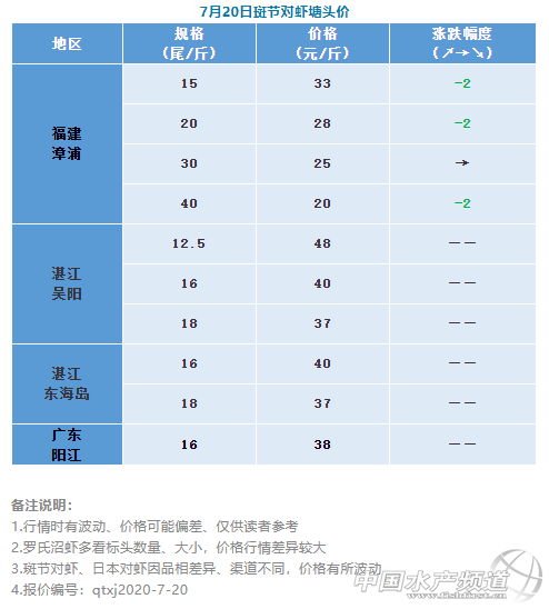 | 中國(guó)水產(chǎn)頻道原創(chuàng)報(bào)道, 羅氏沼蝦價(jià)格波動(dòng),斑節(jié)對(duì)蝦仍然穩(wěn)定,但后市難料 文/水產(chǎn)前沿何鴻浩 一周要聞 1、蝦價(jià)出現(xiàn)混亂跡象 近日,南美白對(duì)蝦價(jià)格混亂,部分市場(chǎng)出現(xiàn)爛市跡象。寧波業(yè)者表示,今日(7月20日),寧波的白蝦市場(chǎng)崩盤,周邊市場(chǎng)開(kāi)出低價(jià)影響蝦,而羅氏沼蝦方面仍然穩(wěn)定,畢竟貨量稍少。只要高郵不跌價(jià),整個(gè)市場(chǎng)的羅蝦價(jià)格還是穩(wěn)得住。 2、羅氏沼蝦少許回落 本周各地羅氏沼蝦價(jià)格均有些許回落。肇慶高要從業(yè)者認(rèn)為,雖然近期羅氏沼蝦價(jià)格較為穩(wěn)定,但這個(gè)行情可能僅能維持一段時(shí)間,兩周后或會(huì)出現(xiàn)較為明顯的價(jià)格波動(dòng)。江蘇從業(yè)者表示,近期價(jià)格穩(wěn)定,但流通商更抓高郵蝦,一方面供應(yīng)穩(wěn)定,一方面性價(jià)比高。 3、斑節(jié)對(duì)蝦價(jià)格穩(wěn)定 本周福建斑節(jié)對(duì)蝦價(jià)格出現(xiàn)波動(dòng)。近期,不同地區(qū)的斑節(jié)對(duì)蝦價(jià)格有較大差異,當(dāng)?shù)貥I(yè)者認(rèn)為是區(qū)域市場(chǎng)對(duì)斑節(jié)蝦消費(fèi)需求不同所導(dǎo)致。有福建業(yè)者認(rèn)為,近期酒店宴席較少,斑節(jié)對(duì)蝦漲價(jià)的契機(jī)和動(dòng)力較少,預(yù)計(jì)后市仍會(huì)保持穩(wěn)定。 |