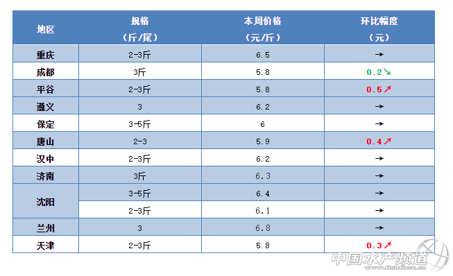 | 中國水產頻道原創(chuàng)報道, 淡水魚養(yǎng)殖戶春天來了,多條魚價漲不停,湖北草魚最高上漲1元/斤! 文/ 水產前沿 鄭鵬飛 一周要聞 魚價全線上漲!最近全國多個品種魚價出現(xiàn)暴漲,其中加州鱸突破20元/斤,一周內最高漲3.5元/斤;珠海海鱸最高飆漲到12元/斤;廣東地區(qū)鱖魚賣到33元/斤;生魚、黃顙魚、叉尾、鯽魚、鳊魚均出現(xiàn)大漲;草魚行情更是幾乎全線上漲! 湖南長沙多個品種魚價快速上漲 據最新了解,目前湖北隨州地區(qū)3斤的草魚塘頭賣到6.8元/斤,一周內上漲1元/斤;洪湖地區(qū)賣到5.6元/斤,上漲0.6元/斤。 今天湖南長沙3斤的草魚塘頭價已經賣到5.5元/斤,上漲0.3元/斤;婁底地區(qū)賣到6.1元/斤;常德地區(qū)3斤以上的賣到5.6-5.7元/斤。 江西新余地區(qū)3斤左右的草魚塘頭賣5.4元/斤,南昌地區(qū)3斤以上的草魚塘頭價已經突破6元/斤。 浙江衢州地區(qū)3斤的草魚塘頭賣6.2元/斤,上漲0.8元/斤;福建南平地區(qū)塘頭賣5.9元/斤,上漲0.6元/斤;河北唐山塘頭賣到5.9元/斤,較之前上漲0.4元/斤;廣東中山地區(qū)3斤起的平均4斤的草魚塘頭賣5.6元/斤,13斤的脆肉鯇塘頭已經賣到10元/斤。 江西新余草魚價格開始上漲 湖北洪湖草魚價格開始上漲 廣東中山草魚價格開始上漲 養(yǎng)殖戶看好后期魚價,投苗比較積極,近期草魚流通明顯加快。目前,北京的水產市場也已經開放,北方市場的需求量逐步加大,接下來魚價能否繼續(xù)漲呢?歡迎留言分享! 行情分析 華南地區(qū) 本周華南地區(qū)草魚塘頭價整體上呈現(xiàn)上漲的勢頭,流通商表示最近魚很好走。受洪水的影響,養(yǎng)殖戶看好后期魚價,近期大家投苗比較積極,草魚苗種和成魚都有上升的跡象。據了解,目前珠三角地區(qū)草魚的存塘魚不足4成,中山地區(qū)3斤起的平均4斤的草魚塘頭賣5.6元/斤,13斤的脆肉鯇塘頭已經賣到10元/斤。本周廣西地區(qū)的草魚行情還是以穩(wěn)定為主,目前桂林地區(qū)3斤的草魚還是繼續(xù)維持在5.8-6元/斤。據了解,目前南寧地區(qū)3斤以上草魚的存塘不到3成,后市魚價還是值得期待。 華中地區(qū) 雖然受到洪水影響局部地區(qū)仍有超低價拋售的現(xiàn)象,但是本周華中地區(qū)的草魚整體行情已經開始呈現(xiàn)明顯的上漲勢頭。 據養(yǎng)殖戶介紹,目前湖北隨州地區(qū)3斤的草魚最新塘頭價賣到6.8元/斤,一周內上漲了1元/斤。最近仙桃還有一些地區(qū)洪水壓力依然很大,泄洪導致不少養(yǎng)殖戶搶著賣魚,加上不少捕撈的魚在市場上低價拋售,近期草魚的市場行情還是很亂。有洪湖地區(qū)養(yǎng)殖戶反饋,目前3斤左右的草魚最新塘頭價賣到5.6元/斤,上漲了0.6元/斤以上。 最近湖南地區(qū)草魚開始有明顯的上漲。據了解,目前長沙地區(qū)小草魚塘頭賣5.2元/斤,長沙市場可以賣到5.8元/斤;今天3斤的草魚塘頭價已經賣到5.5元/斤,上漲0.3元/斤。婁底地區(qū)3斤的草魚塘頭賣到6.1元/斤。常德地區(qū)3斤的草魚塘頭賣5.3-5.4元/斤,3斤以上的賣到5.6-5.7元/斤。了解到,今年湖南草魚存塘同比去年減少了15%以上,后期行情值得期待。 本周江西地區(qū)的草魚塘頭價也是出現(xiàn)了明顯上漲。目前,新余地區(qū)3斤左右的草魚塘頭賣5.4元/斤,南昌地區(qū)3斤以上的草魚塘頭價已經突破6元/斤,養(yǎng)殖戶表示最近兩天草魚塘頭價上漲很明顯。 據了解,目前河南地區(qū)新魚規(guī)格大多在1.5斤左右,大魚存塘很少,最近外省的魚車有明顯增多,大規(guī)格草魚上漲明顯。 華東地區(qū) 本周華東地區(qū)的草魚塘頭價同樣出現(xiàn)了明顯的上漲。從養(yǎng)殖戶了解到,目前浙江衢州地區(qū)3斤的草魚塘頭賣6.2元/斤,較上周上漲了0.8元/斤。福建南平地區(qū)3斤的草魚塘頭賣5.9元/斤,上漲0.6元/斤;三明地區(qū)目前還是基本維持在5.6元/斤;閩江地區(qū)已經賣到5.9元/斤,上漲0.1元/斤。 其他地區(qū) 本周華北地區(qū)草魚塘頭價也開始漲了。據了解,最近北京的水產市場已經放開,對周邊地區(qū)的草魚費需求明顯增加。最近河北唐山地區(qū)3斤的草魚最新塘頭價賣到5.9元/斤,較之前上漲0.4元/斤;天津寶坻3斤的草魚賣到5.8元/斤。 本周東北和西北地區(qū)的草魚行情整體上還是保持穩(wěn)定,暫時沒有出現(xiàn)明顯變化。從養(yǎng)殖戶了解到,目前遼寧沈陽地區(qū)2-3斤的草魚賣6.1-6.2元/斤,暫時沒有出現(xiàn)明顯變化。從流通商了解到,目前甘肅蘭州市場3斤的草魚最新報價維持在6.8元/斤,流通商表示預計很快也要漲。 最近西南地區(qū)的草魚行情出現(xiàn)了小幅下滑。據流通商介紹,最近四川成都地區(qū)3斤以上的草魚塘頭價很多已跌至6元/斤以下,目前三岔湖地區(qū)3斤左右的草魚最新塘頭價賣5.8元/斤,下滑了0.2元/斤。 |