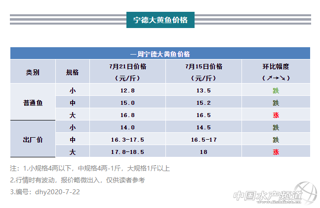| 中國水產頻道原創報道, 大黃魚雄起了,連續漲一個月 文/ 水產前沿 李帥 數據/ 寧德大黃魚協會、霞浦大黃魚協會 一周行情 本周寧德大黃魚價格有漲有跌,其中大規格黃魚仍在上漲,中小規格下跌。但幅度都不大,在連續暴漲3周之后,進入了穩定期。 寧德大黃魚價格 近期要聞 激動!禁漁期東海小黃魚鮮活開賣,浙江率先突破小黃魚全人工養殖技術 每年的5-8月,大部分海域都處于休漁期,但是來自于閩東、浙江一帶的大黃魚在海鮮批發市場,仍然隨處可見。這得益與我國上世紀劉家富等研究員對于大黃魚人工育苗的突破,也正是他們,才使得大黃魚這一瀕臨滅絕的漁獲重獲生機,造就了寧德超過百億產值的產業鏈,數十萬相關就業崗位。 然而同屬于東海四大海產的小黃魚,也是大黃魚的近親,不少消費者發現,至今都不像大黃魚這樣價格親民。并且時常供應不上,原因無他,小黃魚在迄今為止,都沒有突破人工育苗難關,因此也無法養殖,我們能買到的小黃魚,都要靠野生捕撈,這一切都是“看天吃飯”,而且近年來,隨著東海漁業資源的萎縮,小黃魚的價格也是一路水漲船高,2.5兩以上一條的小黃魚,一斤售價不下百元。 7月16日上午,由象山縣人民政府、浙江省農業科學院主辦,象山縣水利和漁業局、象山縣科技局等單位承辦的“象山全人工養殖小黃魚發布會”開始。 會上,省農科院水生生物研究所學科帶頭人樓寶研究員發布了一個能讓萬千吃貨為之顫抖的好消息:他帶領的科研團隊在全國率先攻克了小黃魚人工養殖技術難題,我們在休漁期能吃到鮮活小黃魚的愿望實現了。 野生小黃魚不斷變小,原因讓人擔心 小黃魚是我國最重要海產經濟種類之一,與大黃魚、墨魚、帶魚并稱為“四大海產”。在浙江,小黃魚深受歡迎,是著名的中高端海產,消費需求十分旺盛,東海海域,其捕撈產量曾占主要經濟魚類產量的12.6%。 然而,由于過度捕撈,海洋環境惡化和產卵場的破壞,自上世紀90年代以來,小黃魚呈現低齡化、個體小型化、性成熟提前等特征,資源衰退日益嚴重。目前,大部分捕撈個體已經從過去的每條2-3兩,下降到1兩左右。 “現在,東海大黃魚、墨魚已經沒有漁汛了,小黃魚雖然還有漁汛,但它因為海洋過度捕撈造成的個體應激反應很大,具體表現是小黃魚的個頭在不斷變小。”樓寶說。 生活在海邊的浙江人都知道,過去,小黃魚個頭一般是三四條一斤,也就是說一條小黃魚有2兩多、3兩多重;現在,小黃魚很多都是1兩左右大小的,買一斤居然有10來條。 讓自己越長越小,逃避漁網的追捕,正是這種生物對環境變化的應激反應。 價格一路水漲船高,養殖大黃魚幼苗屢屢冒充 正當小黃魚資源逐漸衰退的時候,2014年5月一次偶然的機會,樓寶在象山石浦港三門口海域養殖區網箱內發現疑似小黃魚苗種5000余尾,經生物學鑒定確認為小黃魚。 這些珍貴幼苗成為星星火種,從次,小黃魚人工養殖首次拉開了序幕。 幾年中,科研團隊開展了艱苦的技術攻關,從野生魚馴養、親本魚培育、人工催產到受精卵孵化、苗種生產、成魚養殖等全流程,進行了大量的實驗研究,實現了小黃魚全人工養殖。 而彼時,在舟山、象山一帶,因為資源稀缺,小黃魚價格也水漲船高,這兩年的行情是,約1兩/條的賣20元/斤,1.5兩/條的賣40-50元/斤,2兩/條的賣70-80元/斤,2.5兩以上/條的賣100元/斤。 “因為小黃魚價格高,一些商販看到其中的商機,就用養殖大黃魚幼魚來冒充野生小黃魚,因為養殖大黃魚價格比較便宜,這樣可以謀取更高的利潤。” 樓寶說,市場上,用小的養殖大黃魚冒充大的野生小黃魚的情況,是常有發生的。 全人工養殖小黃魚價格親民,今夏走向市場 6年的科技攻關,人工養殖小黃魚在今年正式實現了商品化。 小黃魚經6個月的人工養殖,平均體重可達60g左右,第二年休漁期可達100g以上,第三年休漁期達到150g左右。 為了補充市場上的小黃魚商品資源,減少海洋偷捕,也為了豐富休漁期市民的餐桌,去年,樓寶團隊培育出第代苗種100余萬尾,已經下海進行網箱養殖。 今年小黃魚將正式實現人工養殖的商品化,這在全國是首創。 研究團隊和寧波象山的水產養殖戶合作,在象山港和石浦港進行了小黃魚的海水網箱養殖,養殖網箱投放的海水深度從7-20多米不等。 目前,小黃魚科研團隊已申請涉及小黃魚精子冷凍、人工催產、人工養殖等方面的發明專利17件,其中授權10件,包括國際專利2件。下一步,科研團隊將繼續深入開展小黃魚全基因組解析,選育出更加抗病的苗種,并開展小黃魚離島深海網箱養殖,以及室內循環水工廠化養殖。 樓寶說:“今天,我們選擇在休漁期將第一批人工養殖的小黃魚推向市場,以豐富市民餐桌,目前的評估市場價是,一兩一條的售價約為35-45元/斤,二兩一條的售價約為45-55元/斤,希望大家能夠喜歡。” 人工養殖的小黃魚味道怎么樣? |