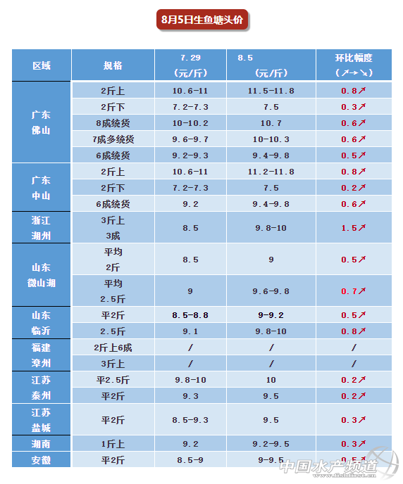 | 中國水產頻道原創報道, 生魚再傳好消息,大魚11.8元/斤...但養戶要緊急注意:12號跌價? 文/ 水產前沿 林貞武 一天一個價,本周最高再漲1.5元/斤!這幾天生魚繼續漲價了,2斤上大魚(老魚)出到11.8元/斤,新魚大魚11.5元/斤,中魚7.5元/斤!時間回到上個星期,筆者曾在文章中提到,本月5號左右,生魚將持續漲價,果不其然本周生魚各大產區價格全面飄紅,今早有魚中表示中山2斤上9成多給到11元/斤了! 據了解,今天有魚中訂了塘9月初出的期貨,定金5萬,目前魚的規格為2斤上7成,統貨價出到11元/斤。也有魚中甚至是預訂了今年頭批生魚,發價為8元/斤統貨,業界對生魚后續行情一直看好。 養殖戶惜售,仍有塌定發生 按道理說,目前這個價養殖戶已經有部分利潤可以賺了,但是據了解,目前養殖戶普遍存在惜售心理,市場缺大魚,大家出魚的積極性不高!浙江的流通商反映其訂的一塘魚之前是9.3元/斤,后面養殖戶想塌定,經商量之后以9.7元/斤的價格重新定下。養殖戶表示早兩天是塌定的高峰,有塘主塌定完直接暫時不賣等著,養殖戶手里魚也不多,要求比較高比較難成交,業界表示近期漲價市場會比前兩波時間長點,目前廣東的魚中近期給的定金都比較高,下定0.8元/斤,而且基本上幾天就出魚,減少被養殖戶塌定的風險。 市場缺大魚,打架搶魚,批發價達12.5元/斤 據流通上反饋這幾天山東產區基本不出魚,江蘇鹽城,江西,福建水車很多聚集到浙江拉貨,但是近期湖州地區天氣比較炎熱,出魚有一定的風險,養殖戶出得少,塘頭都開始搶魚啦!浙江魚價本周暴漲了1.5元/斤,而廣東氣溫相對比較涼快,出魚量有所增加,基本上日流通超200萬斤,但是目前市場大魚的存塘量并不多,養殖戶并不急著出,賣跌不賣漲心理嚴重,很難新訂到魚。總體來看大魚是非常緊缺,浙江的大魚塘頭價也達到11元/斤左右,廣東11.8元/斤,蕭山檔口陸老板反饋目前小黑魚的進價已經漲至8元/斤,大魚批發價為12元/斤了,湖北檔口鄧老板表示近期生魚的需求量大了,老魚基本售到尾罄,新魚大的跟不上來,導致大魚緊缺,價格猛漲,現在批發價至少12元/斤,檔口王老板也表示現在市場大魚緊缺,現在西安的批發價已經發到12.3-12.5元,后續可能還會漲! 廣大養殖戶注意啦,12號生魚可能會跌價 “應該5-6天后會跌價,早段時間比較熱,出魚運輸死魚多,流通商對批發市場提高了價,現在雨水來了,流通上的價還是原來的額高價位,也沒死亡,留給流通商的空間還是很大”業內資深人士說道。筆者對此也和廣東的魚中打聽了下,消息暫時是得到了初步確定,華老板表示魚價是應該要準備跌啦,預計在12號左右,但是也表示跌幾天是正常的,根據市場情況來看,魚價可以說是是螺旋上漲的變化趨勢。 市場嚴重缺苗,黑芝麻飆至1000元/萬尾 這段時間由于天氣原因,廣東很多大廠也停針不打苗了,市場嚴重缺苗!一苗場負責人告訴筆者受高溫影響魚苗孵化率較低,公魚運輸損失大,暫時先不打了,可能過多幾天天氣涼快點再決定要不要大。近期生魚商品魚價格上漲,今年的尾批苗被碰上了天了,現在廣東黑芝麻已經到達了800-1000元/萬尾了,比上周上漲了250元,養殖戶普遍看好生魚后市,水漲船高,苗價格一路上升,很多排隊都排不到,有錢買不到,朝魚更是找不到!800口斤的魚苗價格為8毛/尾,再大一點的差不多要1元/尾了,廣東雜交生魚越來越受養殖市場青睞,據了解,省外有部分養殖戶有在嘗試養殖廣東苗。浙江湖州的魚苗一斤賣到20元了。高價入市,風險也大,只能說投資有風險,養殖需謹慎,養殖戶需要要有自己的判斷。 各地魚價全線飄紅 廣東本周上漲0.8元/斤。近段時間魚價都是螺旋上漲,養殖戶惜售,魚中四處找魚,但是價格比較亂也不敢多訂,這幾天廣東天氣涼快些,流通商出魚多了點。目前2斤上11.2-11.8元/斤,2斤下7.5元/斤,2斤上7成魚10.2元/斤左右,2斤上6成9.6-9.8元/斤,魚身胖點的為9.4元/斤。 浙江湖州本周上漲1.5元/斤。當地市場存魚較少,主要在菱湖一帶,近期很多魚車走湖州拉魚,當地魚價現在3斤上2-3成魚價格已經開到10元/斤。 山東本周上漲0.7元/斤。近些時間,山東的生魚一直處于穩步上漲的階段,本地魚也不是多了,當地養殖戶一直是不出魚,加上近期雨水天氣出魚更少,目前臨沂平均2斤9-9.2元/斤,微山價格為9元/斤,日照平2.5斤的裝車價10元/斤。 江蘇本周上漲0.3元/斤。當地前兩天魚價稍微有所上漲,目前平2.5斤10元/斤,主要看身材個頭,平2斤9.3-9.5元/斤。 安徽本周上漲0.5元/斤。存塘的沒有多少,另養殖戶出魚的欲望不怎么高,平2斤最高發9.5元/斤。下表為目前的各地的具體魚價信息: |