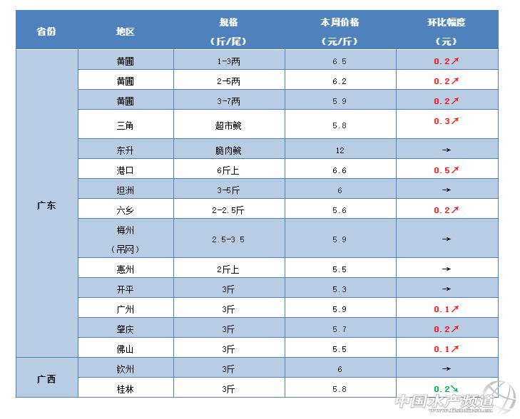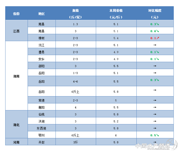 | 中國水產(chǎn)頻道原創(chuàng)報(bào)道, 多地草魚行情出現(xiàn)反彈跡象,華東大草魚批發(fā)價(jià)賣到9元/斤! 文/ 水產(chǎn)前沿 鄭鵬飛 一周要聞 華南地區(qū)的草魚行情繼續(xù)走高。目前廣東肇慶地區(qū)3斤的草魚塘頭賣5.7元/斤,上漲0.2元/斤;中山地區(qū)草魚苗種繼續(xù)上漲,1-3兩最新塘頭價(jià)賣到6.5元/斤,上漲0.2元/斤;超市鯇一度賣到5.8元/斤。業(yè)內(nèi)人士表示最近大草魚比較缺,有一定的上升空間。 華南草魚行情持續(xù)看漲 梅州地區(qū)開始缺大草魚,繼續(xù)有上升空間 華中地區(qū)的繼續(xù)穩(wěn)中有跌,局部地區(qū)有反彈跡象。了解到,目前江西樟樹地區(qū)3斤的草魚塘頭賣5.4元/斤,較上周有0.1元/斤的回升。 華東地區(qū)的草魚行情有反彈勢頭。目前江蘇徐州地區(qū)3斤的草魚最新塘頭價(jià)賣到5.6元/斤,上漲0.2元/斤;淮安地區(qū)3斤的草魚塘頭賣5.6-5.8元/斤,昨天蘇州地區(qū)大草魚批發(fā)價(jià)賣到9元/斤。同時(shí),福建地區(qū)的草魚下滑幅度放緩。目前福建南平地區(qū)3斤的草魚塘頭賣5.5元/斤,繼續(xù)下滑0.2元/斤;三明地區(qū)賣5.7元/斤,下滑0.1元/斤。 華東地區(qū)草魚行情出現(xiàn)上漲勢頭 華北地區(qū)的草魚行情上漲勢頭明顯。從養(yǎng)殖戶了解到,河北唐山地區(qū)2.5斤以上的草魚最新塘頭價(jià)賣6元/斤,上漲0.2元/斤。目前山東萊州部分地區(qū)3斤以上的草魚最新塘頭價(jià)賣到了7元/斤。 西北地區(qū)的草魚行情繼續(xù)有小幅回升。目前甘肅蘭州市場3斤左右的草魚最新報(bào)價(jià)7.3元/斤,最高上漲0.2元/斤。 西南地區(qū)的草魚行情也是開始出現(xiàn)小幅反彈。目前重慶地區(qū)2-3斤的草魚最新塘頭價(jià)賣到6.5元/斤,最高上漲0.2元/斤。 行情分析 華南地區(qū) 本周華南地區(qū)的草魚行情繼續(xù)保持穩(wěn)中有升的態(tài)勢。據(jù)了解,目前廣東肇慶地區(qū)3斤的草魚塘頭賣5.7元/斤,較之前上漲0.2元/斤;梅州地區(qū)3斤的草魚塘頭賣5.8-5.9元/斤,3.5斤以上的賣6元/斤,業(yè)內(nèi)人士表示目前大草魚比較缺;中山地區(qū)3斤的草魚塘頭賣5.9-6元/斤,超市鯇一度賣到5.8元/斤,相比之前繼續(xù)有所上漲。目前廣西桂林地區(qū)3斤的草魚最新塘頭價(jià)賣5.8元/斤,較之前有小幅震蕩,不過目前行情還是保持相對(duì)穩(wěn)定;武宣地區(qū)繼續(xù)維持在6元/斤。 華中地區(qū) 本周華中地區(qū)的草魚整體行情依然有下滑的趨勢。了解到,目前湖南常德3斤的草魚塘頭賣5元/斤,長沙地區(qū)塘頭賣5.5元/斤,基本維持上周水平。湖北武漢地區(qū)3斤的草魚塘頭賣5.8-6元/斤,部分地區(qū)繼續(xù)有0.1-0.2元/斤的小幅回落;洪湖地區(qū)3斤的草魚塘頭賣5.2元/斤,基本保持穩(wěn)定。目前江西樟樹地區(qū)3斤的草魚塘頭賣5.4元/斤,較上周有0.1元/斤的反彈;了解到目前南昌地區(qū)3斤的草魚最新塘頭價(jià)賣5.1元/斤,相比之前最高下滑0.6元/斤。 華東地區(qū) 本周華東地區(qū)的草魚行情有漲有跌。據(jù)了解,最近江蘇地區(qū)的草魚行情又反彈勢頭,目前徐州地區(qū)3斤的草魚最新塘頭價(jià)賣到5.6元/斤,上漲0.2元/斤。有養(yǎng)殖戶表示最近草魚行情有上升趨勢,目前淮安地區(qū)3斤的草魚塘頭賣5.6-5.8元/斤,昨天蘇州地區(qū)大草魚批發(fā)價(jià)賣到9元/斤。最近福建地區(qū)的草魚塘頭價(jià)繼續(xù)有所下滑,不過相比之前下滑幅度減小。從養(yǎng)殖戶了解到,目前福建閩江地區(qū)草魚下滑0.1-0.2元/斤,3斤的草魚塘頭賣5.8-5.9元/斤;南平地區(qū)賣5.5元/斤,較之前下滑0.2元/斤;三明地區(qū)3斤的草魚塘頭賣5.7元/斤,較上周下滑0.1元/斤。本周浙江地區(qū)的草魚塘頭價(jià)基本保持穩(wěn)定,目前衢州地區(qū)3斤的草魚塘頭賣5.8元/斤,繼續(xù)有0.1元/斤的下滑。 其他地區(qū) 華北地區(qū):最近華北地區(qū)的草魚行情出現(xiàn)明顯上漲勢頭。從養(yǎng)殖戶了解到,目前河北唐山地區(qū)2.5斤以上的草魚最新塘頭價(jià)賣5.9-6元/斤,較上周上漲0.2元/斤。養(yǎng)殖戶表示近期草魚行情還是繼續(xù)有上漲的趨勢,不過鯉魚最近行情就不太好,塘頭價(jià)只賣到4.5元/斤。最近山東地區(qū)的草魚也是有所上漲,目前萊州部分地區(qū)3斤以上的草魚最新塘頭價(jià)賣到了7元/斤。 東北地區(qū):據(jù)了解,最近東北地區(qū)的鯽魚行情不錯(cuò),但是草魚最新塘頭價(jià)還是有所下滑。據(jù)養(yǎng)殖戶介紹,目前遼寧沈陽地區(qū)3斤的草魚塘頭賣5.9-6元/斤,相比上周繼續(xù)有0.1元/斤的下滑。 西北地區(qū):本周西北地區(qū)的草魚行情繼續(xù)有小幅回升。從流通商了解到,目前甘肅蘭州市場3斤左右的草魚最新報(bào)價(jià)7.3元/斤,最高上漲0.2元/斤。 西南地區(qū):本周西南地區(qū)的草魚行情也是開始出現(xiàn)小幅反彈。據(jù)了解,目前重慶地區(qū)2-3斤的草魚最新塘頭價(jià)賣到6.5元/斤,最高上漲0.2元/斤;四川成都地區(qū)3斤的草魚最新報(bào)價(jià)6元/斤,廣元地區(qū)塘頭賣6.5元/斤,基本保持穩(wěn)定。 |
