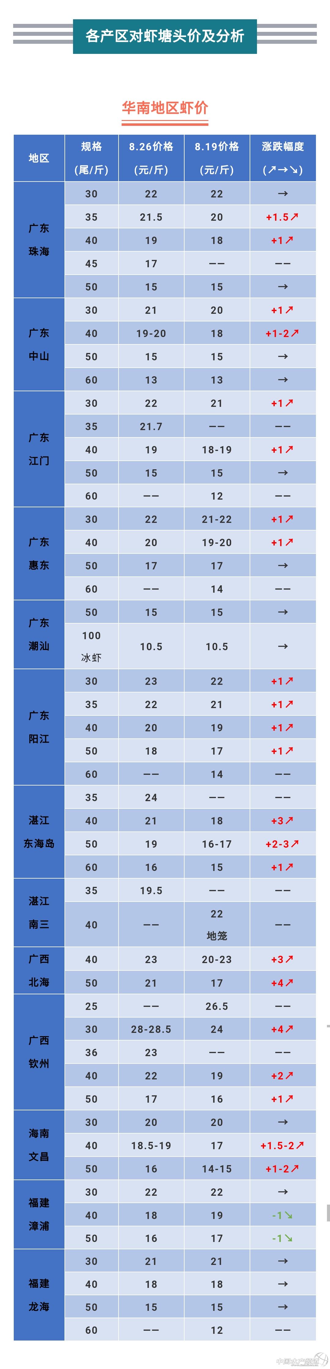 | 中國水產頻道原創報道, 擋不住漲價!養殖戶表示現在投苗都加速了,就等著收蝦 文/水產前沿 植銀素 本周要聞與行情總結 最近珠海蝦價節節攀升,養殖戶賣蝦熱情也高漲。今天,筆者了解到珠海一養殖戶出蝦30頭成交價達到22元/斤。該養殖戶表示,今天抓的這口塘是37張塘中的第14張塘,養殖118天36頭,平均畝產1000斤。“目前為止出完第14口塘已全部收回本輪投資成本,剩下23口塘按目前價位估計能盈利三百來萬元。”可見,近期蝦價上漲讓養殖戶辛苦堅持多年得到回報! 目前珠三角40頭均價19元/斤,30頭在21-22元/斤。不過,也有流通商表示近兩天蝦價稍有降溫,外地車不如之前多了,有業者推測系部分市場野生海鮮上市,爭奪了白蝦消費份額;最近幾天廣州市場表現也較為反復,不過今天市場比昨天較佳,對塘頭價格影響暫時不明顯。也有水產檔主表示近一個月蝦價上漲過猛,消費者普遍接受度有限。 粵東地區本周蝦價變動不大,惠東地區目前活蝦不多,蝦價再漲也是有價無市;潮汕地區蝦價維穩,養殖戶表示今年土塘養蝦效益比較低,部分地區養殖氛圍不佳。 粵西近兩周蝦價上漲較猛,活蝦供應也不多,很多塘口重新投苗,或者標粗后分塘,陽江地區普遍上漲1元/斤,湛江40頭蝦最高已漲至21元/斤。東海島高位池晚造蝦投苗已經逐漸開始,投苗積極性較強。 廣西地區今天蝦價對比昨天再漲,對比上周蝦價上漲幅度達到4元/斤,和廣東地區情況不同,廣西目前活蝦,尤其是大規格蝦更加緊張,有養殖戶表示30頭最高給到28.5元/斤,對比昨天已經再漲2元!而且目前廣西養殖戶一部分出蝦積極,一部分還是抱有惜售心理。 江蘇鹽城在這兩天蝦價有所下滑,普遍下降1元左右,浙江蕭山蝦價也下降1-2元/斤。鹽城養殖戶表示近期小規格上市較多,而且白便問題嚴重、偷死等,問題蝦上市可能會影響蝦價下滑。如東外塘目前還未有大量上市,預計還有10天左右。浙江流通商表示目前40頭已經19元/斤,如果走長途能加1-2元/斤,海貨對白蝦沖擊較大。 山東地區工廠化存量不大,價格沒有大的變化,目前以汪子蝦為主。但是近期受臺風巴威影響,山東、遼寧多地暴雨不斷,對外塘蝦養殖影響巨大,各地蝦價差別也大,主要以質量定價。遼寧、天津地區部分規格蝦價格對比上周有上漲。四川地區蝦價對比上周維穩,羅氏沼蝦開始上市,分薄了白蝦消費。 |