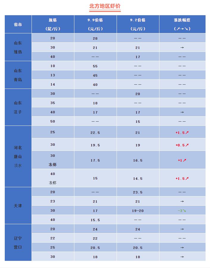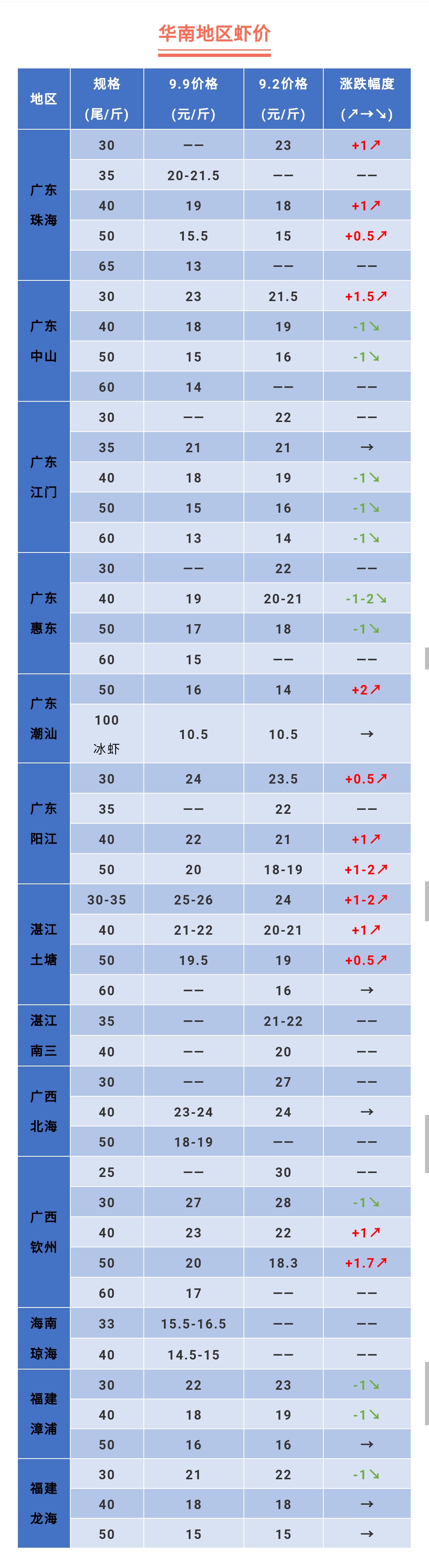 | 中國水產頻道原創報道, 白蝦也遇“白露劫”,廣東局部地區蝦價回落,粵西繼續沖高將維穩到國慶?山東大蝦賣出50元/斤高價! 文/水產前沿 植銀素 本周要聞與行情總結 本周珠三角地區除了珠海市場表現平穩意外,江門、中山都出現了不同程度的下滑。當地養殖戶表示近幾天雨水較多,恰逢白露,蝦子發病比較多,有出現腸胃炎等,部分塘頭中規格蝦抗病力差,被迫出蝦。中山有養殖戶40頭病蝦迫收僅17元/斤,創了近兩周低價,但是也有養殖戶表示,問題不多的蝦出售仍有18-19元/斤,整體還算穩定。珠三角地區大蝦規格稀缺,對比上周再漲1-2元/斤,中山30頭賣到23元/斤,預計后期也將維穩。惠東地區本周價格回落較多,在2元左右,養殖戶表示現在大蝦不多,同樣也有雨水天氣造成養殖困難,估計回落后要等到雙節前才會重新上漲,漲價空間應該不小。 與珠三角價格走勢相反,本周陽江蝦價再沖高峰,40頭去到22元/斤,幾乎是全國來說的高價!當地業者表示活蝦供應減少,第二造蝦存塘規格多在100頭左右,后期隨著假日到來,估計還會再漲,但是養殖戶要做好病害防控和出蝦計劃,避免集中出蝦。湛江活蝦貨源也漸少,養殖戶比較惜售,估計到月底會有出蝦小高峰,屆時蝦價也會頻繁波動;目前來說整體行情向好,30-35頭的價格在25-26之間,在全國水品來說也屬于高價! 廣西地區目前成品蝦非常少,北海地區交易極少,價格暫無明顯變動;欽州養殖戶張老板表示現在大蝦很少,外地車也少了,多轉去有大蝦的產區(山東、天津等)抓蝦,目前活蝦主要供應本地市場(如南寧),但是還是因為貨源稀少,價格對比上周又再上漲,40頭已經賣到23元/斤。 海南地區目前白蝦交易較少,由于上半年蝦價極低,不少人轉養斑節對蝦,現在白蝦價格上漲后,養殖戶開始重新放苗,目前淡水蝦40頭在15元/斤左右,海水蝦預計在17元/斤左右。 福建地區蝦價對比上周又再回落,基本維穩。整體來說,福建地區在下半年的表現不盡如人意,先是持續高溫,近期又降水頻繁,水質變化較大,蝦養殖問題也多,因此蝦價缺少上漲動力,甚至因為病蝦上市而下滑。養殖戶表示,近一周出蝦的戶也較多,市場需求卻一般般,后期預計還是維穩,帶小幅波動。但是當地存塘量并不多,轉養斑節蝦的養殖戶也不少。 江浙地區目前鹽城、如東外塘都在出蝦,鹽城片區較多,如東外塘則剛開始不久,規格都在40-60頭之間,價格一般在15-20元,變化不大。后期隨著土塘蝦增多,或許會有浮動,但是價格也與市場需求有關。整體來說,目前的表現還算讓人滿意的。 山東地區目前工廠化出蝦較少,存池規格不大,還未到出蝦時候。青島地區外塘有養殖戶10頭規格的蝦賣到50元的高價,他表示一頭蝦價格在5元左右,大蝦供應天津或者北京市場。 天津地區蝦價對比上周有所回落,當地養殖戶表示雖然出蝦塘口較多,但是整體養殖產量不大,供求關系還算穩定,不會集中出蝦導致落價。 河北唐山地區今年外塘養殖也不算理想,價格對比上周有所上漲,目前出蝦塘口漸多,后期臨近國慶佳節,預計行情不會太差。 |