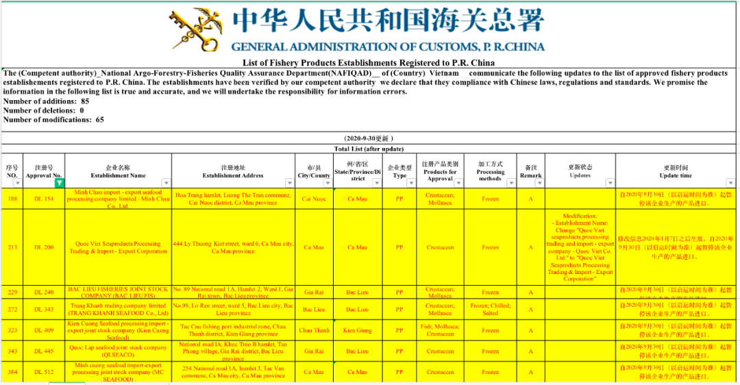 文/ 海鮮指南(seafood-guide)沈基文 這11家企業名單里,有冷凍巴沙魚、冷凍白蝦以及越南的其他部分蝦類生產商。 截至海鮮指南發稿,被暫停進口企業還未作出回應。 今年前9月越南農林水產品貿易順差72.5億美元 據越南農業與農村發展部的消息,2020年前9個月,越南農林水產品出口總額達近528億美元,其中出口額達300.5億美元,同比增長1.6%,進口額達228億美元,下降2.2%。由此,今年前9月越南農林水產品貿易順差72.5億美元,同比增長15.7%。 2020年9月,越南農林水產品出口額達38億美元,較2020年8月增長3.8%,出口額為9個月以來單月最高水平。其中主要農產品出口價值達逾16億美元,林產品出口額超過12億美元,水產品出口額達8.2億美元,畜產品達3400萬美元等。 前9個月,越南農林水產品出口金額累計達300.5億美元,同比增長1.6%。具體是,主要農產品出口額達近137億美元,下降1.1%;畜產品出口額達2.31億美元,同比下降19.7%;水產品出口額達逾60億美元,下降3%;林產品出口額達91億美元,同比增長13.2%。 年初至今,盡管許多產品出口額有所下降,但大米、蔬菜、木薯、蝦類、木材及木制品等產品出口額仍保持增長態勢。 美國繼續成為越南最大出口市場,出口額達逾75億美元,同比增長17.3%,占市場份額的近25%。中國是越南第二大出口市場,出口額達72.4億美元,同比下降7.7%,占市場份額的24.1%。東盟是越南第三大出口市場,出口額達29.3億美元,同比增長4.6%,占市場份額的9.75%,其次分別是歐盟和日本等市場。 農業與農村發展部表示,農產品銷售,尤其是農產品出口活動將繼續向好但仍遇到許多困難。因此,為了實現全年增長、出口目標,各個領域、各個部門要集中展開防災措施,促進生產活動,加大市場開拓力度等。 海關總署文件下載鏈接: |