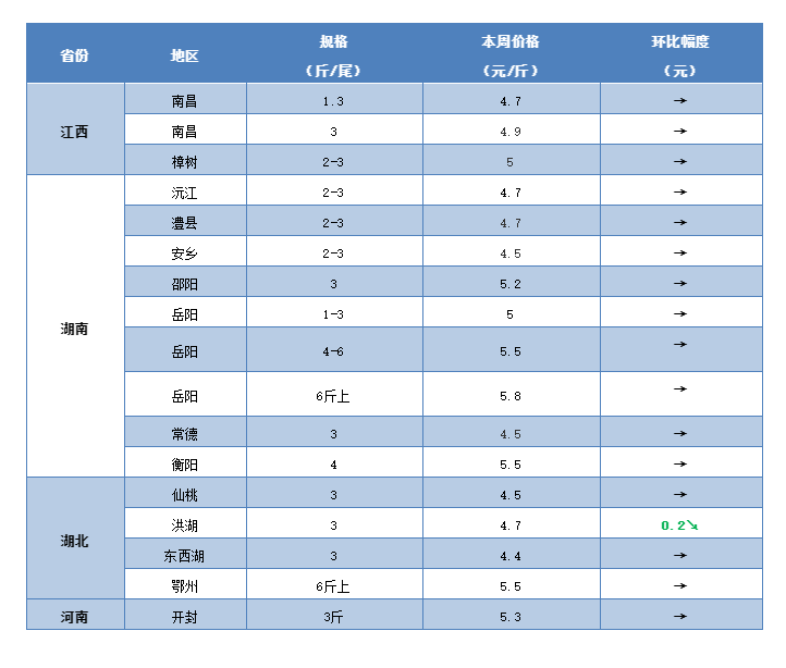 | 中國水產頻道原創(chuàng)報道, 江西小草魚去年賣3.6元/斤,今年賣4.7元/斤,昨天長沙市場賣到5.3-5.5元/斤,國慶節(jié)脆肉鯇銷售火爆,或將拉動大草魚上漲,四川廣元地區(qū)3斤的草魚塘頭價賣到6.3元/斤,出現(xiàn)0.3元/斤的反彈。冷空氣大舉南下,全國多地開始降雪,草魚能否迎來轉機? 文/ 水產前沿 鄭鵬飛 一周要聞 拉尼娜剛剛冒頭,我國就遭遇近40年來同期最冷十一國慶節(jié)!強冷空氣大舉南下,全國各地凍出多年同期的新高度。超過了1981年記錄的:10月9日前后,一股強大的冷空氣席卷南方,南京逼近5度,武漢、長沙跌破10度,廣州、深圳跌破15度,為有氣象紀錄以來10月上旬的最強冷空氣。 那么 2020年冬季會有超級寒潮嗎?目前尚不能確定,但是有消息稱,或者今年可能還2008年還要寒冷。 據(jù)業(yè)內人士稱,寒冷尤其是極寒天氣有利于魚價大宗淡水魚如草魚價格提升,原因:天冷一是主要加大了抓魚難度,二是下雪后道路受阻,市場供應跟不上,第三就是天寒地凍,居民選擇吃火鍋、烤魚、水煮魚等菜品將會增多。如果今冬十分寒冷的話,將有利于魚價的提振。行情好魚價漲就是好事,不過養(yǎng)殖戶和流通商抓魚和運輸就會辛苦一些了。 本周華南大部分地區(qū)草魚塘頭價保持相對穩(wěn)定,最近脆肉鯇銷售火爆,或將拉動大草魚行情。目前,廣東中山地區(qū)3斤的草魚最新塘頭價賣5.4元/斤,流通商表示目前行情還不錯。 江西草魚行情趨穩(wěn) 湖南草魚行情出現(xiàn)好轉 華中、華東、華北、東北以及西北地區(qū)的草魚行情繼續(xù)明顯下滑,不過比往年的行情要好,短期內應該不會有太大波動。主要湖北地區(qū)下滑明顯,目前武漢白沙洲市場3-6斤的草魚最新批發(fā)價在5.8-6.5元/斤之間;隨州地區(qū)3斤的草魚最新塘頭價賣4元/斤,繼上周跌了0.6元/斤之后,本周再次下滑0.4元/斤;洪湖地區(qū)最新塘頭價賣4.7元/斤,下滑0.3元/斤。目前,江西樟樹地區(qū)2斤左右的可以賣到4.6-4.7元/斤,而往年這個時候都只能賣到3.6元/斤左右。養(yǎng)殖戶表示,接下來草魚行情應該不會大跌了。最近湖南長沙地區(qū)草魚行情有所好轉,昨天長沙市場小草魚賣到5.3-5.5元/斤,7兩的鯽魚賣到6.5元/斤,大頭賣6.8元/斤。 西南地區(qū)的草魚行情整體保持穩(wěn)定,局部有小幅反彈。據(jù)流通商介紹,目前四川成都、德陽、綿陽等地區(qū)的草魚報價還是維持在6元/斤左右,沒有出現(xiàn)太大波動;廣元地區(qū)最新塘頭價賣到6.3元/斤,有0.3元/斤的上漲。 養(yǎng)殖戶看好后期行情 受拉尼娜氣候影響,今年的冷空氣來的特別早,最近全國已經(jīng)有多地開始出現(xiàn)降雪。隨著節(jié)后交通壓力的緩解和冷空氣的影響,未來草魚行情能否出現(xiàn)反彈呢?歡迎留言分享? 一周行情 華南地區(qū) 本周華南大部分地區(qū)草魚塘頭價繼續(xù)保持穩(wěn)定,局部市場有小幅下滑。國慶期間脆肉鯇銷售火爆,或將拉動后期大草魚行情走勢。目前統(tǒng)級魚的行情還是相對穩(wěn)定,短期內應該不會有太大波動。 中山:本周廣東中山地區(qū)的草魚行情保持穩(wěn)定,塘頭價基本維持上周水平。目前中山地區(qū)3斤的草魚最新塘頭價賣5.4元/斤,據(jù)流通表示目前行情還可以。 江門:據(jù)養(yǎng)殖戶介紹,最近江門地區(qū)的草魚行情還是非常爛市,目前塘頭價暫時沒有出現(xiàn)太大波動。 肇慶:本周肇慶地區(qū)的草魚行情繼續(xù)有小幅下滑。從養(yǎng)殖戶了解到,目前3斤的草魚最新塘頭價賣5.5元/斤,下滑0.1元/斤。養(yǎng)殖戶表示,由于節(jié)日期間消費者更傾向于中高端品種,所以近期草魚是比較難賣,行情下滑也是正常的。 佛山:本周佛山地區(qū)草魚塘頭價沒有出現(xiàn)明顯變化。目前南海九江地區(qū)統(tǒng)級魚的最新塘頭價繼續(xù)穩(wěn)定在6.5元/斤,據(jù)養(yǎng)殖戶表示行情比較穩(wěn)定。 廣西:本周廣西地區(qū)草魚行情比較疲軟。目前,桂林地區(qū)3斤的草魚最新塘頭價繼續(xù)維持在5.3元/斤,養(yǎng)殖戶表示行情還是很差。目前欽州地區(qū)3斤的草魚最新塘頭價賣6元/斤,保持穩(wěn)定;武宣地區(qū)3斤的草魚最新塘頭價賣5.8元/斤,較之前也是有0.2元/斤的下滑。 華中地區(qū) 本周華中多個地區(qū)的草魚塘頭價再次出現(xiàn)較大幅度的下滑。不過相比往年來說,今年的行情還算比較穩(wěn)定的,接下來上漲可能性不大,但應該也不會有大幅下滑。 江西:本周江西地區(qū)的草魚行情保持相對穩(wěn)定。從養(yǎng)殖戶了解到,目前宜春、樟樹等地區(qū)3斤的草魚塘頭價繼續(xù)維持在5元/斤左右;樟樹地區(qū)2斤左右的可以賣到4.6-4.7元/斤。養(yǎng)殖戶表示,往年這個時候都只能賣到3.6元/斤左右,看來接下來草魚行情應該不會有大跌了。 湖南:本周湖南地區(qū)的草魚行情出現(xiàn)相比之前有所好轉。據(jù)養(yǎng)殖戶介紹,目前邵陽地區(qū)3斤的草魚最新塘頭價賣5.2元/斤;長沙地區(qū)草魚行情有所好轉,有養(yǎng)殖戶昨天往長沙市場發(fā)了一車草魚,小草魚可以賣到5.3-5.5元/斤,7兩的鯽魚賣到6.5元/斤,大頭賣6.8元/斤。養(yǎng)殖戶表示,目前草魚行情已經(jīng)不熊了,但是下半年上漲可能性還是不大,每年10月之后草魚價格能不跌就不錯了。 湖北:本周湖北多地草魚行情再次出現(xiàn)大幅下滑。武漢白沙洲市場3-6斤的草魚最新報價5.8-6.5元/斤;隨州地區(qū)3斤的草