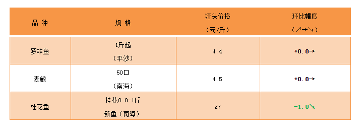 | 中國水產(chǎn)頻道原創(chuàng)報道, 文/ 水產(chǎn)前沿 何鴻浩 其他品種:鱖魚回落,鯪魚價高位運行 國慶尾聲,水產(chǎn)品消費變冷,魚蝦價應聲下跌,包括鱖魚流通量在逐漸回落,魚價出現(xiàn)下跌,本周較上周跌了1元/斤。羅非魚走量以工廠為主,故受節(jié)假日影響不大,目前魚價保持平穩(wěn)。飼料魚鯪魚需求仍然旺盛,價格保持高位運行。 |