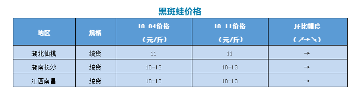 | 中國水產頻道原創報道, 最高又跌0.9元/斤,牛蛙繼續下跌!黑斑蛙價格持穩 文/水產前沿陳曉慶 一周要聞 9月30日,國家林業和草原局發布《關于規范禁食野生動物分類管理范圍的通知》,對64種在養禁食野生動物確定了分類管理范圍。寒露林蛙將禁止以食用為目的的養殖活動,除適量保留種源等特殊情形外,引導養殖戶停止養殖。中華蟾蜍、黑眶蟾蜍、齒緣龜、鋸緣攝龜、緬甸陸龜禁止以食用為目的的養殖活動,允許用于藥用、展示、科研等非食用性目的的養殖。 虎紋蛙不在名錄之內,虎紋蛙管理劃分還在進一步調整中,這是否也意味著泰國虎紋蛙還有望解禁? 據了解,目前大部分泰蛙養殖戶已經更改養殖品種如牛蛙等,但相關的苗種資源、養殖技術都比較匱乏,還得耗費大量的時間和金錢繼續摸索,也有一些養殖戶資金鏈斷裂,選擇棄養去打工,只剩下一些養殖戶還在苦苦等待國家政策的調整,希望能有一個好的結果。 牛蛙行情 今日牛蛙報價(廠價):5-9兩/5-8兩報價6.2元/斤,4-8兩/4-7兩報價6/斤,3-7兩/3-6兩/3-5兩報價5.8元/斤,2-5兩/2-4兩報價5.6元/斤。以上價格僅供參考,不同地區價格有所差異。 本周牛蛙價格繼續下跌。從周二開始,牛蛙廠價繼續下調0.5元/斤,之后就一直保持穩定,目前5-9兩大蛙報價6.2元/斤。而現金價格方面,廣州3-6兩蛙現金價只有5.6元/斤,相比廠價要低2-3毛。目前市場價格低,現金抓蛙困難,很多養殖戶都不愿意出。 國慶節之后消費回落,牛蛙訂單量都有所減少。目前長沙市場批發價格也只有6-6.5元/斤,岳陽市場也只賣到6元/斤。 目前正是轉季的時期,氣溫變化大牛蛙容易生病,有些抓蛙的到塘頭看到紅腿就會放空車,以期蛙價的上漲。 黑斑蛙行情 本周黑斑蛙行情繼續穩定,國慶后氣溫降低,多股冷空氣又將襲來,黑斑蛙捕捉難度加大,供應量減少,后市價格有望上漲,但還是得看消費市場的情況而定。 |