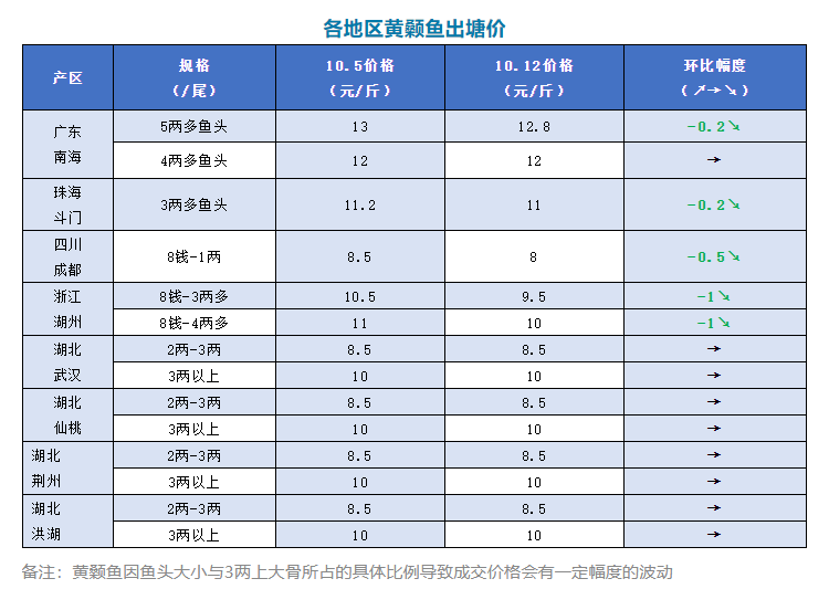 | 中國水產(chǎn)頻道原創(chuàng)報道, 文/圖何氏水產(chǎn)、水產(chǎn)前沿李靜 黃顙魚 本周廣東黃顙魚價格保持穩(wěn)定,5兩多魚頭報價12.8元/斤,比上周下跌了0.2元/斤;4兩多魚頭報價12元/斤,跟上周一樣;3兩多魚頭11元/斤,比上周下跌了0.2元/斤。目前各地黃顙魚都在掉價,主要原因是各地養(yǎng)殖的雜交黃顙魚都陸續(xù)上市了,天氣慢慢轉(zhuǎn)涼了,全雄黃顙魚的出塘量也大了,總的供應(yīng)比較充足。預(yù)測后期價格上漲機(jī)會不大。 浙江湖州黃顙魚價格3兩多魚頭9.5元/斤,比上周下跌了1元/斤;4兩多魚頭報價10元/斤,比上周也下跌了1元/斤。湖北各地黃顙魚價格跟上周一樣,2-3兩多魚頭價格在8.5元/斤;3兩以上,報價10元/斤。銷量跟上周差不多,預(yù)測接下來價格上漲空間不大。 |