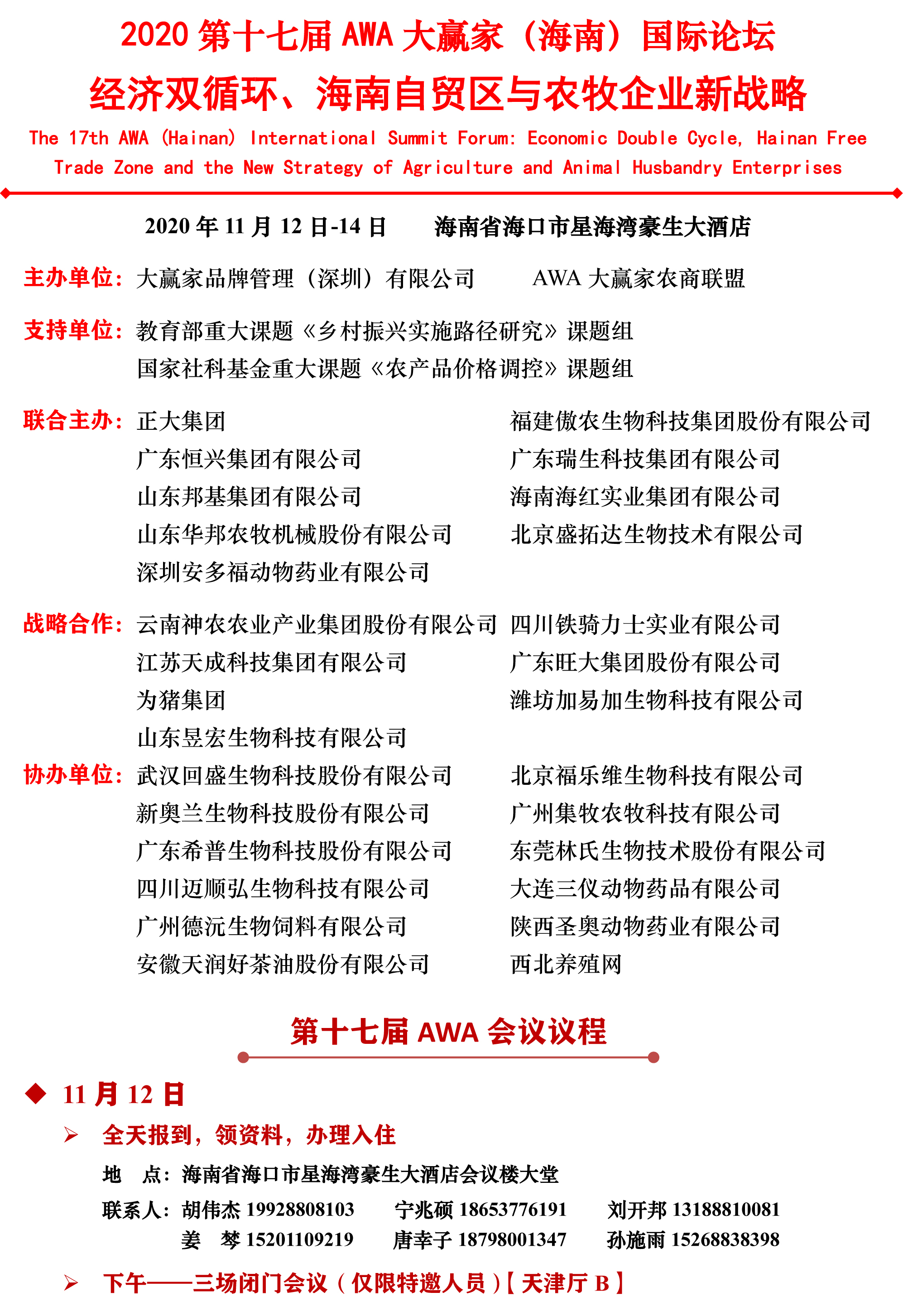 2020第十七屆AWA大贏家(海南)國際論壇誠邀您的參與