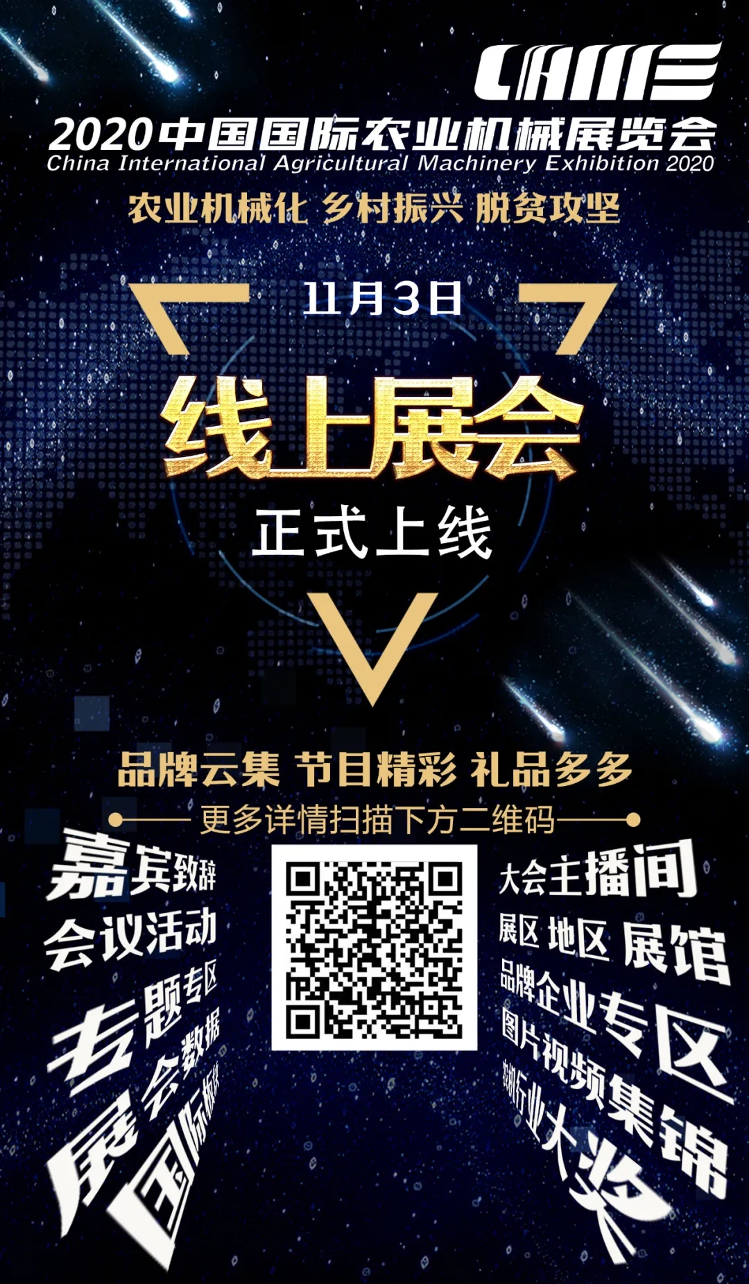 | 中國水產頻道報道, “國際農機展線上展會”經過了五年的不斷升級完善,今年,主辦方將在原有基礎上,從產品、品目、展區分布等多方位、立體式的將展會內容一一呈現于觀眾面前。平臺上的所有場景設置都將盡量還原線下展館場景,讓觀眾更好地實現線上“逛展”。同期,國際農機展還將舉辦2020中國國際農業機械展覽會線上展會直播活動,實施“農機行”平臺方案,加強傳播,深化服務,竭力推動行業復工復產、達產達效。 【關注“國際農機展”微信公眾號,點擊“線上展會”即可進入線上展會首頁】 展期11月13-15日,觀看大會主播間,更有眾多精美禮品贈送! 重要事情說三遍 趕快掃描下方二維碼進入線上展會吧!! 趕快掃描下方二維碼進入線上展會吧!! |
