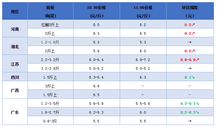 文/ 水產(chǎn)前沿 葉豐齊 2020年鮰魚行情走勢 整體行情綜述 中國水產(chǎn)頻道原創(chuàng)報道,本周華中與華東產(chǎn)區(qū)鮰魚行情回暖,西南及華南地區(qū)價格下調(diào)。河南2斤上規(guī)格黑鮰與紅鮰價格皆上調(diào)0.2元/斤;湖北2斤上黑鮰價格上調(diào)0.2元/斤,1.2-1.8斤規(guī)格價格不變;江蘇鹽城2.2-3.2斤(平均2.5-2.6斤)規(guī)格價格較上周上調(diào)0.8-0.9元/斤,3.2-3.8斤(平均3.5-3.6斤)規(guī)格鮰魚價格暫時持平;四川樂山1.5斤上規(guī)格下調(diào)0.1元/斤,3斤上超大規(guī)格魚價格上調(diào)0.3元/斤;廣西本周暫無最新報價消息;廣東0.8-3斤工廠統(tǒng)貨價暫不變,1.6-2.7斤規(guī)格下調(diào)0.2-0.3元/斤,1.2-3.5斤規(guī)格市場貨亦下調(diào)0.2-0.3元/斤。 各產(chǎn)地行情分析 河南地區(qū):2斤上規(guī)格黑鮰塘頭價6.5元/斤,1.8-2斤規(guī)格紅鮰6.2元/斤,環(huán)比上周皆上調(diào)0.2元/斤;市場行情較之前稍稍回升,也有養(yǎng)戶陸續(xù)賣魚,但由于期望值普遍較高,整體出魚量不多。據(jù)悉目前已有部分養(yǎng)戶停料,若后市無滿意價位,開春前應(yīng)不會再動網(wǎng)出魚。 湖北地區(qū):仙桃市1.2-1.8斤規(guī)格黑鮰5.3元/斤,同上周價格;2-4斤黑鮰塘頭價6元/斤,環(huán)比上周上調(diào)0.2元/斤。目前存塘量不是特別多,小魚逐漸長到上市規(guī)格,無奈市場價低,當(dāng)?shù)仞B(yǎng)戶基本不愿賣魚,魚車轉(zhuǎn)道河南和江蘇拉魚回來滿足市場供給,但應(yīng)該開始出現(xiàn)缺口,魚價有上行跡象,更堅定養(yǎng)戶觀望待價的心。 江蘇地區(qū):北京、山東市場的2.2-3.2斤(平均2.5-2.6斤)規(guī)格鮰魚6.9元/斤,個別有7.2元/斤,環(huán)比上周上調(diào)0.8-0.9元/斤;雖然最低賣價也有6.4元/斤的,整體來看行情較之前稍為回暖。走西南西北地區(qū)的3.2-3.8斤(平均3.5-3.6斤)規(guī)格大約5.2元/斤,超規(guī)格的5元/斤,皆保持上周行情。本周北京貨開始走量,養(yǎng)戶積極性隨市場行情上調(diào),鹽城每天可以流通40萬-55萬斤魚。至于超規(guī)格魚,依然爛市難賣,大戶仍陸續(xù)出魚,不過行情暫時保持。 四川地區(qū):樂山1.5斤以上規(guī)格黑鮰塘頭價6.3元/斤,環(huán)比上周下調(diào)0.1元/斤;銷往云貴市場的3斤上超大規(guī)格魚7元/斤,環(huán)比上周上調(diào)0.3元/斤。近期較多外地魚入川競爭拉低主流規(guī)格魚市場價,本地養(yǎng)戶出魚意愿下降;反而是外流的超大規(guī)格魚,由于存塘量較少,比較好銷,價格稍為回升。 廣東地區(qū):加工廠0.8-3斤統(tǒng)貨塘頭價5.5元/斤,暫同上周價格;1.6-2.7斤規(guī)格6元/斤,環(huán)比上周下調(diào)0.2-0.3元/斤。市場方面,1.2-3.5斤規(guī)格塘頭價5.5-5.6元/斤,環(huán)比上周下調(diào)0.2-0.3元/斤。目前廣東每天流通量大約在30萬-40萬斤之間,加工廠產(chǎn)能已經(jīng)爆滿,入廠要排隊,訂魚不定價;因為還沒達(dá)到理想差價,目前并無北方魚車南下,廣東魚主要流向廣西,剩下部分本地消化,其他地區(qū)都拉不動。 鮰魚報價 說明:1.上述價格及行情分析僅供參考,市場有風(fēng)險,入市需謹(jǐn)慎 2.塘頭價指從池塘抓魚價格,紅鮰指紅色斑點叉尾鮰,黑鮰指黑色斑點叉尾鮰 編號:hybj2020-11-6 |