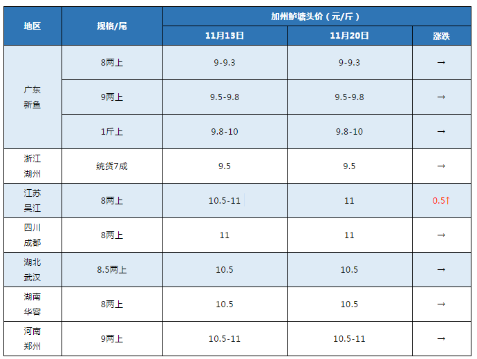 文/ 鱖鱸前沿 葉豐齊 本周行情 中國水產(chǎn)頻道原創(chuàng)報道,廣東佛山:主產(chǎn)區(qū)7兩上8.8-9元/斤,7兩上實捉8兩上9-9.3元/斤,8兩上實捉9兩上規(guī)格9.5-9.8元/斤,1斤上9.8-10元/斤,皆同上周;價格按上車規(guī)格略有浮動,魚頭1.6-1.7斤左右開價較高。由于價錢不理想,出了炮頭魚的養(yǎng)戶惜售心理明顯,出魚積極性下降,市場流通稍順暢一些,但外圍清塘價與核心區(qū)相比仍存幾毛錢差價,后市行情應趨于穩(wěn)定。 浙江湖州:主產(chǎn)區(qū)菱湖現(xiàn)在3元(小夾子,5兩以下)、6元(半斤到八兩)、10元(八兩上)打樣,統(tǒng)貨7成,炮頭1.4斤以上,中條好看,無小夾子,報價9.1-9.2元/斤,封頂9.5元/斤。菱湖大魚較缺,出魚可能加0.2-0.3元/斤,極個別能達到9.7元/斤,所以統(tǒng)貨有7成的養(yǎng)戶出魚積極,流通商也只愿收此規(guī)格以上的魚。只是,如今統(tǒng)貨7成的實在少,而小規(guī)格魚銷路窄,流通商一般不收,價低養(yǎng)戶也不舍得賣。據(jù)悉,當?shù)佤~中一般前往外圍市場抓魚,一天走3萬-5萬斤左右。 江蘇吳江:8兩上報價11元/斤,環(huán)比上周五上調(diào)0.5元/斤,與本周三價格持平。老口魚價格有所上調(diào),但利潤仍未達到養(yǎng)戶心理預期,出魚積極性依然不高,控料觀望居多,早苗養(yǎng)戶雖有產(chǎn)量,但前段時間已挑過頭批魚,現(xiàn)在出的基本上是病魚,外地魚商多轉往外圍市場。 四川成都:8兩上報價11元/斤,9兩上12元/斤,價格保持。本地標魚有一定存塘量,但養(yǎng)戶出魚意愿低,市場外地魚多,本地魚少,供求相對平衡,短期內(nèi)魚價應趨向穩(wěn)定。 湖北武漢:8.5兩上報價10.5元/斤,本地標魚被廣東魚價壓著,雖然利潤已較為稀薄,部分養(yǎng)戶仍要為年底資金周轉,積極出魚。每年臨近入冬,當?shù)丶又蓣|價格變化不大,今年加州鱸養(yǎng)殖量較去年增加許多,市場流通較為阻滯,每天3萬斤左右,出魚還需要排隊。 湖南華容:8兩半起抓,依然報價10.5元/斤;當?shù)丶又蓣|基本沒怎么動,以目前市場價格,大部分養(yǎng)戶出魚不積極,一天出魚量3萬-4萬斤左右。 河南鄭州:9兩以上報價10.5-11元/斤,要求均重不低于1.2斤;現(xiàn)階段標魚比例小,市場價格沒利潤,水溫低出魚得病風險高,本地養(yǎng)戶出魚意愿較低,加上目前鱸魚日投餌率約0.5%左右,基本會過冬,等開春再動網(wǎng),除非特殊原因。 7大產(chǎn)區(qū)加州鱸塘頭價對比 編號:jzlbj2020-45/11-20 注:上述價格及行情分析僅供參考,市場有風險,入市需謹慎。 |