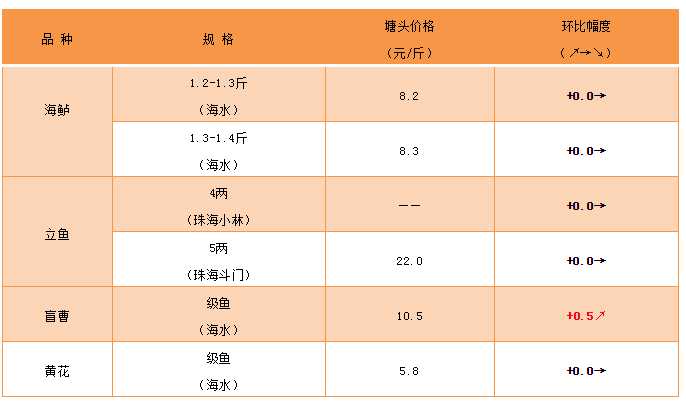 立魚:目前市場上立魚存塘少,基本無6兩魚,價格也較為穩定。