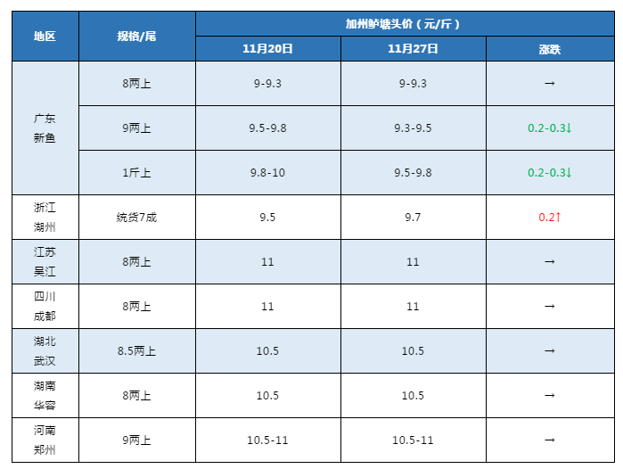 文/ 鱖鱸前沿 葉豐齊 本周行情 中國水產頻道原創報道,廣東佛山:主產區7兩上8.8-9元/斤,7兩上實捉8兩上9-9.3元/斤,皆同上周價格;8兩上實捉9兩上規格9.3-9.5元/斤,1斤上9.5-9.8元/斤,環比上周五皆下調0.2-0.3元/斤;價格按上車規格略有浮動,魚頭1.6-1.7斤左右開價較高。除核心區部分養戶惜售,外圍清塘出魚量仍較多,入粵的外省魚車亦有所增加。大魚走量大,但大肚魚通常挑得比較嚴格,影響賣價,不過價錢分得很細,也比較亂。隨著冷空氣南下,降溫前廣東魚或會出得更快。 浙江湖州:主產區菱湖3元(小夾子,5兩以下)、6元(半斤到八兩)、10.5元(八兩上)打樣,統貨7成,炮頭1.3斤以上,中條好看無小夾子,報價9.7元/斤較上周五上調0.2元/斤;不到7成炮頭1.3斤起無小夾子,報價9元/斤左右。由于價格稍微上漲了一點,當地養戶開始惜售觀望,出魚積極性不高,僅養得較好的養殖戶少量出魚。流通商轉往上海周邊養殖區拉魚,據悉尚有100萬斤左右規格魚存塘,目前每日大約走3萬-4萬斤,終端市場銷量基本無大變化。有業者認為,浙江魚價后市上漲空間有限,統貨在產子前希望不大,哪怕春節前要漲,或許也很難回到10.5元/斤的價位。 江蘇吳江:8兩上報價11元/斤,本周與上周價格基本持平。本地養老口為主,大多要養到翌年,年前出魚量一般不多。雖然前兩周老口魚價格稍為上調,但遠未達到養戶心理預期,除零星病魚外,出魚積極性較低。挑過頭批魚的早苗養戶,現在基本控料觀望行情走勢,魚販和流通商轉戰外圍養殖區。 四川成都:8兩上報價11元/斤,9兩上12元/斤,價格維持不變。本地標魚有一定存塘量,但以目前價格,養戶出魚積極性低,市場上本地魚少,外地魚多,供求達到相對平衡,魚價趨向穩定。 湖北武漢:8.5兩上報價10.5元/斤,同上周價格。當地加州鱸市場行情入冬前基本無大變化,今年增加的養殖量令市場流通較為緩慢,每天不過3萬斤左右的量。據業者反映,由于大家都在排隊等出魚,近日有些魚販希望壓價收購,但養戶一致反對沒壓下來,魚價暫時保持穩定。 湖南華容:8兩半起抓,報價仍是10.5元/斤;當前價格大部分養戶出魚十分不積極,一天流通量大約3萬-4萬斤,據悉有部分本地魚銷往四川市場,不過價低走量不多,一車9千斤左右。 河南鄭州:9兩以上報價10.5-11元/斤,要求均重不低于1.2斤,同上周;目前幾乎沒有養戶出魚,當地水溫低至7-8攝氏度,現階段出魚易暴發水霉病,加上標魚比例小,行情不理想下,賣魚可能虧損,養戶不愿冒險,除非特殊原因。現在日投餌率已低至0.5%左右,基本會過冬等開春再動網。 7大產區加州鱸塘頭價對比 編號:jzlbj2020-46/11-27 注:上述價格及行情分析僅供參考,市場有風險,入市需謹慎。 附收魚信息:本人長期在江浙滬地區收購鱸魚,日均10萬左右,統貨為主,規格不限,價格已塘口拐角打樣為準,有意者請微信或電話聯系:周先生15557222223,微信同號。 |