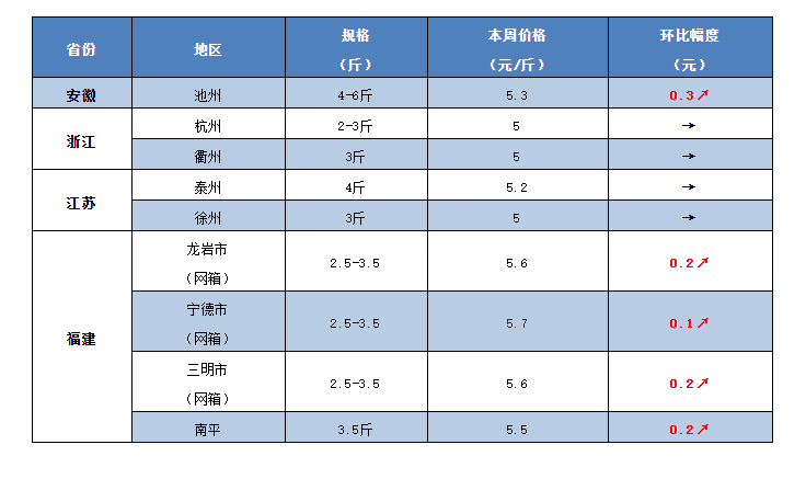| 中國水產頻道獨家報道, 草魚全線漲價!湖北、江西大草魚突破6元/斤、福建3斤草魚賣到5.7元/斤、四川最高上漲0.5元/斤,廣東草魚苗再次突破5元大關 文/水產前沿鄭鵬飛 一周要聞 多地下架、禁售進口凍品,違者嚴懲!豬價還會漲? 作為全國最大的凍品物流中轉基地—鄭州物流港冷庫,自12月12日7點起,鄭州全區冷庫關閉冷庫,所有貨物暫時禁止出入庫,開市時間另行通知! 由于近期冷凍食品核酸陽性事件頻發,除了鄭州物流港冷庫外,多地要求關閉冷庫,停售進口冷凍食品,目前還有陜西西安、湖北襄陽、安徽合肥、北京、天津多地冷庫關閉,所有貨物暫時禁止出入庫或就地封存,銷售場所、冷庫全面徹底消殺......據農牧前沿消息,今天豬肉幾近全線上漲。 全國草魚價格全線反彈上漲 冷空氣南下,消費量上升,捕魚難度加大,全國草魚行情全線飄紅。目前華南、華東、西南地區草魚行情有回暖勢頭,華中、華北以及東北地區呈現持續上漲勢頭。 據了解,目前北方的魚塘幾乎全面封凍,魚車普遍南下抓魚。目前武漢白沙洲市場每天的四大家魚交易量已超過300萬斤。尤其最近幾天長江沿線城市也開始大范圍降雪,未來行情還是有望持續走高。 目前,廣東中山1-3兩的草魚苗再次突破5元/斤,3斤的草魚塘頭價賣到5.4元/斤。湖南常德3斤的草魚最新塘頭價賣到5.1元/斤,上漲0.2元/斤,長沙草魚苗開始很緊張了。湖北洪湖3斤的草魚最新塘頭價賣5.1-5.2元/斤;隨州7斤的草魚塘頭價已賣到6元/斤以上。江西新余地區3-4斤的草魚最新塘頭價賣5.1元/斤,6斤的大草魚塘頭價也已突破6元大關;福建南平3斤的草魚賣到5.5元/斤,上漲0.2元/斤,閩江地區已經賣到5.7元/斤。目前,江蘇淮安地區3-5斤的草魚塘頭價在5.2-5.3元/斤。河北唐山3斤的草魚最新塘頭價已經賣到5.6元/斤,天津寶坻最高賣到5.8元/斤,上漲0.3元/斤。四川德陽地區3斤的草魚塘頭賣到6元/斤,上漲了0.5元/斤;成都三岔湖最新報價也已經賣到5.7元/斤,上漲0.2元/斤。 四川德陽3斤草魚突破6元/斤,暴漲0.5元/斤 天津地區3斤草魚再漲0.3元/斤,塘頭價賣到5.8元/斤 湖南長沙草魚苗吃緊,養殖戶表示明年草魚行情會更好 一周行情 華南地區 本周華南地區的草魚整體行情也是穩中有升,其中珠三角地區草魚種有0.1-0.2元/斤的上漲,成魚價格整體上保持穩定。 中山:隨著氣溫的降低,加上苗種價格相對低迷,近期養殖戶賣苗積極性不高,近期草魚苗種整體行情有所回暖。據了解,目前中山黃圃1-3兩的草魚苗再次突破5元/斤,其他規格也都有0.1-0.2元/斤的上漲。從流通商了解到,目前中山地區3斤的草魚最新塘頭價賣到5.4元/斤,相比之前也是開始有小幅上漲。 廣西:本周廣西地區雖然降溫非常明顯,局部甚至下去了雪,但是魚價行情暫時還是沒有太大變化。據了解,目前武宣地區3斤的草魚塘頭賣5.5元/斤,桂林地區最新塘頭價也還是繼續維持在5.3元/斤左右。 華中地區 本周華東地區的草魚行情整體上呈現上升趨勢,多地塘頭價再次出現上漲。尤其近期長江沿線城市很多有已經開始下雪,接下來出魚的難度會進一步加大,未來行情還是有望持續走高。 湖南:本周湖南的草魚行情也是再次出現小幅上漲。從養殖戶了解到,目前常德地區3斤的草魚最新塘頭價賣到5.1元/斤,較之前上漲0.2元/斤。最近幾天長沙地區的草魚行情不是很好,成魚價格暫時沒有什么好轉。不過養殖戶表示,現在當地的草魚苗開始很緊張了,預計明年的草魚行情會比今年要好。 湖北:本周湖北的草魚塘頭價整體上呈現回暖勢頭。冷空氣南下,北方魚塘封凍使得魚車開始后南下,目前武漢白沙洲市場每天的四大家魚交易量已經超過了300萬斤,而且有部分水車不進市場直接到塘口裝魚,而且水車數量還在不斷增加。目前洪湖地區草魚塘頭價相比上周繼續有小幅上漲,3斤的草魚最新塘頭價賣5.1-5.2元/斤,目前出魚量不大。據了解,最近隨州地區養殖戶大多開始賣大草魚,目前7-9斤的草魚最新塘頭價基本都在6元/斤以上。近期賣魚的增多導致市場上的魚價行情受到影響,了解到最近兩天武漢的草魚行情出現回落,下滑幅度在0.2-0.3元/斤。由于大行情普遍在回暖,這次的下滑應該是暫時的。 江西:本周江西地區的草魚行情也是繼續有上漲勢頭。從養殖戶了解到,目前江西新余地區3-4斤的草魚最新塘頭價賣5.1元/斤,5斤的賣5.4元/斤,6斤的大草魚塘頭價基本在6元/斤以上;南昌地區3斤的草魚最新塘頭價也基本在4.8-5元/斤之間。 華東地區 本周華東地區的草魚行情也是終于開始有點好轉了,尤其福建地區的草魚塘頭價漲勢明顯。 福建:據養殖戶介紹,最近幾天閩江地區草魚行情繼續保持上漲勢頭,目前3斤的草魚最新塘頭價在5.7元/斤,繼續有0.1元/斤的小幅上漲;南平地區3斤的草魚最新塘頭價賣到5.5元/斤,相比上周上漲了0.2元/斤。 江蘇:據了解,最近江蘇草魚行情整體上還是不是太理想。養殖戶表示,雖然塘頭價格起來了但是市場上走不動。目前,淮安地區3-5斤的草魚塘頭價在5.2-5.3元/斤,到市場也就賣5.4-5.5元/斤,小草魚的行情依然很低迷。目前徐州部分地區3斤的鯉魚塘頭價還是只有4元/斤,草魚最低賣到4.5元/斤。 浙江:最近浙江地區的草魚行情還是沒有太大變化。據養殖戶介紹,目前衢州地區3斤的草魚最新塘頭價繼續保持在5元/斤左右,基本維持上周水平。 其他地區 華北地區:隨著冷空氣的不斷南下,目前華北地區的魚塘基本都