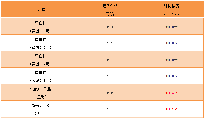 文/ 水產前沿 何鴻浩 中國水產頻道報道,草魚種:本周草魚種價格平穩,主要原因在于前期升價達到部分養殖戶預期,遂開始出魚,市場出現短暫的供求平衡。但目前存塘依舊較多,現預計后市價格偏向穩定,如若出現下跌將會引發出魚潮。 統鯇:本周行情走好,價格持續上漲,1.5斤規格上漲0.3元/斤,報價為5.5元/斤;2斤上規格上漲0.1-0.2元/斤,4.9-5.5元/斤;3斤上規格保持平穩,報價為5.3元/斤。 大草魚:價格保持平穩,4斤上規格為6.6元/斤;5斤上規格為7.1元/斤。 脆肉鯇:本周脆肉鯇價格維持高位,但大規格脆肉皖已有部分魚中發出通知上漲0.5元/斤,近期冷空氣頻繁,市場需求大,養殖戶惜售,導致市場供不應求。而且,今年脆肉皖養殖量少于往年,預計隨著天氣進一步轉涼,元旦后至春節前價格還會有機會上漲。 |