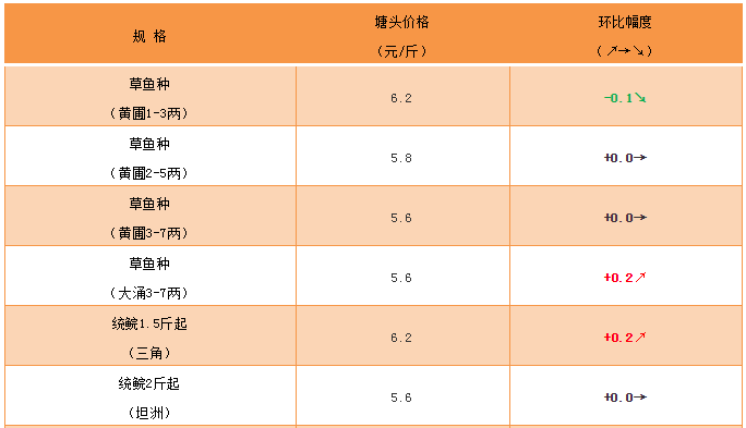 文/ 水產前沿 何鴻浩 中國水產頻道原創報道,草魚種:本周草魚種價格保持穩定,天氣轉好后賣魚養殖戶增多,市場成交量增加,預計后續行情可能存在小幅波動,建議養殖戶在晴天時做好肥水改底工作,適時出魚上市。 統鯇:本周價格仍處于高位,魚價強勢反彈,受大草魚魚價走高刺激,市場需求量大,存塘量少,養殖戶惜售,價格升至6元/斤,且預計大草魚行情持續利好,進一步拉大需求,預計春節前價格還有上漲機會。 大草魚:本周魚價持續上漲,受脆肉鯇行情趨好的影響,5斤上已超8元/斤,市場需求大,存塘少,養殖戶惜售,市場將會出現短暫的供不應求。 脆肉鯇:本周脆肉鯇價格持續穩定在高位,近期冷空氣頻繁,市場需求量增大,加之今年存塘少,養殖戶惜售,如若年前未受疫情影響而禁止堂食,市場可能更火爆,且今年脆肉鯇養殖量較往年少,預計隨著天氣進一步轉涼,春節前價格還會有機會上漲。 |