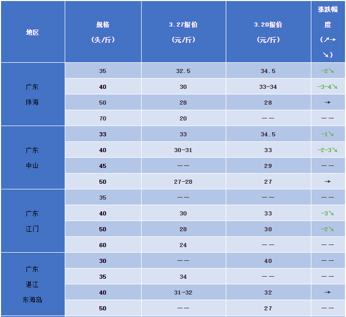 文/ 水產前沿 植銀素 本周要聞及行情 中國水產頻道原創報道,“30-35頭賣價從32-34元不等,明顯下滑了,現在不少養殖戶都害怕跌價開始,之前惜售的存塘蝦進退兩難!”江門地區養殖戶表示近期發病的塘口增多,蝦價也明顯走出下滑趨勢,目前35頭以內至少下跌了4元/斤,40頭下跌2元左右報價30-31元/斤。“現在反而是中小蝦吃香,50頭以下價格基本維穩,70頭賣到20元/斤,這種蝦貨源挺多,價格還能這么好,養殖戶已經有利潤了。”當地流通商表示蝦價高位企穩近2個月了,現在消費端更青睞50-60頭規格,價格更優惠,大蝦很難給價,沒有節日檔口也不好賣。汕尾、陽江目前活蝦存塘極少,大部分土塘處于剛下苗到一個月的階段,價格沒有大的變化。湛江地區冬棚蝦貨源估計在逐漸增多,不少養殖戶也在等清明前后看價格出手,目前價格還沒有明顯的變動,后市也要看價格了,有養殖戶擔心清明集中出蝦會引發價格滑坡,現在蝦價還比較理想。 福建地區近期部分塘口還是受到病害影響比較大,養殖戶表示蝦價整體呈現下滑的趨勢。“現在40頭正常蝦均價33元/斤,50頭28-29元/斤,但是如果病蝦就不好說,質量對價格影響一定占比較大。”當地養殖戶反饋現在病蝦導致蝦價下滑,至于對于后市的信心則表現一半一半。 各地白對蝦價格一覽 說明:上述報價可能會因區域、規格、品質和時間等因素的不同而會產生差異,在此僅供參考。 編號:dxbj2021-03-27 |