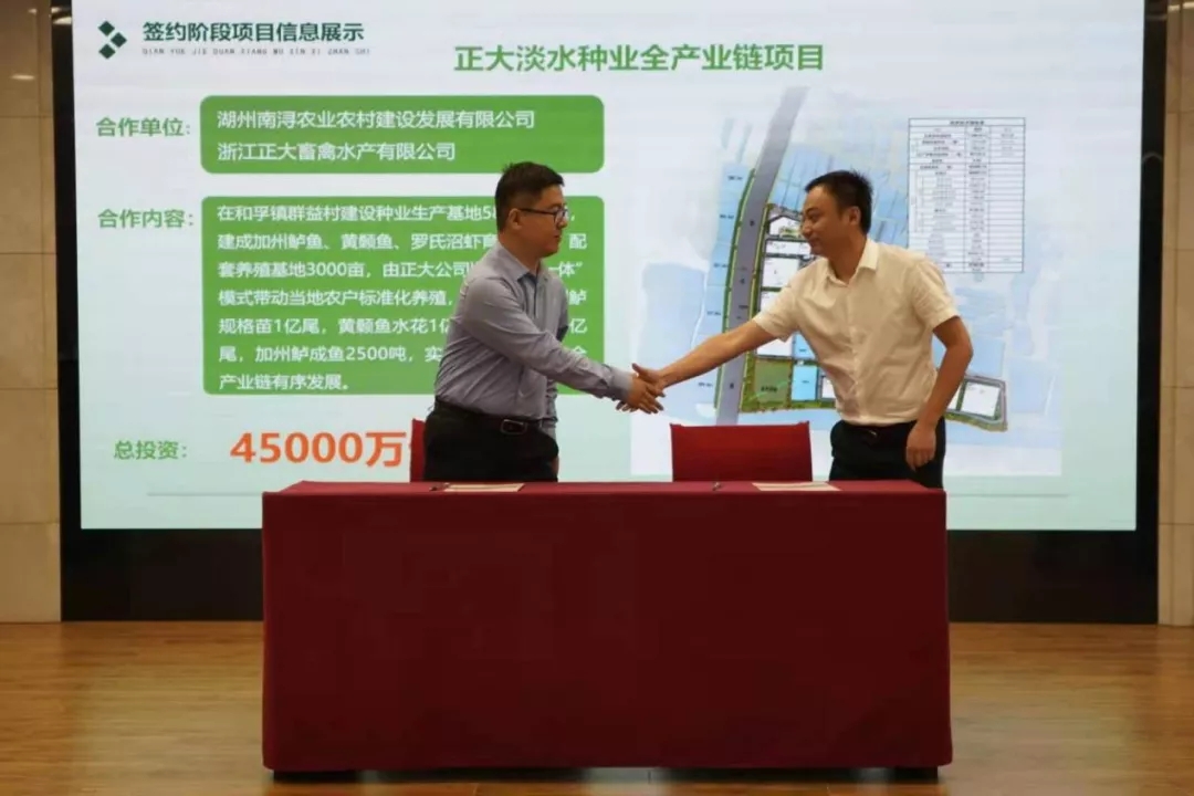 | 中國水產頻道原創報道, 正大淡水種業及配套養殖全產業鏈項目落戶湖州,將加快推動正大淡水養殖板塊的布局 文/水產前沿李釩 7月12日,“2021南潯農高區重大項目集中簽約儀式”在浙江省湖州市舉行,正大淡水種業及配套養殖全產業鏈項目成為活動亮點。據悉,該項目建設種業生產基地58000平米,配套養殖基地3000畝,雙方總投資達4.5億元,預計投產后年產值將達到4.5億元。 湖州市南潯區副區長秦勝、湖州市農業農村局副局長陳金侃、農高區指揮長任元清、正大集團農牧食品企業中國區副董事長王慶軍、浙江區水產事業線主管左兵、浙江區水產事業人力總監王大慶、浙江區水產事業財務總監顧文榮、種植事業項目總監屠炯炯等領導嘉賓出席了簽約儀式。 湖州市南潯區副區長秦勝致辭 正大集團農牧食品企業中國區副董事長王慶軍致辭 湖州市南潯區副區長秦勝在致辭中表示,對正大集團等企業的投資表示歡迎,并表示會為企業提供良好的投資環境,也希望新項目能夠加快進度,快速落地。正大集團農牧食品企業中國區副董事長王慶軍則表示,此次正大集團與南潯區政府攜手共建淡水種業及配套養殖全產業鏈項目,不僅是看中了南潯源遠流長的漁業文化、基礎雄厚的漁業產業,得天獨厚的區位優勢,更是想通過項目共建,打造高效漁業、綠色漁業,真正推動湖州、浙江乃至長三角地區的漁業發展與轉型升級。此次項目將采用“五位一體”合作模式,即:正大+政府+銀行+村集體+農戶,力爭共同打造國內一流的淡水種業及配套養殖園區,推動長三角水產養殖的發展。項目將在帶動農民增產增收,促進地方經濟高質量發展、提高先進工藝與設施實現生態水產養殖、推動行業的全產業鏈發展、促進行業數字化改革與轉型升級等方面發揮顯著作用。 浙江區水產事業線主管左兵(左)代表正大集團簽約 項目效果圖 據正大浙江區水產事業線主管左兵介紹,項目主要包括加州鱸魚全產業鏈項目和羅氏沼蝦全產業鏈兩個子項目,此外還包括一個黃顙魚育苗項目。其中,加州鱸魚全產業鏈項目包括親魚選育、工廠化循環水育苗和標粗、成魚養殖、食品加工等板塊。正大集團與珠江所、華中農業大學等國內知名高校研究所開展遺傳育種研發合作,建立臺鱸等優良品系,開展選擇育種、雜交育種、分子育種等研究,選育生長速度快、抗逆性強、餌料利用率高的正大加州鱸新品種。“雜交鱸”專利正在申報中,同時與高校研究所合作研發“全雄鱸”等其它品系及申報專利。在養殖板塊,將會建成1500畝正大生態養殖示范基地。 正大加州鱸全產業鏈項目 羅氏沼蝦全產業鏈項目方面,正大集團從總部引進正大選育的羅氏沼蝦種蝦,合作開展羅氏沼蝦的雜交育種、全雄育種,建立健全羅氏沼蝦的育種、育苗體系。同時加強育種保種的管理工作,建立現代化循環水育種育苗車間。 該項目聚集的三個品種都是利潤較高的品種,同時引進正大選育的羅氏沼蝦,可見正大在加快淡水魚和羅氏沼蝦全產業鏈布局的實力和決心。淡水種業基地項目完全按照正大標準建設,計劃2021年8月開始動工,2022年正式投入使用。建成后每年可提供優質加州鱸規格苗1億尾,黃顙魚水花1億尾,沼蝦苗10億尾,將打造成為長三角地區最大的綜合淡水種業基地。項目還包括加州鱸成魚2500噸養殖板塊,配套養殖基地3000畝,將極大地推動淡水養殖全產業鏈的有序發展。 |