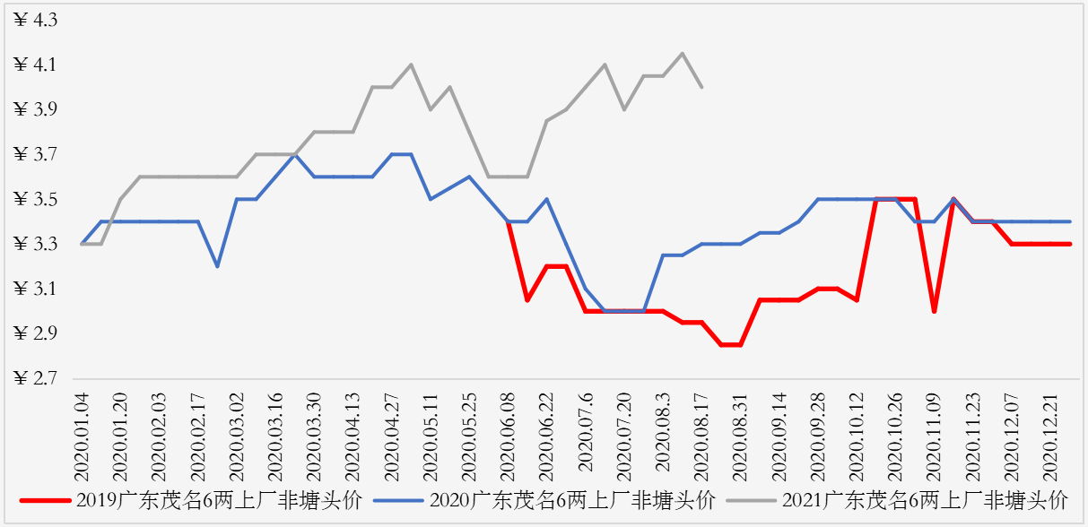 文/ 水產(chǎn)前沿 葉豐齊 代表產(chǎn)區(qū)羅非魚行情走勢 行情綜述 水產(chǎn)前沿網(wǎng)原創(chuàng)報道,目前,羅非主產(chǎn)區(qū)存塘魚規(guī)格相對比較小,中、小非出塘量整體不高,供應(yīng)時多時少,造成行情波動頻繁。不過,有些養(yǎng)殖區(qū)并非專供加工,如果養(yǎng)殖過程無大問題或養(yǎng)殖計劃無大變動,一般不會出售小非。由于加工廠要滿足一定量的訂單需求,若收不到足夠的規(guī)格魚,廠車傾向跨區(qū)域收購,個別需競價搶購,使得廠非價格整體呈現(xiàn)上升姿態(tài),但局部因出魚增加而有所下調(diào)。本周,主產(chǎn)區(qū)粵西小非收購價較上周略為回調(diào)0.1-0.15元/斤;而海南1斤上廠非收購價較上周上調(diào)0.1元/斤;廣西各規(guī)格廠非價格較上周皆有0.1-0.2元的漲幅;珠三角產(chǎn)區(qū)珠海0.6-1斤以及1-1.6斤規(guī)格廠非收購價較上周皆上調(diào)0.1元/斤。其他產(chǎn)區(qū)行情暫時保持平穩(wěn)。 各產(chǎn)地行情一覽 海南地區(qū):1斤上規(guī)格廠非收購價4.7元/斤,環(huán)比上周價格上調(diào)0.1元/斤;塘頭現(xiàn)金收購價4.4元/斤,與上周持平。 珠三角地區(qū):珠海1.5斤上規(guī)格市場非塘頭價5.1-5.2元/斤,維持上周價格;廠非0.6-1斤3.6元/斤,1-1.6斤4.6元/斤,環(huán)比上周價格上調(diào)0.1元/斤。東莞1.3-2.5斤規(guī)格市場非塘頭價5.4-5.5元/斤,價格仍維持穩(wěn)定。恩平1.5-2斤上規(guī)格市場非塘頭價5.2-5.3元/斤,依然保持。新興市場非1.3斤起抓到手價5-5.1元/斤,1.5斤上5.2元/斤,皆與上周價格一致。肇慶高要6兩-1斤規(guī)格廠非塘頭價3.6元/斤,1斤上規(guī)格廠非塘頭價4.6元/斤,市場非1.3斤上5.4元/斤,皆保持上周價格。 粵東地區(qū):惠州1.5斤上規(guī)格市場非上午車塘頭價5.4元/斤,下午車5.5元/斤,行情依然與上周一致。揭陽、汕尾0.9斤上規(guī)格凍廠收購價4.5元/斤,市場非1.2斤上塘頭價5元/斤,暫與上周價格持平。 粵西地區(qū):湛江、茂名0.6-1斤規(guī)格廠非塘頭價3.8-3.9元/斤,和上周價格一致,加成最高4元/斤,環(huán)比上周價格回調(diào)0.1-0.15元/斤;1斤上規(guī)格4.8-4.9元/斤,維持上周價格;兩地1.5斤上規(guī)格市場非5.5-5.6元/斤,與上周價格持平。 廣西地區(qū):北海1.3斤上規(guī)格市場非塘頭價5.5元/斤,防城2斤上6元/斤,南寧1.5斤上規(guī)格市場非塘頭價6元/斤,柳州同規(guī)格6.2元/斤,皆與上周價格持平。北海廠非0.6-1斤規(guī)格到廠價最高4.1元/斤,1-3斤規(guī)格到廠價5.1元/斤,環(huán)比上周皆上調(diào)0.2元/斤。 各地羅非報價 說明:市場非指通過水車抓取、裝載,向市場銷售的羅非魚;廠非指由加工廠收購羅非魚注:上述價格及行情分析僅供參考,市場有風(fēng)險,入市需謹(jǐn)慎 編號:lfbj2021-08-16 |