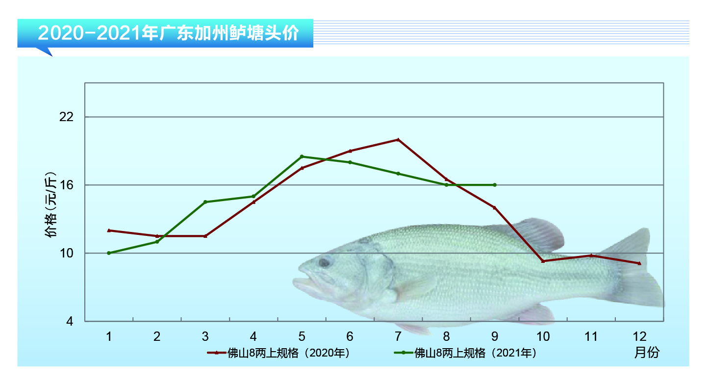 水產前沿網原創報道,截至2021年9月15日各地加州鱸塘頭價格: 廣東佛山:6兩上新標魚13-14元/斤,7兩上新標魚13.5-14.5元/斤,8兩上新標魚15-16元/斤; 浙江湖州:大統貨13.3-13.8元/斤; 江蘇吳江:8兩上標魚15.5-16元/斤,統貨14.8-15元/斤; 四川成都:9兩上標魚18.5元/斤; 湖北武漢:8.5兩上標魚14-14.5元/斤; 湖南華容:9兩上標魚15元/斤; 河南鄭州:9兩上標魚16-16.5元/斤。 對比8月15日,各主產區加州鱸總體行情持穩。浙江、江蘇統貨報價皆有漲幅;四川主產區曾跌價至18元/斤,后再次回漲;湖北主產區因舊魚一直未清完,養戶擔心新魚上市后沖擊魚價,積極出魚,魚價最高下滑2元/斤;湖南、河南均有1元/斤左右的降幅。 截至9月15日,廣東主產區舊魚基本清完,新魚開始大量上市,除主產區外的外圍地區也陸續有新魚上市。除廣東外,江蘇、四川、湖南、河南市場還是走老魚為主,并且老魚存塘也不多了,各主產區有少量新魚上市,不過量都不大;湖北主產區老魚還沒有清完,最早一批新魚又開始要上市,市場不缺魚;浙江菱湖主產區老魚基本清完,新魚還未達到上市規格要求,市場缺魚,青黃不接。觀望后市,各主產區皆缺大魚,大規格魚搶手爽市,中秋、國慶雙節的影響,消費欲望增加,魚價或有進一步上漲空間。(黃家茵) 更多關于加州鱸市場趨勢的信息請戳:http://fishfirst.cn/portal.php?mod=list&catid=87 更多關于加州鱸價格行情的信息請戳:http://fishfirst.cn/portal.php?mod=list&catid=54 |