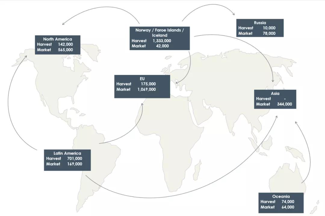 文/ 海鮮指南(seafood-guide)馬婷婷 國內(nèi)市場三文魚消費需求持續(xù)低迷 水產(chǎn)前沿網(wǎng)原創(chuàng)報道,今天(11月24日),北京冰鮮三文魚報價為:15日生產(chǎn)7-8kg規(guī)格法羅皇冠報價118元/公斤;18日生產(chǎn)挪威7-8kg規(guī)格報價110元/公斤;19日生產(chǎn)6-8kg規(guī)格澳大利亞優(yōu)恩報價108元/公斤;16日生產(chǎn)6-7kg規(guī)格塔斯爾報價102元/公斤;16日生產(chǎn)6-8kg規(guī)格智利麥迪報價103元/公斤。 昨天(11月23日),廣州冰鮮三文魚報價為:19日生產(chǎn)4-5kg規(guī)格新西蘭帝王鮭報價118元/公斤;15日生產(chǎn)6-8kg規(guī)格法羅皇冠報價110元/公斤;17日生產(chǎn)挪威6-8kg規(guī)格報價105元/公斤;18日生產(chǎn)6-8kg規(guī)格澳大利亞塔斯爾報價103元/公斤。 昨天(11月23日),上海冰鮮三文魚報價為:19日生產(chǎn)6-9kg規(guī)格挪威萊瑞報價108元/公斤;19日生產(chǎn)6-8kg規(guī)格澳大利亞優(yōu)恩報價102元/公斤;16日生產(chǎn)6-8kg規(guī)格智利麥迪報價99元/公斤。 面對國內(nèi)市場報價持續(xù)下跌的情況,多名業(yè)者向海鮮指南反饋,近半個月國內(nèi)消費市場行情低迷,售價幾乎等同于進口成本價,進口商進口量愈加減少,市場無大量貨物積壓情況。 2020大西洋鮭全球產(chǎn)量223萬噸,巴西、亞洲市場年復(fù)合增長率高!中國市場增長潛力巨大! 據(jù)《2021年三文魚養(yǎng)殖產(chǎn)業(yè)手冊》(SalmonFarming Industry Handbook 2021)顯示,2020年,全球養(yǎng)殖鮭魚(含大西洋鮭、大鱒魚、小鱒魚、銀鮭等)產(chǎn)量超265萬噸(GWT),野生捕撈鮭魚產(chǎn)量(含狗鮭、紅鮭等)約占養(yǎng)殖鮭魚產(chǎn)量的1/5,超50萬噸(GWT)。 2011-2020全球養(yǎng)殖鮭魚(橙柱)與野生捕撈鮭魚(黑柱)產(chǎn)量,縱軸單位為千噸 其中,大西洋鮭產(chǎn)量超223萬噸(GWT)。 從產(chǎn)地來看,挪威產(chǎn)地產(chǎn)量占比最高,約為55%,產(chǎn)量為1232200噸;其次為智利,占比約為31%,產(chǎn)量為700600噸,再者為英國(蘇格蘭)和北美產(chǎn)區(qū),產(chǎn)量分別為160500噸和141800噸。 2020年,大西洋鮭主流生產(chǎn)商有美威(Mowi)、薩爾瑪(Salmar)、Aquachile、賽馬克(Cermaq)、萊瑞(Lerøy Seafood)等企業(yè)。其中,美威(Mowi)占據(jù)最大份額,供應(yīng)量為44萬噸,是全球最大的大西洋鮭生產(chǎn)商企業(yè),占據(jù)了挪威產(chǎn)地21%、英國(蘇格蘭)產(chǎn)地32%、北美產(chǎn)地31%、智利產(chǎn)地9%的供應(yīng)份額。 報告中產(chǎn)量前五生產(chǎn)商,縱軸單位為千噸 2011-2020年,大西洋鮭產(chǎn)量的年增長率為6%。據(jù)Kontali Analyze(魚類和水產(chǎn)養(yǎng)殖分析公司)預(yù)測,大西洋鮭未來幾年的產(chǎn)量增長將放緩,2020-2024年年增長率預(yù)計為4%。 據(jù)數(shù)據(jù)顯示,挪威產(chǎn)區(qū)供應(yīng)的主要市場為歐洲和亞洲;智利產(chǎn)區(qū)供應(yīng)的主要市場為美國、南美洲和亞洲;北美產(chǎn)區(qū)供應(yīng)的主要市場為美國;蘇格蘭產(chǎn)區(qū)供應(yīng)英國和法國境內(nèi)市場。 大西洋鮭全球貿(mào)易圖(指養(yǎng)殖類,不包含野生) 歷年來,由于大西洋鮭多以冰鮮形式在市場流通,對運輸時效、條件、成本有較高要求,因此,各個產(chǎn)區(qū)都尤為注重周邊消費市場的開發(fā)。迄今為止,歐盟+英國與美國市場仍是大西洋鮭的最主要消費市場,2020年,歐盟+英國市場消費了超100萬噸大西洋鮭。同年,美國單個國家便已消費了超50萬噸大西洋鮭,位居消費市場之首(按國家劃分消費市場時)。 歐盟+英國近十年大西洋鮭消費情況,縱軸單位為千噸 美國近十年大西洋鮭消費情況,縱軸單位為千噸 在大西洋鮭幾大消費市場中,俄羅斯呈現(xiàn)負增長趨勢,年復(fù)合增長率(CAGR)為-4%。究其原因,與2014年俄羅斯對挪威三文魚實施進口禁令后,市場消費份額大幅下滑有關(guān)。 反觀巴西和亞洲這兩個新興市場,年復(fù)合增長率(CAGR)分別為11%與7%,增長速度明顯高于歐盟+英國市場(年復(fù)合增長率為4%)。 俄羅斯近十年大西洋鮭消費情況,縱軸單位為千噸 亞洲近十年大西洋鮭消費情況,縱軸單位為千噸 從人均消費量看,中國市場人均消費量為0.06公斤(WFE),遠低于法國市場的3.24公斤,具有巨大的增長潛力。 大西洋鮭前十消費市場(藍色柱體)以及該市場對應(yīng)的人均消費量(橙色點) 報告指出:在過去的10年的全球消費市場中,大西洋鮭平均消費量增長了6%?傮w而言,受新冠疫情影響,2020年三文魚市場增長仍受一定程度阻礙。 |