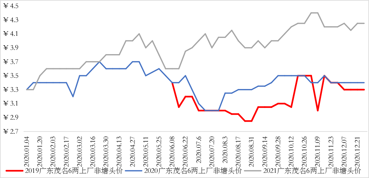 文/ 水產前沿 葉豐齊 代表產區羅非魚行情走勢 各產地行情一覽 水產前沿網原創報道,本周羅非行情整體平穩,各產區存塘量不大,能出魚的基本在等價格,塘頭交易較少。粵西市場非的塘頭價隨廠非有所上調。如果春節前降溫幅度不大,防疫對消費影響不嚴重,市場需求增加有望拉動魚價上行,養戶期的望值也較高。 海南地區:1斤上規格廠非收購價4.8元/斤,塘頭現金收購價4.5-4.55元/斤,環比上周價格回調0.05元/斤。 珠三角地區:珠海1.7-2平1.8斤規格市場非塘頭價5.4元/斤,2斤上5.5-5.6元/斤,大羅非4-6平5.5斤9.2元/斤,仍維持上周價格。東莞1.3-2.5斤規格市場非塘頭價4.8-5元/斤,恩平1.5-2斤上規格市場非塘頭價5元/斤,新興市場非1.3斤起抓到手價4.8元/斤,價格與上周持平。肇慶高要6兩-1斤規格廠非塘頭價3.6元/斤,1斤上規格廠非塘頭價4.6元/斤,市場非1.3斤上5-5.2元/斤,維持上周價格。 粵東地區:惠州1.5斤上規格市場非上午車塘頭價5元/斤,同上周價格;揭陽、汕尾1斤上規格凍廠收購價4.2元/斤,市場非1.2斤上塘頭價5元/斤,價格與上周一致。 粵西地區:湛江、茂名0.6-1斤規格廠非塘頭價4.1元/斤,加成最高4.35元/斤,環比上周上調0.05元/斤;1斤上規格5.1元/斤,環比上周上調0.05元/斤;1.6-1.7斤上規格市場非塘頭價5.4元/斤,環比上周價格上調0.1元/斤。 廣西地區:北海廠非0.6-1斤規格到廠價最高4.5元/斤,1-3斤規格到廠價5.2元/斤,環比上周上調0.05元/斤。市場非1.5斤上規格5元/斤,南寧1.5斤上規格5.5元/斤,柳州1.5斤上規格5.7元/斤,暫時皆維持上周價格。 各地羅非報價