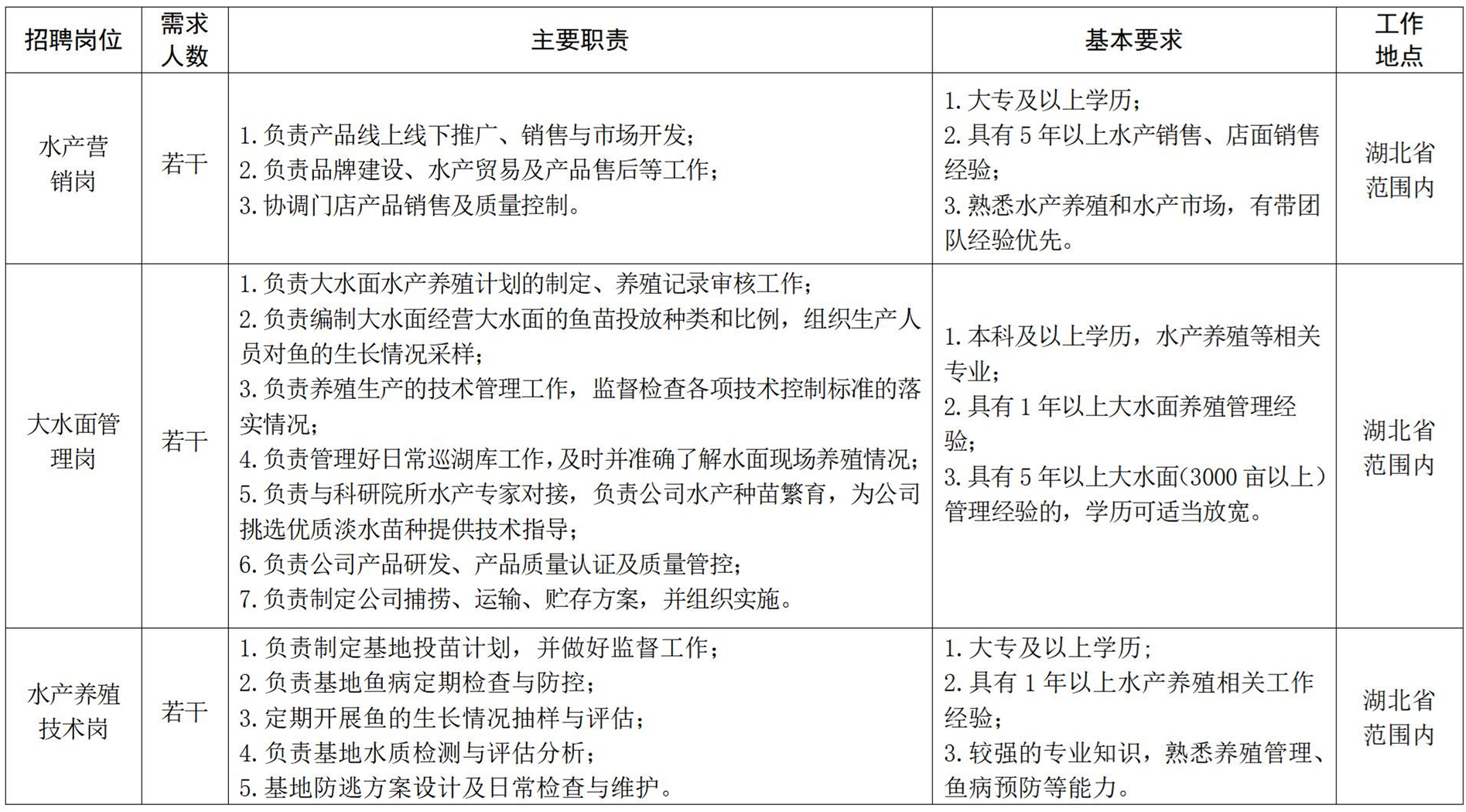 | 水產前沿網報道, 湖北水產集團有限公司公開招聘漁業專業技術人才公告 湖北水產集團有限公司(簡稱湖北水產集團)是湖北省屬國企湖北農業發展集團有限公司旗下全資子公司。 湖北水產集團立足湖北大水面和漁業資源稟賦,堅持生態優先、綠色發展、合理利用的戰略定位,運用現代科學技術和現代信息技術,開展大水面增殖漁業、水產苗種繁育、設施漁業建設、水產品加工、天然水域魚類資源的人工增殖放流等業務,擁有“鄂州武昌魚”“梁子湖螃蟹”品牌使用權,積極構建集名特優水產種苗、漁業技術開發、生態健康養殖、水產品加工與貿易為一體的現代漁業全產業鏈服務商。 湖北水產集團以湖北豐富的湖泊資源為依托,圍繞省委、省政府賦予的梁子湖、斧頭湖等水系為主的天然湖泊大水面增殖漁業經營權,秉持“一條魚帶動一方經濟,一條魚呵護一湖清水,一條魚賦能一條產業,一條魚弘揚一城文化”的宗旨,注重科技賦能與技術創新,以高校科研院所為基石,院士專家團隊為支撐,市場品牌認同為保障,運用“公司+基地+院校”的模式,堅持“產、學、研、管、運、投”一體化發展,實施可復制、可推廣的綠色健康現代漁業發展模式,打造一批輻射范圍廣、市場競爭強、文化底蘊深的國家級水產品牌和湖北生態漁業公共品牌,為全國生態漁業貢獻湖北力量。 薪酬待遇:具體薪資面議 聯系電話:027-88863037 聯系人:晏女士 簡歷投遞郵箱:597087657 qq.com |
